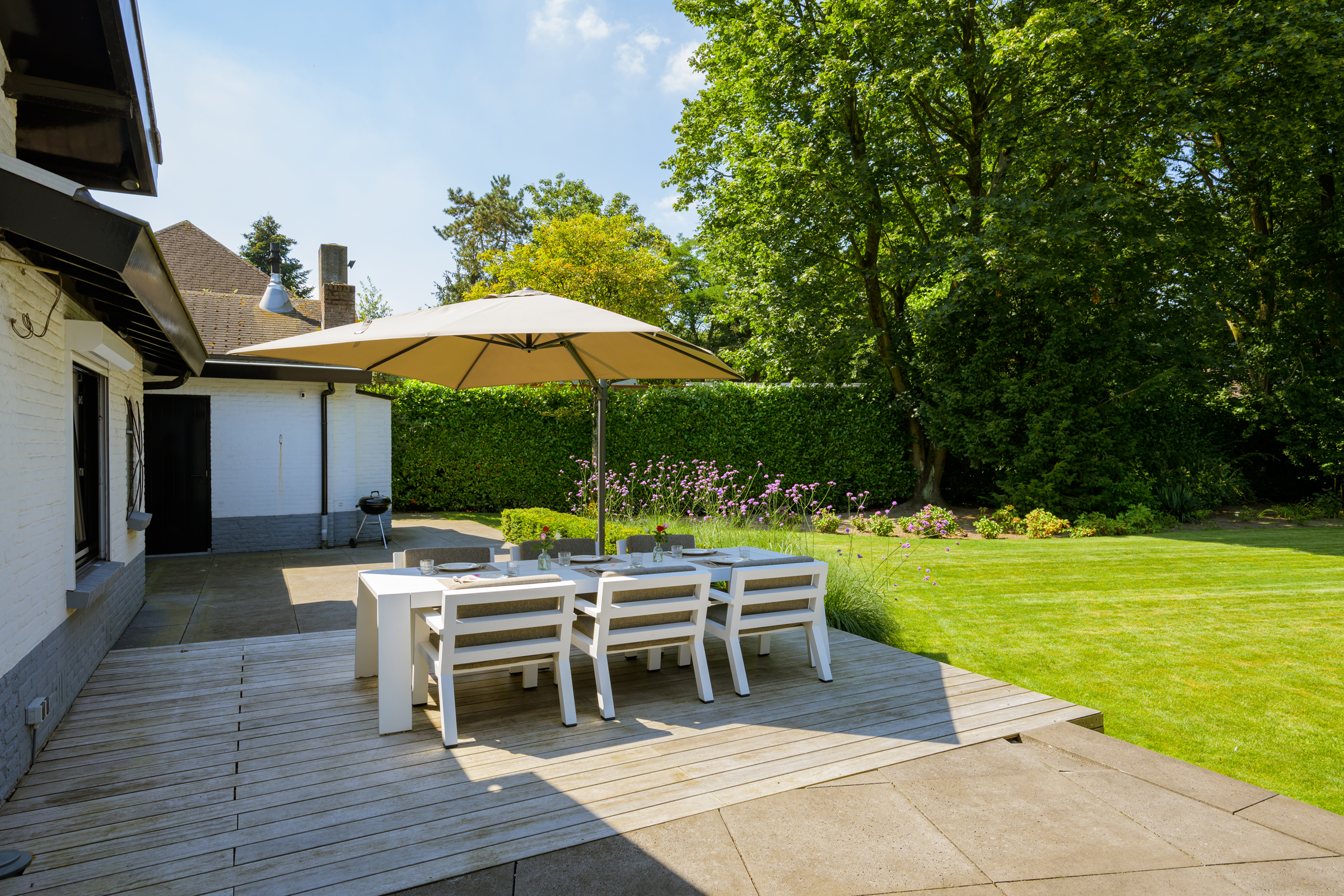 De prachtig aangelegd tuin biedt optimale privacy en op alle momenten van de dag zon- en schaduwplekken. De tuinaanleg bestaat oa uit een groot gazon, diverse terrassen (in grote tegels en steigerplanken uitgevoerd), prachtige bomen, heesters en borders met zeer variërende beplanting.