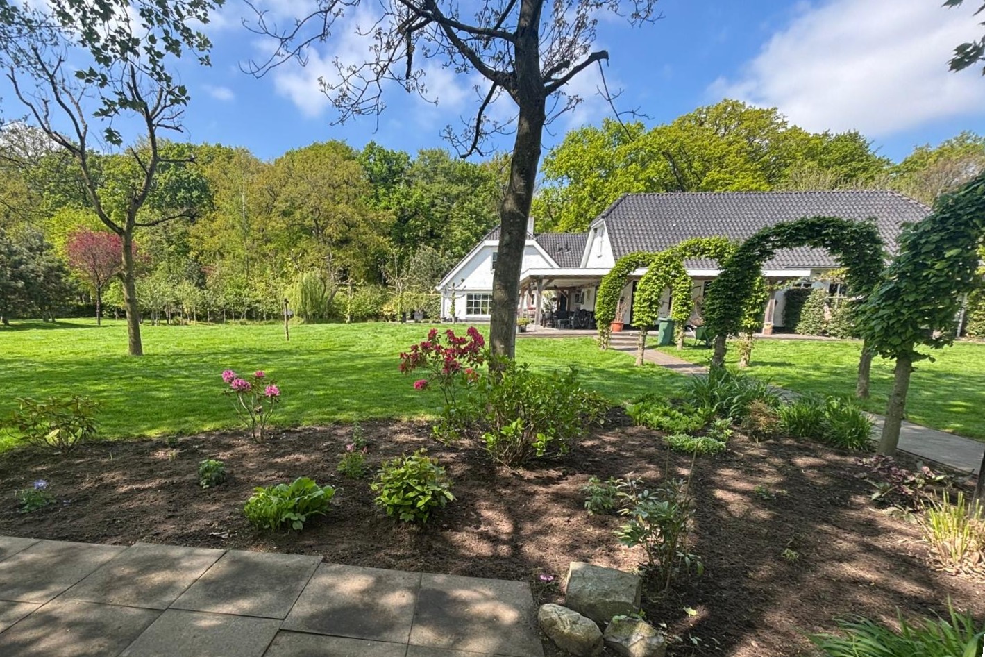 De prachtige, volledig omheinde tuin omringt de woning, biedt optimale privacy en gaat als het ware op in de omgeving. Rondom de woning zijn diverse terrassen aangelegd in strakke betontegels. Er is een veranda gesitueerd tussen de woning en het bijgebouw, deze is ook naast het bijgebouw doorgetrokken en biedt prachtig zicht op de tuin. Ook achter het bijgebouw is deze veranda aanwezig. De veranda is deels voorzien van terrasverwarming. In de tuin tref je o.a. een groot gazon, een fruitboomgaard en diverse bomen en hagen. Naast de woning ligt een prachtige vijver. De oprit is voorzien van sierbestrating en leidt o.a. naar de carport (plaats voor 2 auto’s) en de grote schuur.