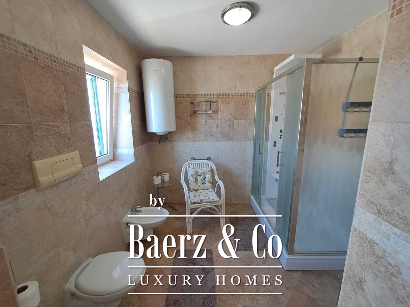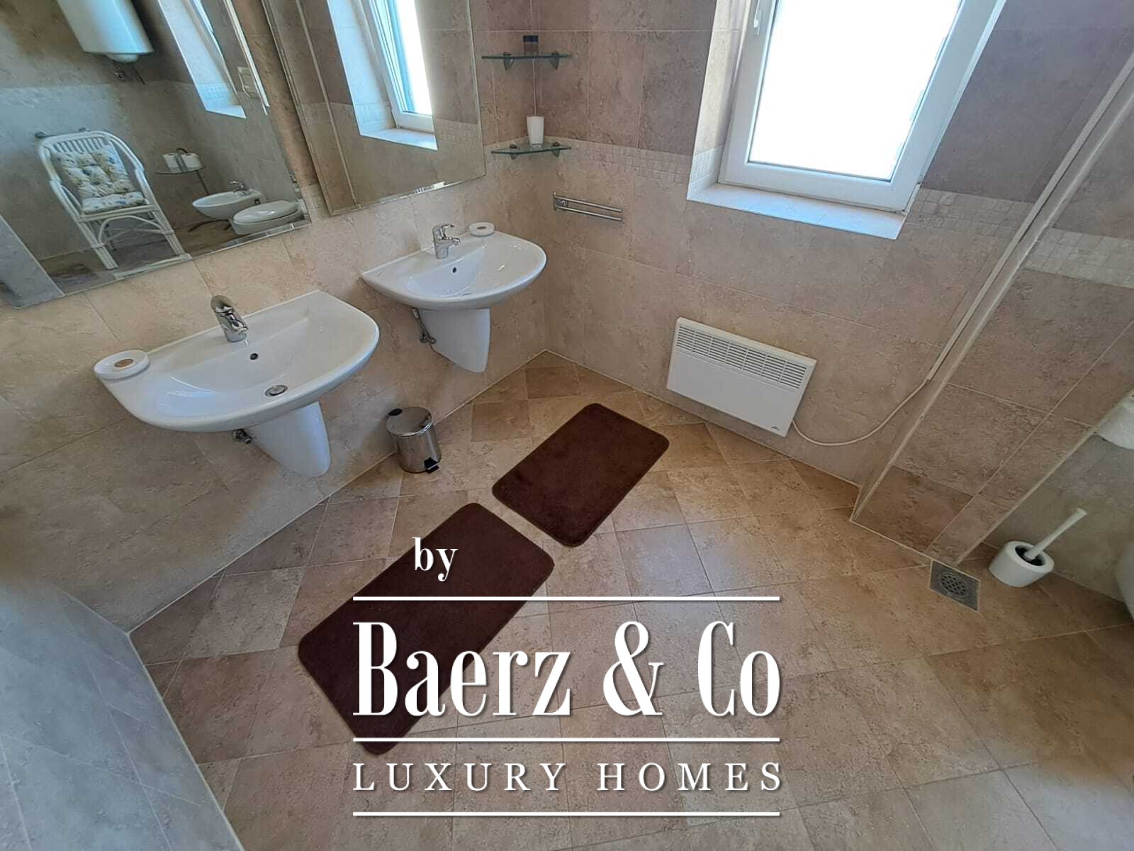 This three bedroom duplex apartment is located in Sveti Stefan, Budva. It has a beautiful seaview as it is around 50m away from the sea. The building was built in 2006. The apartment is fully furnished. 2 parking slots are not included in the price, with them the price is 750 000e. Tivat airport is 30km away and Podgorica airport is around 57km away. The beautiful Milocer park is just a few minutes within walking distance along with the famous Queen's beach. The apartment is perfect for families as they can enjoy the beautiful view of Sveti Stefan and its beaches. The apartment itself has 139m2, while its two terraces have 27m2 (which are included in the price).