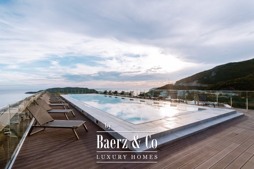 Bewoners genieten van een exclusieve levensstijl met een zwembad op het dak, een toegewijde spa, fitnessruimte en beveiligde ondergrondse parkeergelegenheid. Tot de doordachte voorzieningen behoren een kinderspeelplaats in het groen aangelegde terrein, permanente beveiliging en geavanceerde camerabewaking voor gemoedsrust. De architectuur combineert strakke lijnen met natuurlijke materialen, afgestemd op het ritme van de Budvaanse kust en het mediterrane klimaat.
