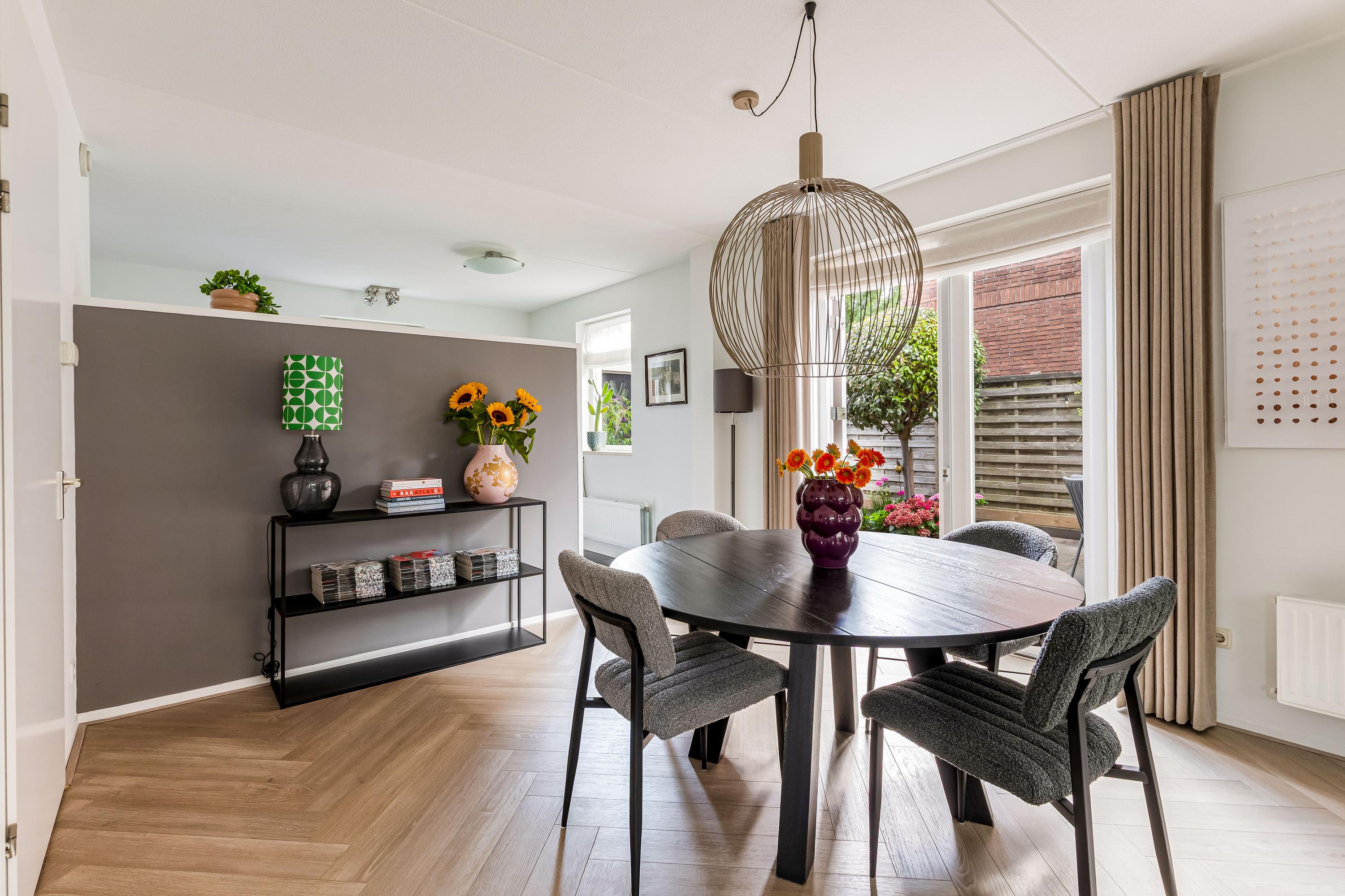 Via de ruime oprit (met plaats voor meerdere auto's én een laadpaal) betreed je de woning in een verzorgde hal met meterkast, toilet, trapopgang en toegang tot de living. De royale en lichte woonkamer straalt luxe uit, met een fraaie visgraatvloer, grote raampartijen en 2x dubbele openslaande deuren naar de zonnige achtertuin. De naadloze verbinding tussen binnen en buiten maakt dit een ideale plek om te ontspannen of te entertainen.