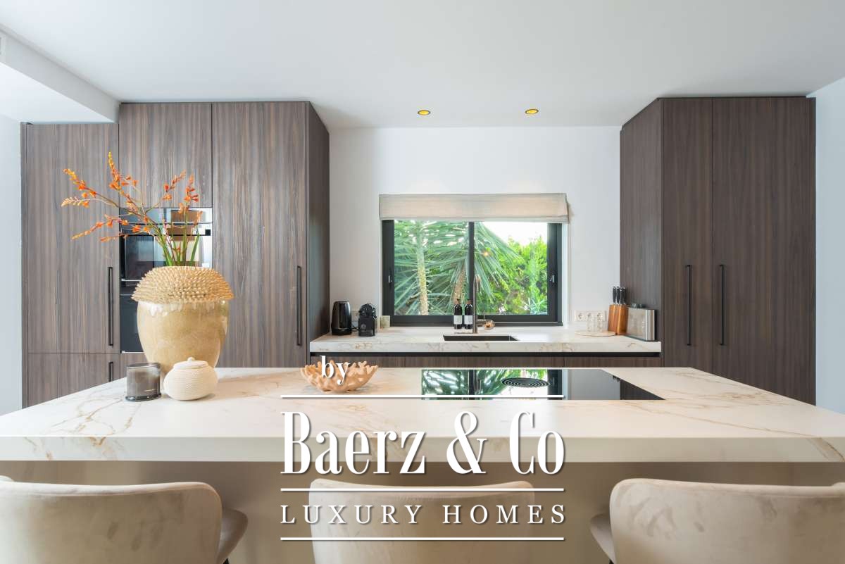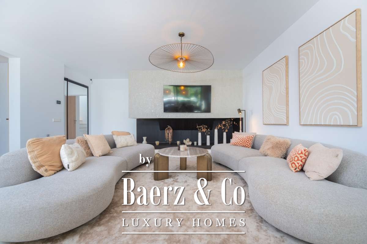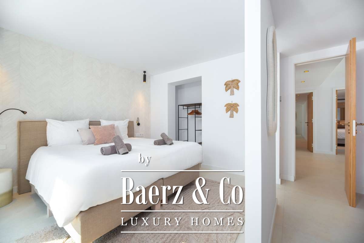 Luxe en elegante 5-slaapkamer villa met verhuur vergunning en privé zwembad in Can RamónDe omgevingOntdek deze prachtige villa in Can Ramón, het perfecte onderkomen voor wie op zoek is naar een luxe en ontspannen levensstijl op Ibiza. Deze woning biedt de perfecte mix van pure elegantie in een rustige omgeving en is makkelijk te bereiken vanuit zowel de charmante lokale dorpjes als het dynamische stadsleven van het eiland. Ibiza-Stad ligt op slechts 10 minuten afstand en biedt een levendige mix van cultuur, uitstekende restaurants en leuke boetiekjes. Daarnaast nodigt het nabijgelegen dorp Jesús u uit om het authentieke Ibiza te ontdekken met gezellige lokale eettentjes en ambachtelijke winkeltjes. De glamoureuze Marina Botafoch biedt een ruime keuze aan toprestaurants en stijlvolle bars, en is perfect voor een avondje uit, op slechts een steenworp afstand. Deze woonlocatie biedt ook een uitstekende verbinding met de haven voor degenen met een passie voor jachten. Als strandliefhebber kunt u uw dagen ontspannen doorbrengen op het goudgele zand van het nabije Talamanca Beach. Bovendien kunt u binnen 30 minuten rijden het familievriendelijke strand van Cala Llonga verkennen, het sfeervolle Cala Nova, of de kristalheldere wateren van Cala San Vicente. Deze villa is een uitstekende uitvalsbasis om te genieten van Ibiza's vele favoriete stranden. Met de luchthaven op slechts 15 minuten rijden, biedt deze accommodatie ongeëvenaard gemak voor frequente reizigers. Villa Can Palau biedt de perfecte luxe woonervaring in een mediterrane chique woonstijl.De villaGeniet van dit prachtig ontworpen luxe object, dat moderne elegantie combineert met bohemian-chique accenten. Dit geweldige huis heeft 5 ruime slaapkamers en 5 luxe badkamers, wat het een ideaal huis maakt voor een groot gezin of voor het ontvangen van gasten, vrienden of familie op regelmatige basis. De lichte en frisse open woon- en eetkamer heeft een moderne grote open haard, die een gezellige sfeer creëert voor onvergetelijke avonden. De eethoek biedt plaats aan 10 gasten, zodat er voldoende ruimte is voor uitgebreide diners en spelavonden. De open moderne, volledig uitgeruste keuken heeft een strakke marmeren keuken bar, ideaal voor ontbijt of een drankje 's avonds met uw gasten. Op de bovenverdieping vindt u de slaapkamers, elk doordacht ontworpen met ingebouwde kasten en en-suite badkamers, versierd met luxe marmeren afwerking, gouden armaturen en inloopdouches. De master slaapkamer valt op met zijn vrijstaande moderne bad, inclusief sereen uitzicht over het platteland. Dit uitzonderlijke eigendom combineert luxe en comfort, waardoor het de perfecte keuze is als uw thuis op Ibiza, het gehele jaar door.De buitenruimtesVanuit de woonkamer stapt u naar buiten op een overdekte patio waar u een grote eettafel vindt, perfect om buiten te dineren met vrienden en familie. Geniet van maaltijden vanaf de ingebouwde barbecue buiten, met uitzicht op uw schitterende privé zwembad, het platteland van Ibiza en de weelderige bergen. Ontspan op een van de ligbedden met kussens of neem een duik in het grote zwembad. Als de avond valt, kunt u samenkomen in de geïntegreerde buitenlounge met een gezellige vuurplaats. Deze tuin biedt eindeloze mogelijkheden voor ontspanning en vermaak. Op de eerste verdieping wacht een groot overdekt balkon met een spectaculair uitzicht over het prachtige landschap van de Balearen. Op de bovenste verdieping ontdekt u een fantastisch dakterras dat een idyllische plek biedt om te zonnebaden, te ontspannen met een boek of zelfs te genieten van een mediterrane siësta. Het pand is volledig omheind, waardoor veiligheid en privacy gegarandeerd zijn. Daarnaast biedt de villa een parkeergarage en een buiten parkeerplaats voor meerdere auto's, wat het gemak en de veiligheid ten goede komt. Ervaar de perfecte mix van comfort en natuur in deze uitzonderlijke villa. Uw ultieme mediterrane luxe levensstijl begint hier.