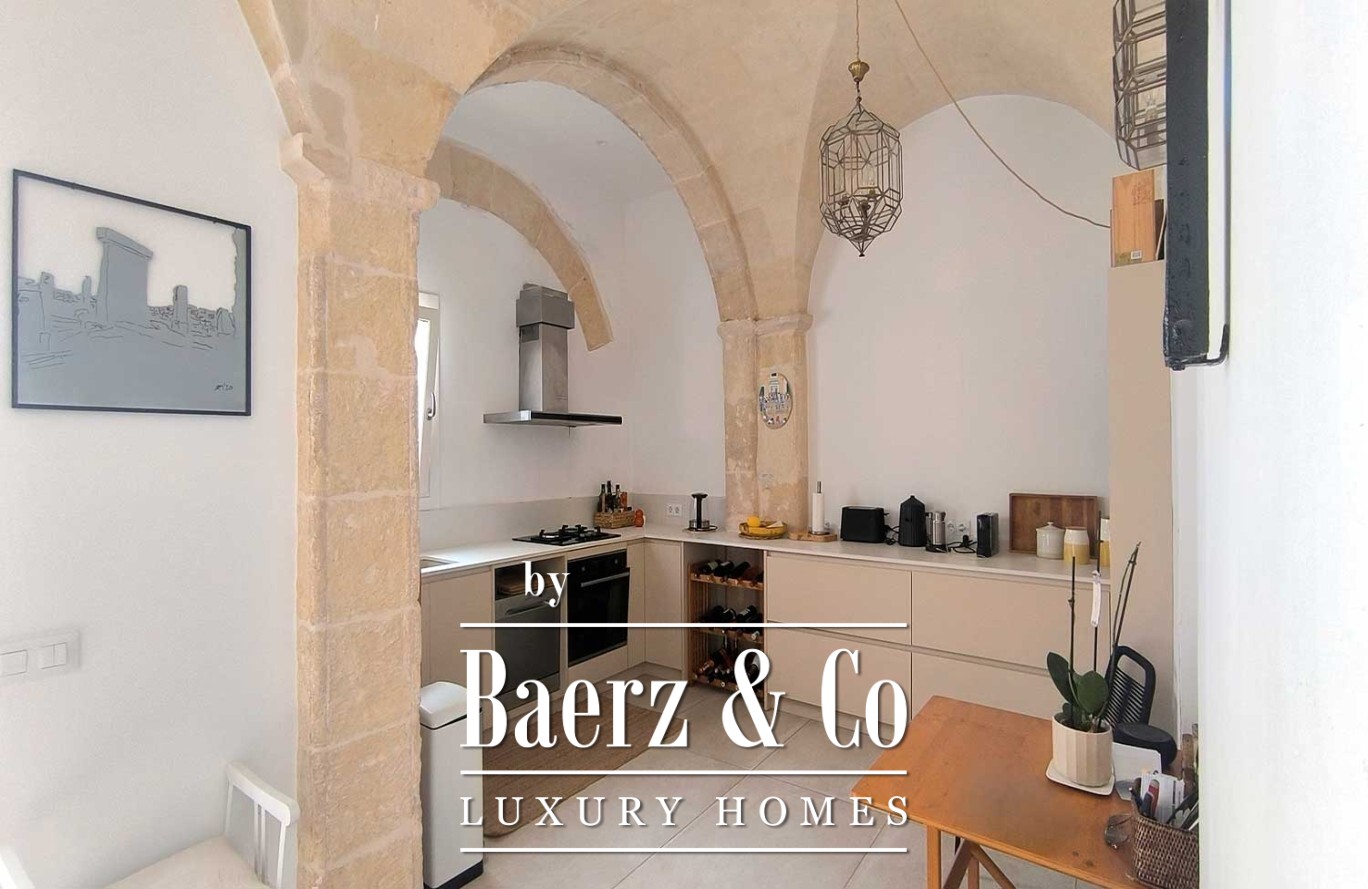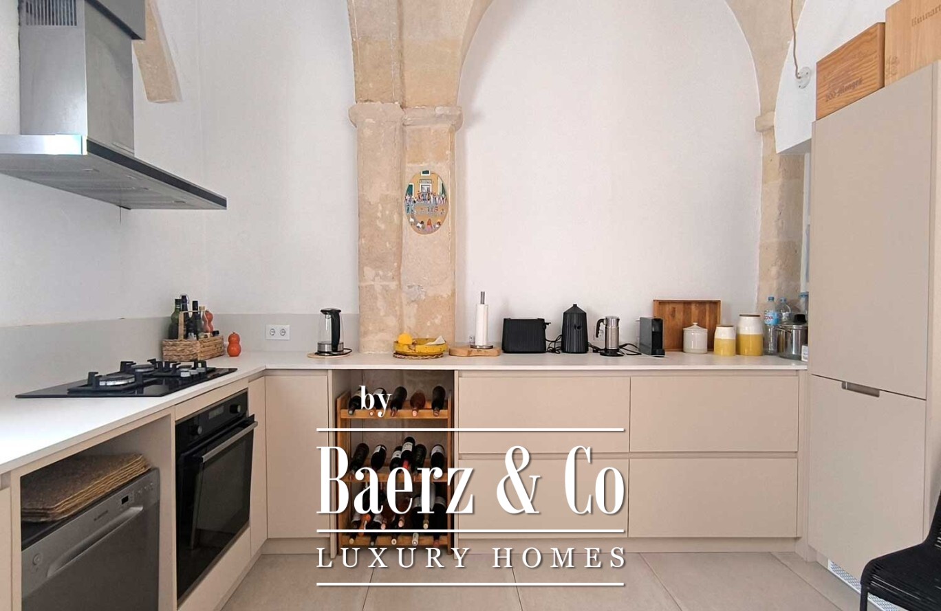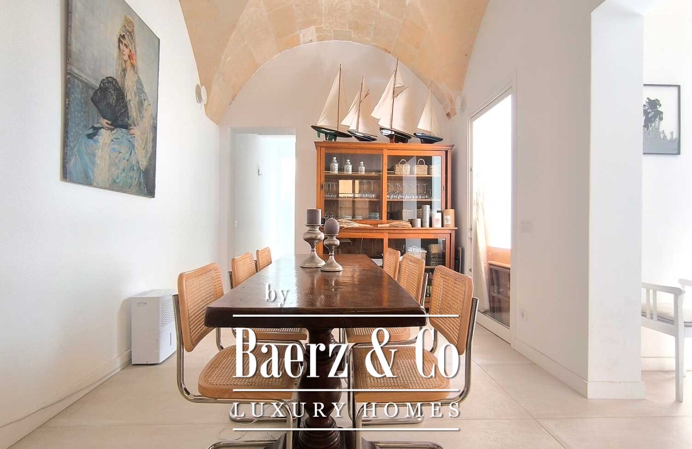 Townhouse Ciutadella de Menorca belichaamt een zeldzame combinatie van authenticiteit en ingetogen luxe binnen 160 m² zorgvuldig herontworpen leefruimte. Bij binnenkomst worden originele architectonische elementen gecombineerd met verfijnde materialen, wat zorgt voor een evenwicht tussen karakter en hedendaags comfort. De keuken, gelegen onder een elegante marés-boog, verenigt historische charme met dagelijkse functionaliteit. De woon- en eetkamers met gewelfd plafond creëren de sfeer voor ontspannen samenzijn en bedachtzaam wonen.