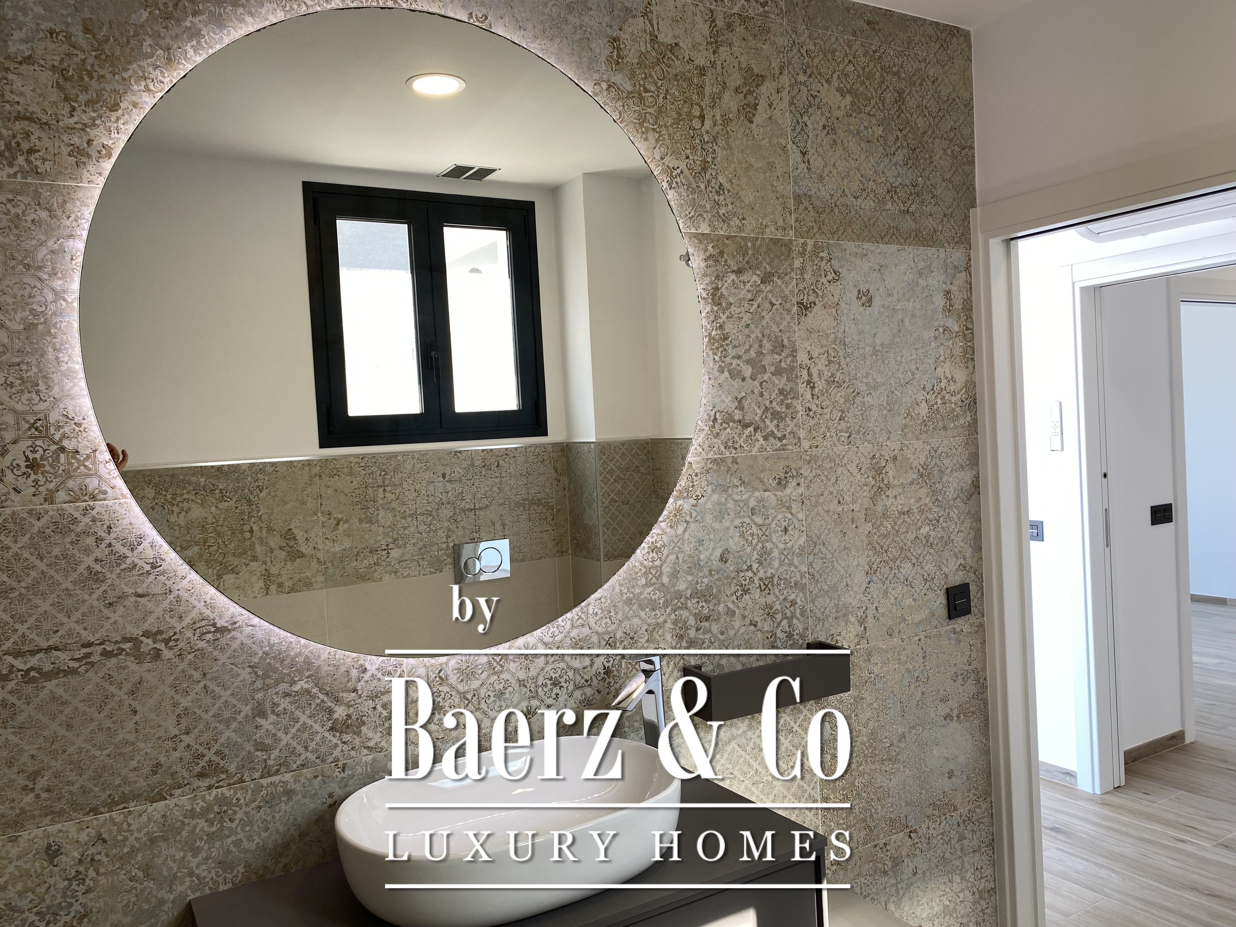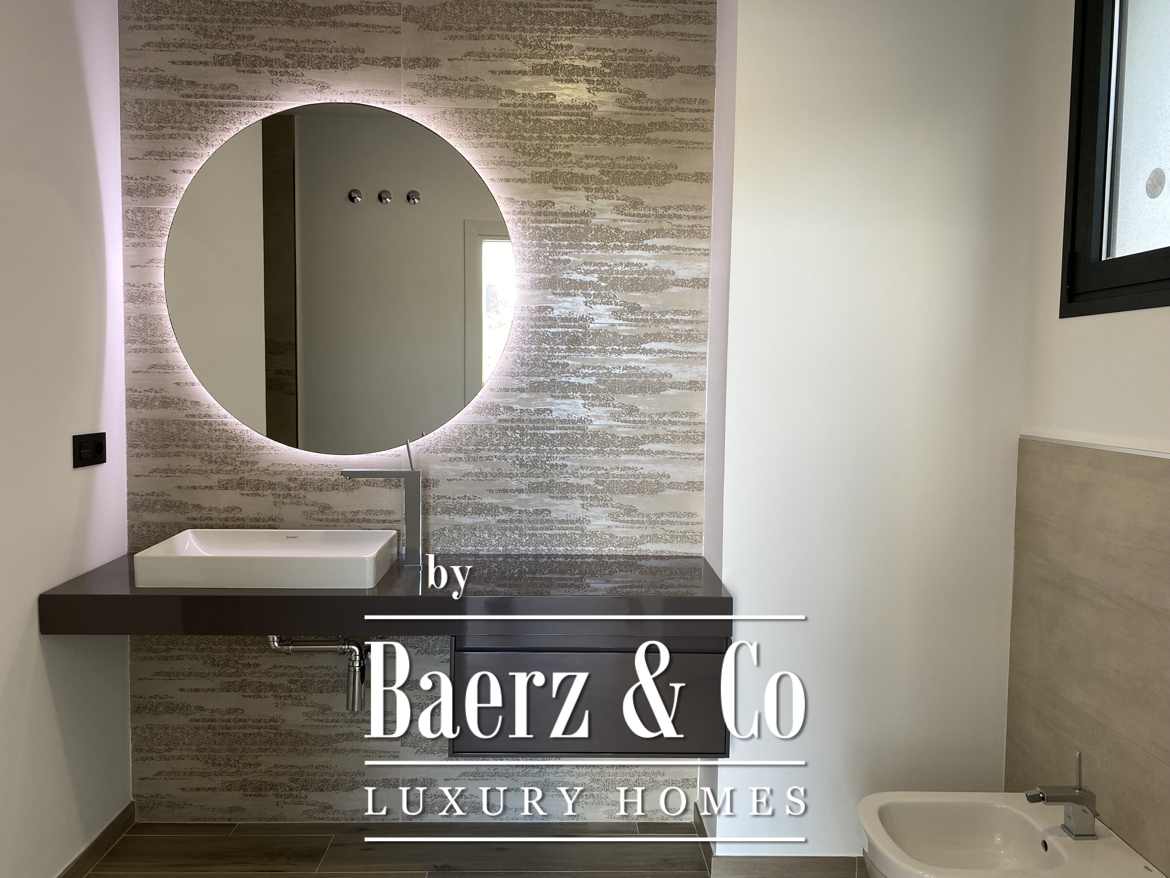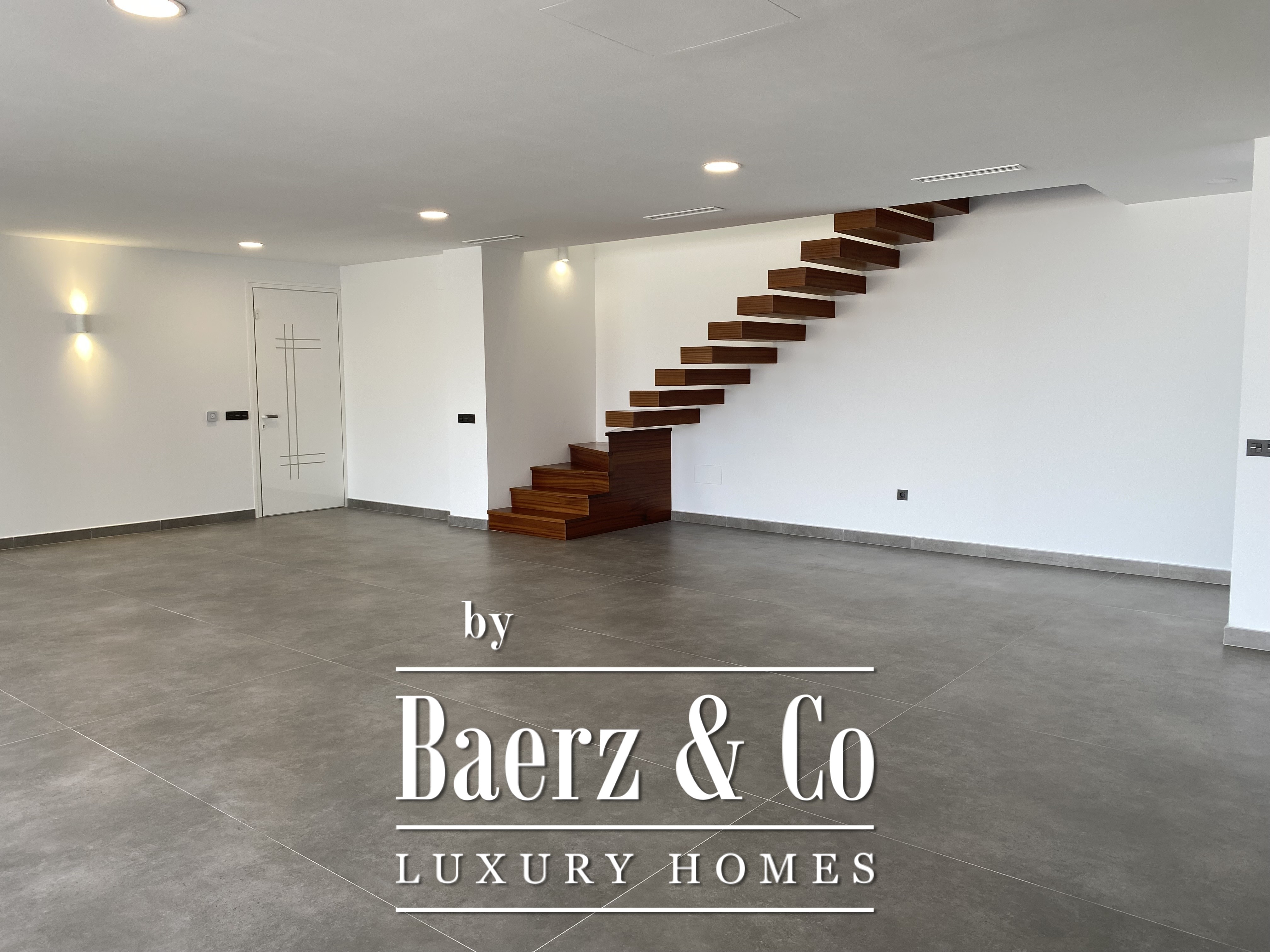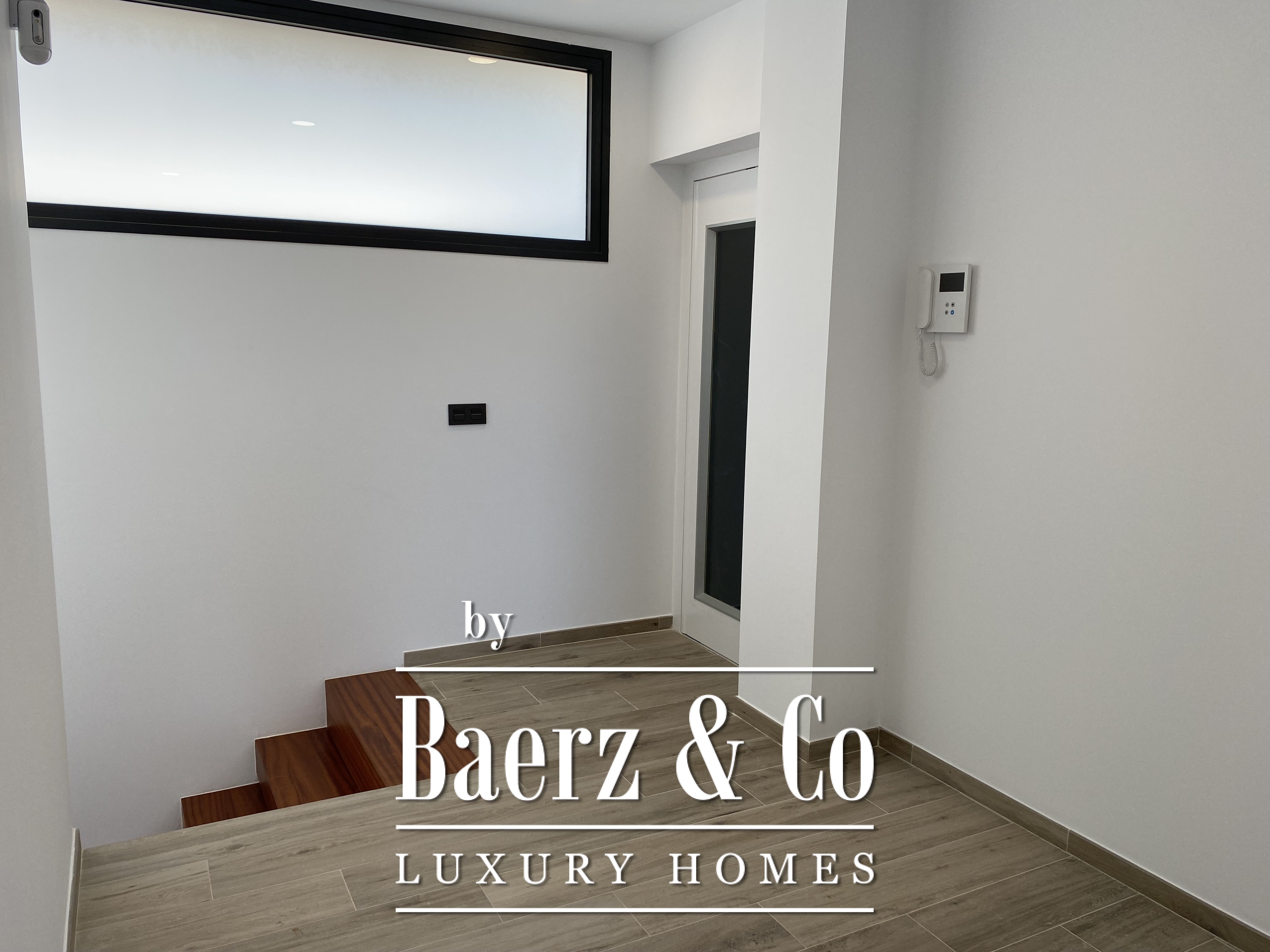 Deze villa, vorig jaar gebouwd met veel aandacht voor detail en uitstekende materialen, heeft een minimalistisch ontwerp en royale open ruimtes. Beginnend met een perceel van 755 m² en een “Infinity”-zwembad van bijna 40 m², gevolgd door een open woon-eetkamer met een volledig opvouwbare glazen wand die de woonruimte naar buiten uitbreidt en last but not least, een verbazingwekkend mooie keuken. De nieuwe designkeuken is onlangs geïnstalleerd en biedt uitzicht op zee, boven- en onderkasten en een eiland met een extra spoelbak. Volledig uitgerust met hoogwaardige apparatuur. Op dezelfde verdieping vindt u een ruim kantoor met een gastentoilet.