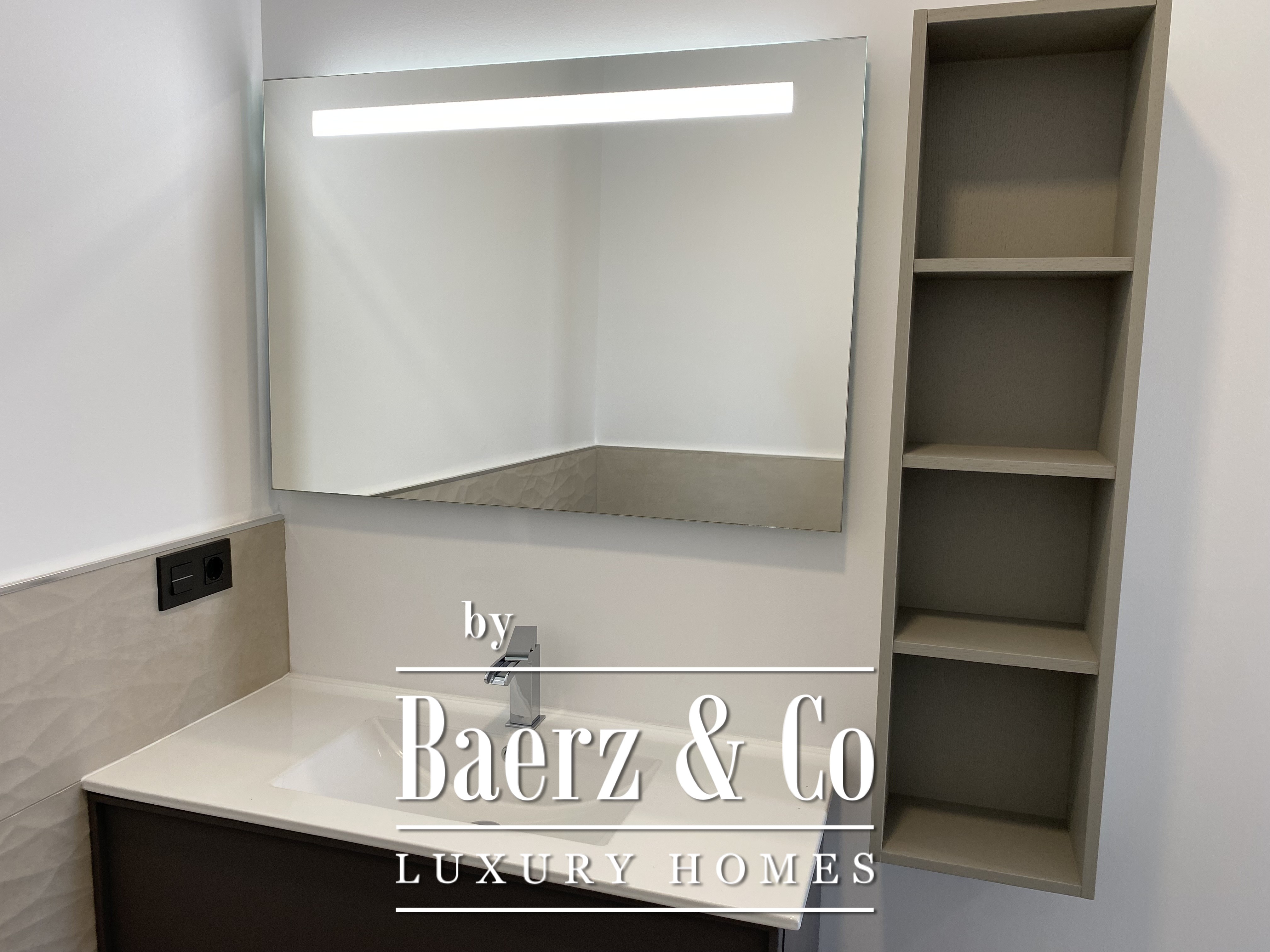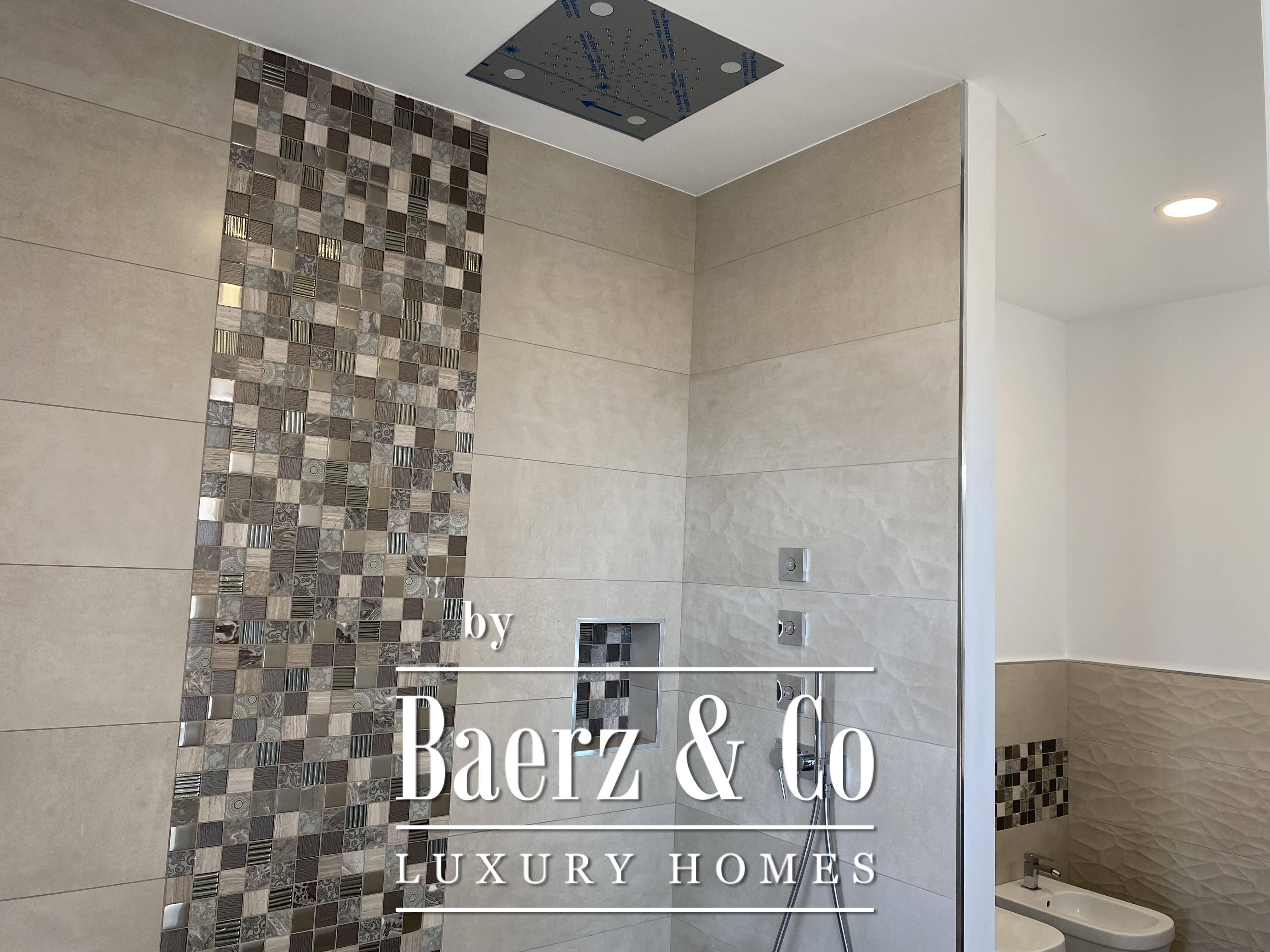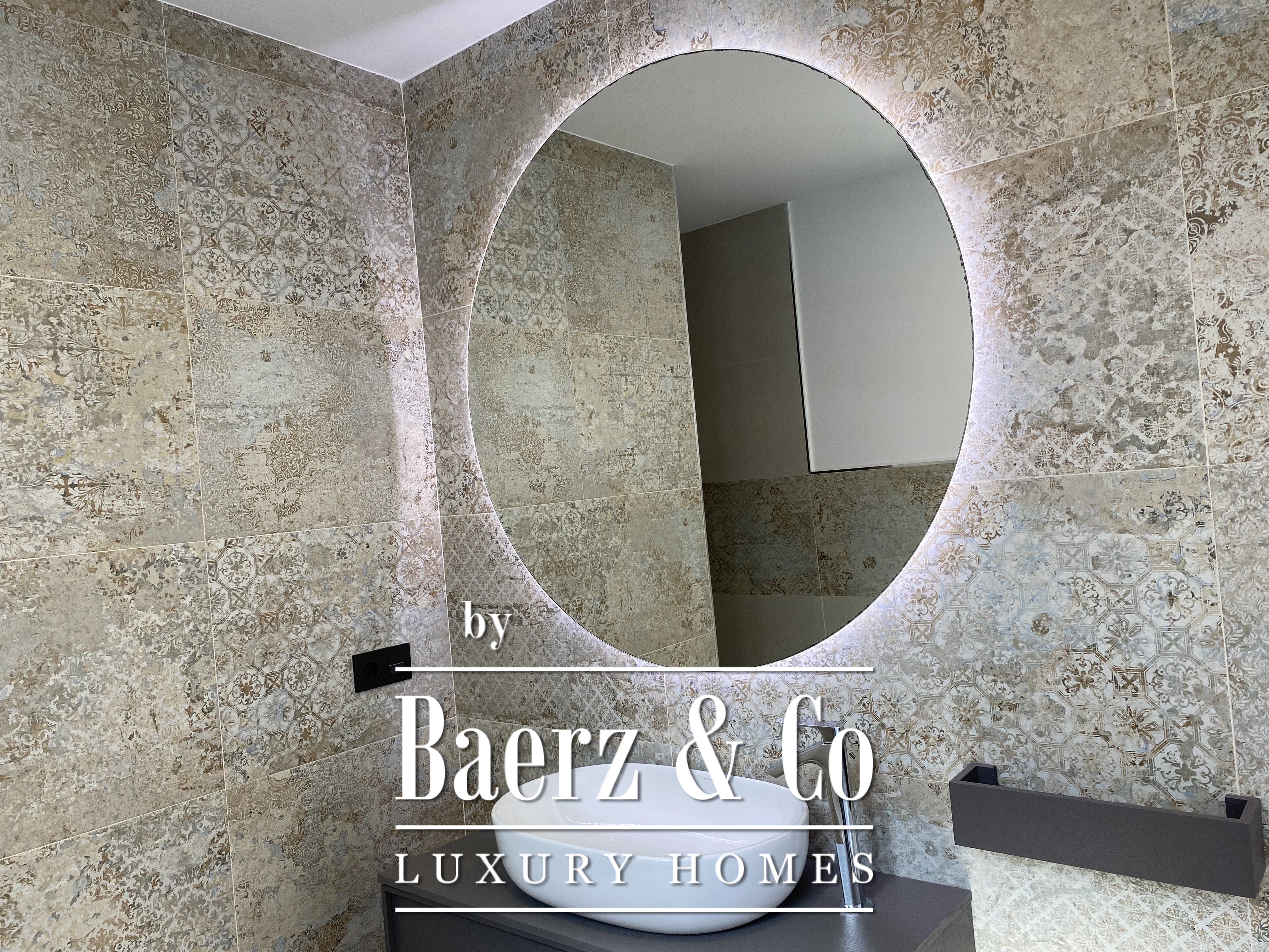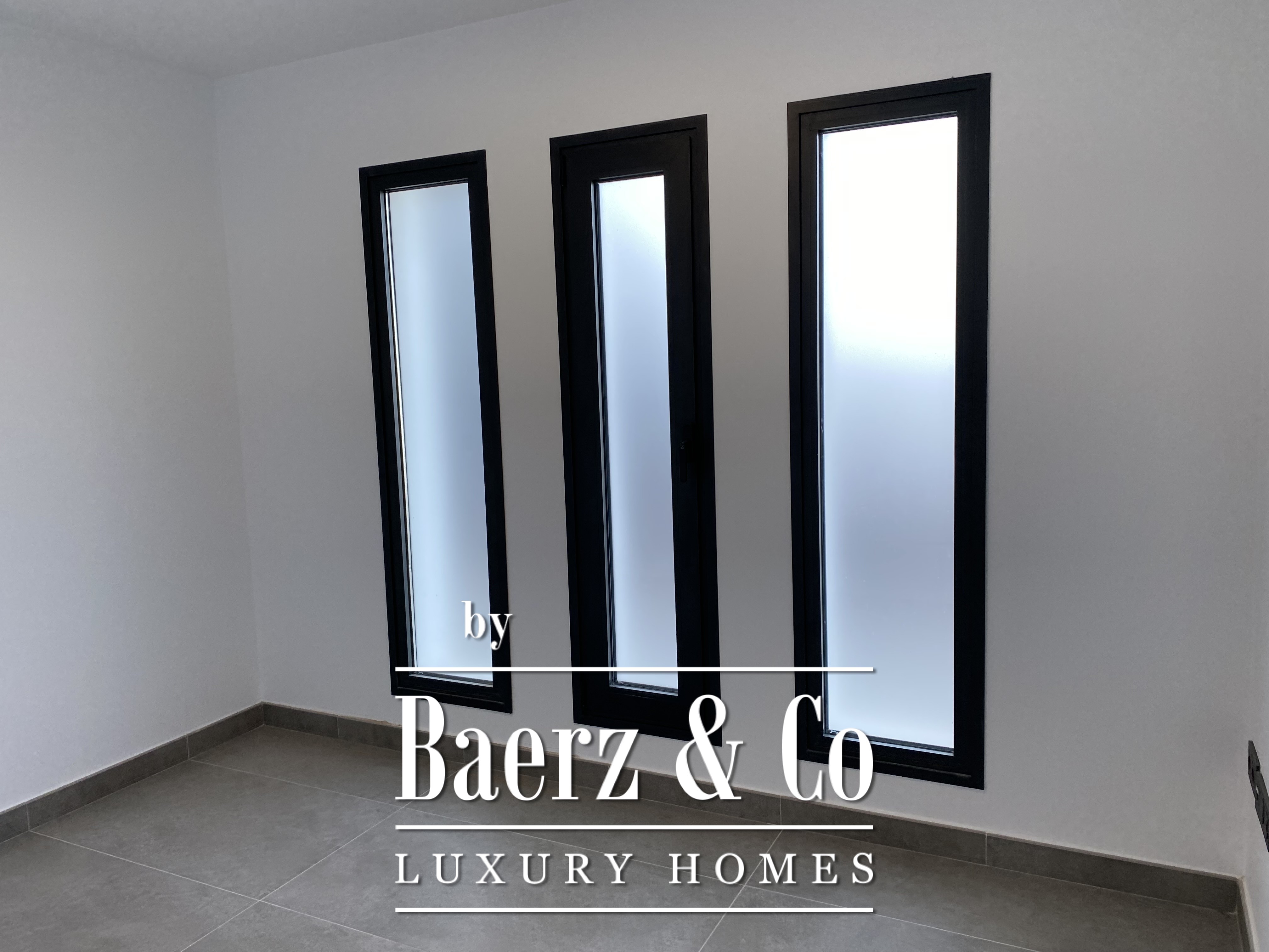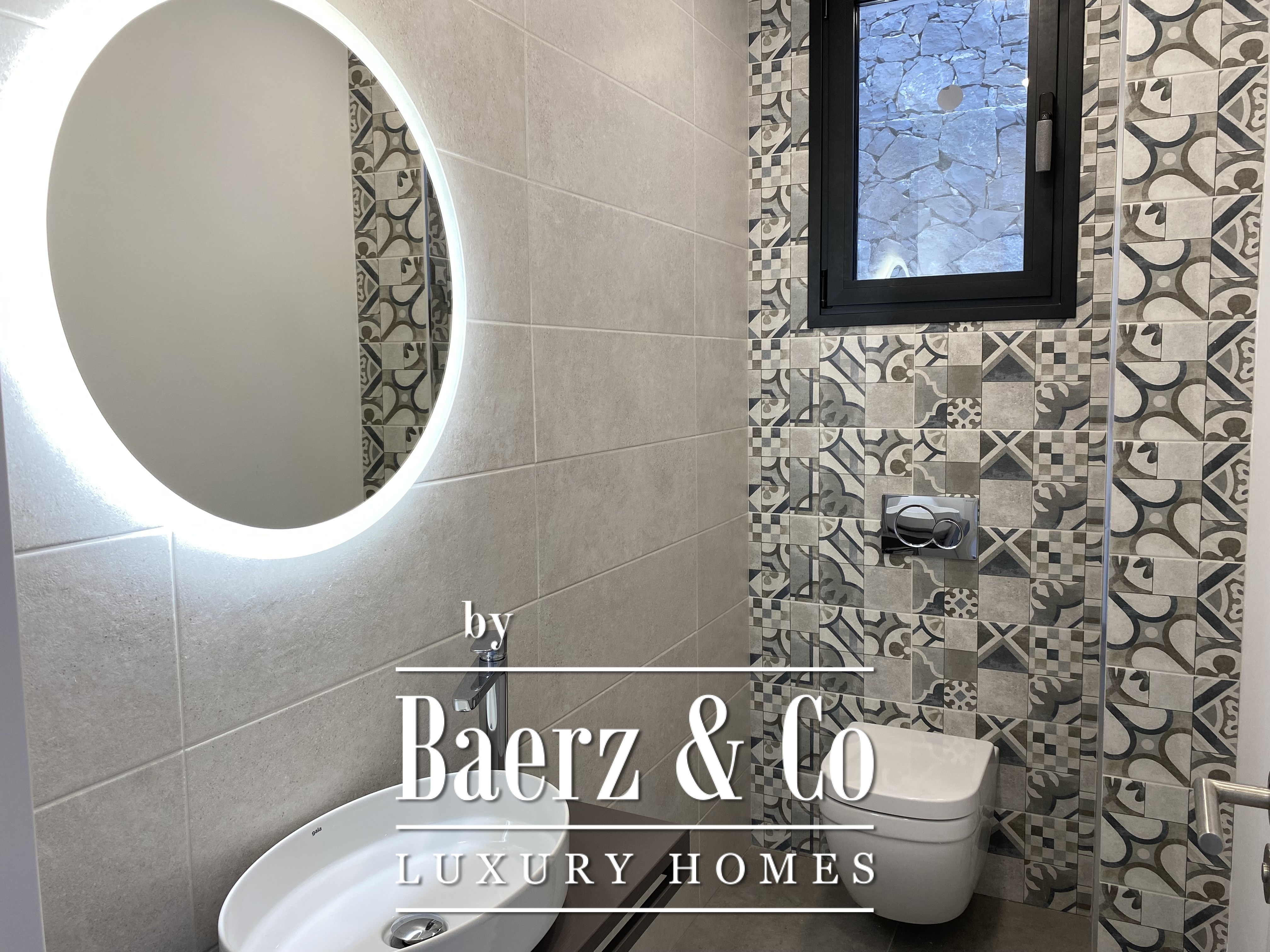 Deze villa, vorig jaar gebouwd met veel aandacht voor detail en uitstekende materialen, heeft een minimalistisch ontwerp en royale open ruimtes. Beginnend met een perceel van 755 m² en een “Infinity”-zwembad van bijna 40 m², gevolgd door een open woon-eetkamer met een volledig opvouwbare glazen wand die de woonruimte naar buiten uitbreidt en last but not least, een verbazingwekkend mooie keuken. De nieuwe designkeuken is onlangs geïnstalleerd en biedt uitzicht op zee, boven- en onderkasten en een eiland met een extra spoelbak. Volledig uitgerust met hoogwaardige apparatuur. Op dezelfde verdieping vindt u een ruim kantoor met een gastentoilet.