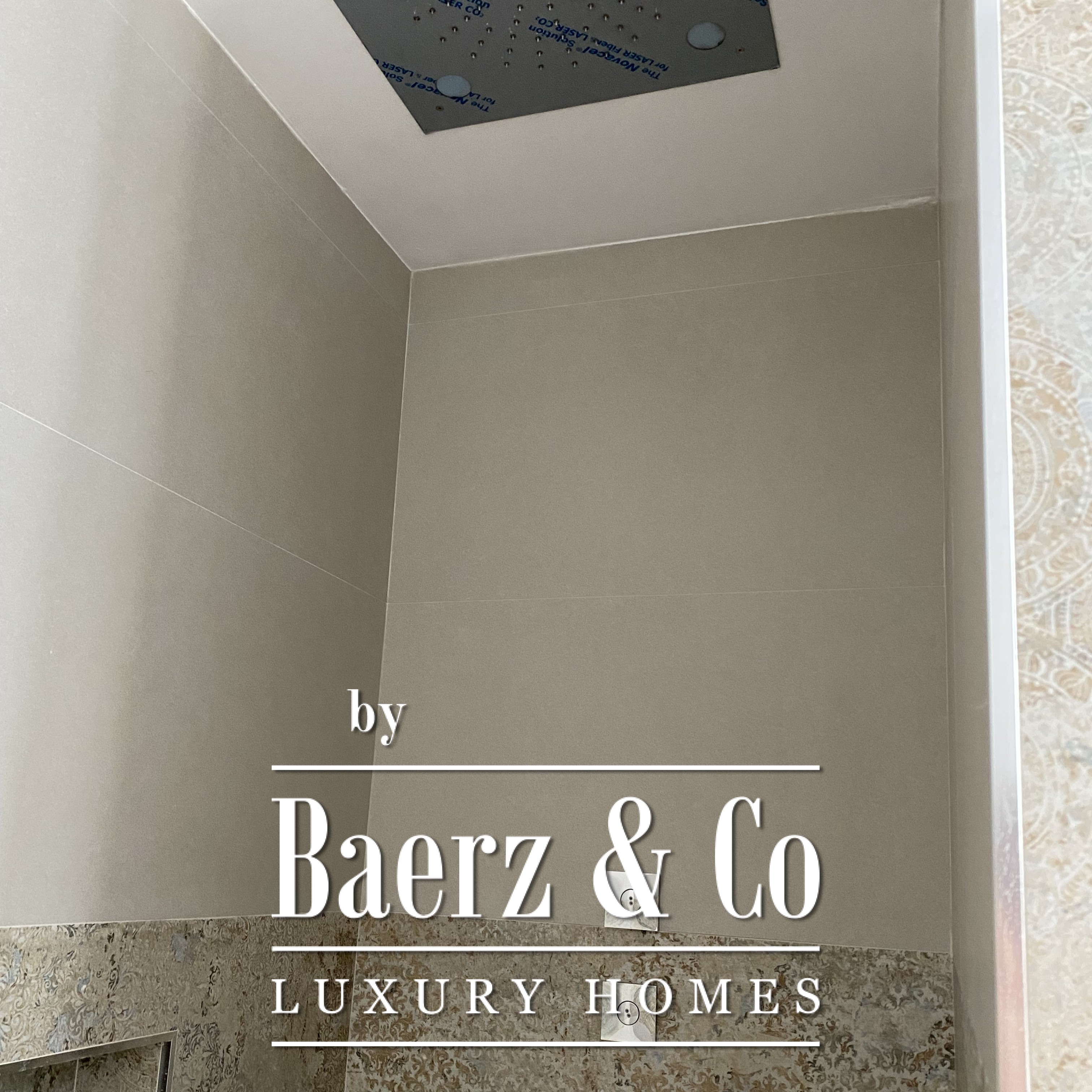 De douches zijn ingebouwd in het plafond en voorzien van chromotherapie.