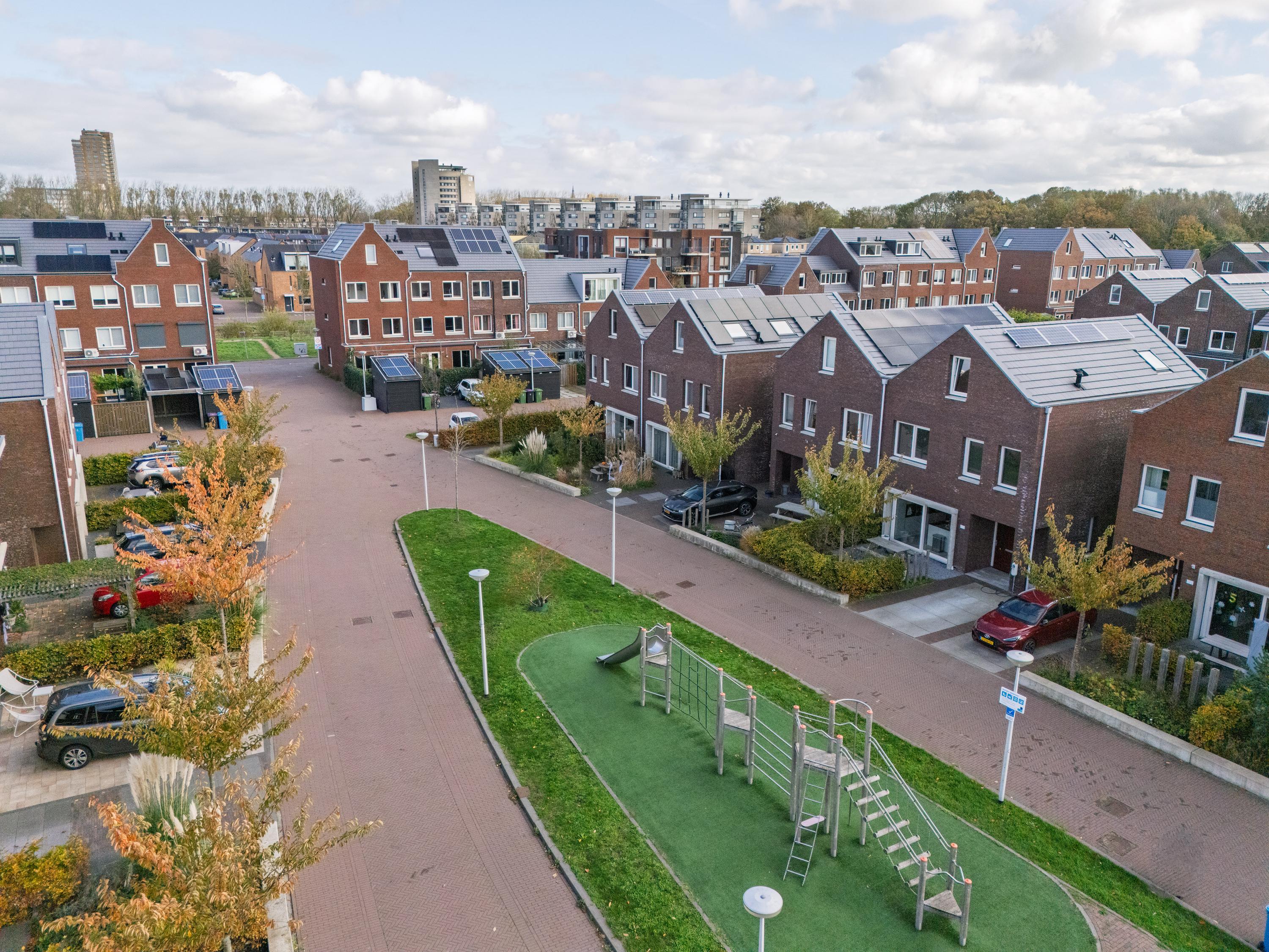 De woning is modern en duurzaam uitgevoerd. Zo is het dak voorzien van zonnepanelen en is de woning aangesloten op het stadsverwarmingssysteem van Delft – volledig gasvrij en klaar voor de toekomst.