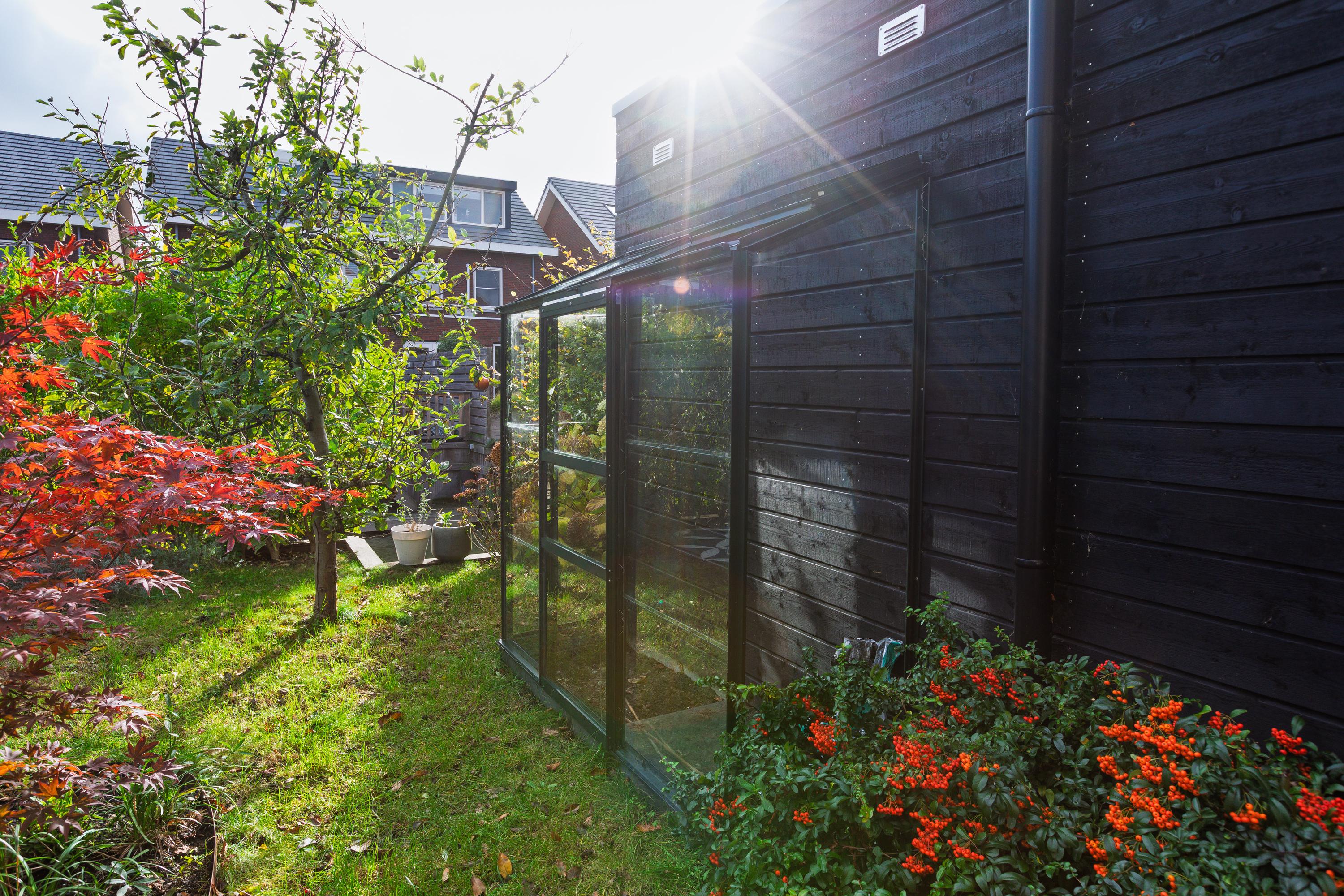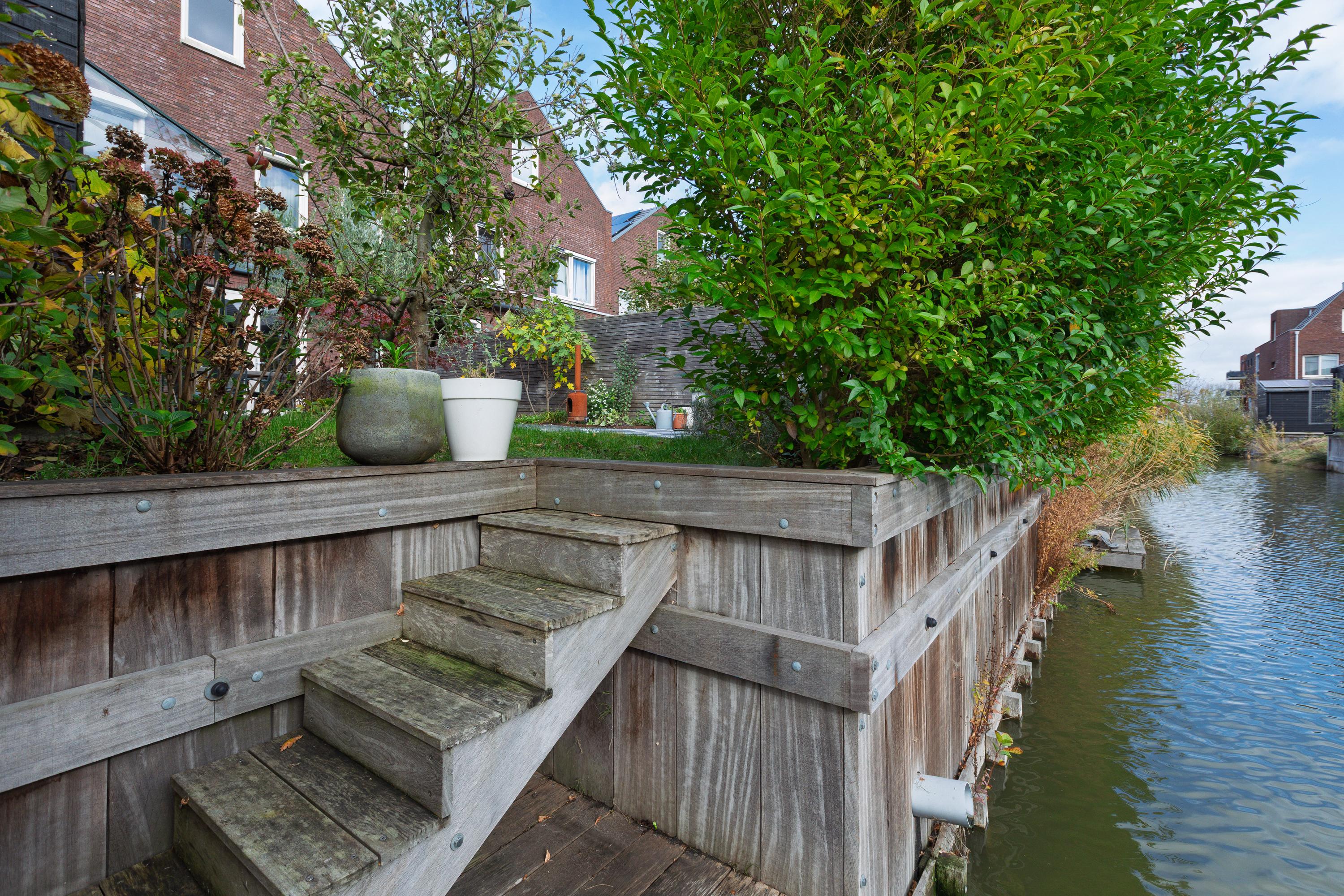 Aan de achterzijde ligt het woongedeelte met zicht op de fraai aangelegde tuin. De woonkamer is breed en biedt voldoende ruimte voor een royale zithoek. De zonnige achtertuin op het zuiden beschikt over een groot terras, een broeikasje, een houten berging en een steiger aan het water. In de zomer stap je hier zó vanaf je eigen tuin op je supboard! De tuin is ook bereikbaar via een achterom langs het huis.