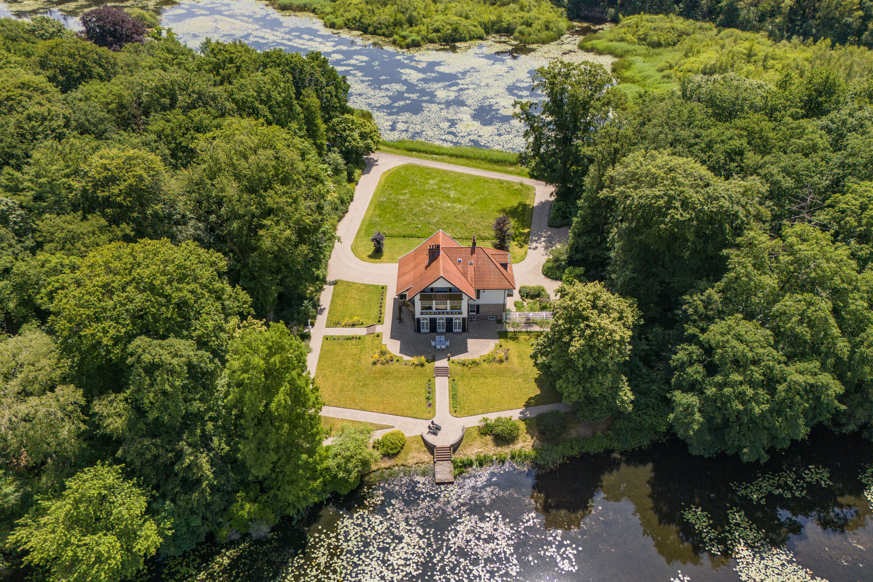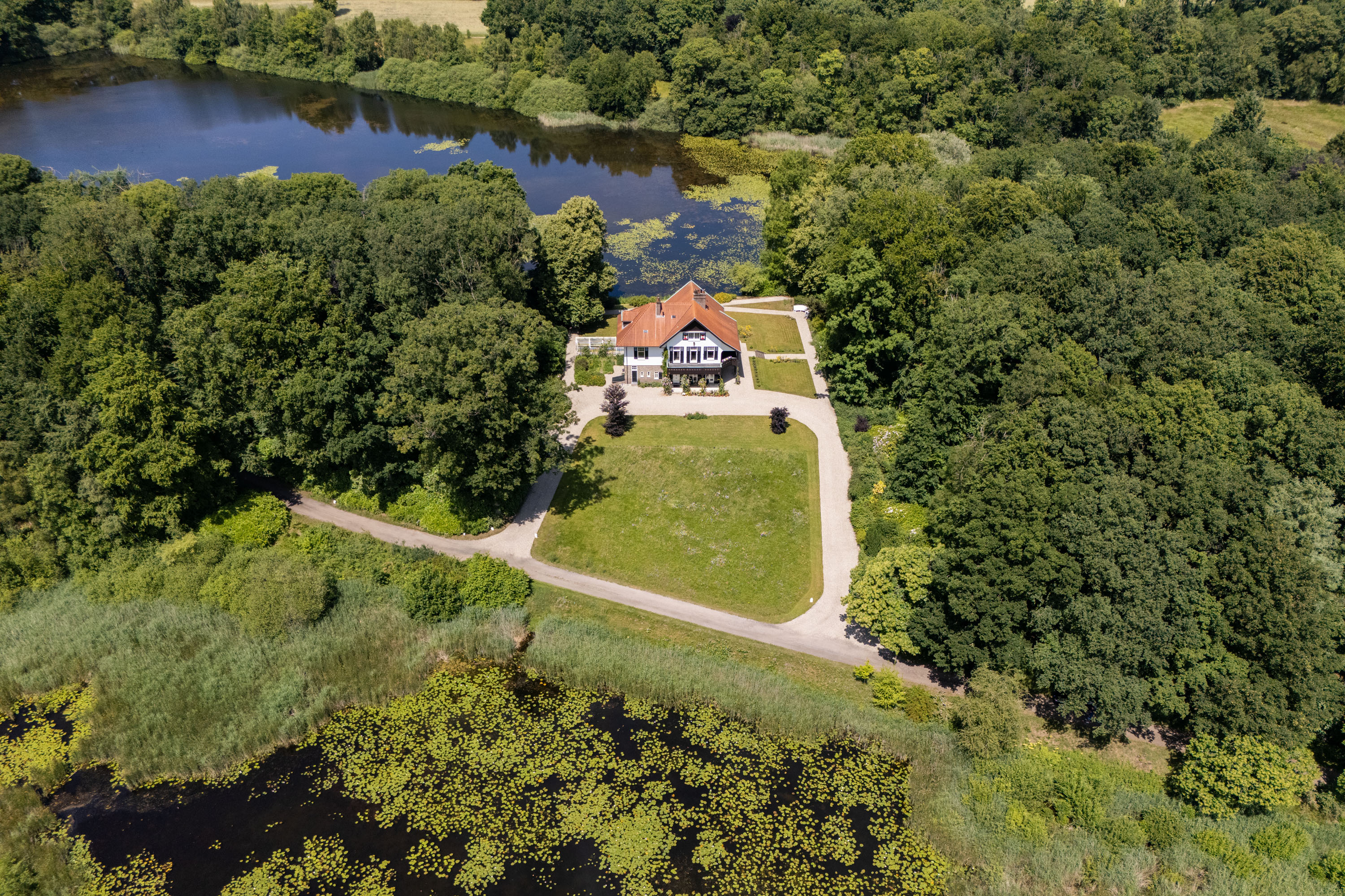 De villa is gelegen op de plek waar de gemeentegrenzen van Hengelo, Enschede en Dinkelland bij elkaar komen, één van de meest unieke en groene locaties in Twente vanwege de aaneenschakeling van diverse landgoederen en natuurgebieden. Precies tussen de twee Lonnekermeren (6 en 10 ha) op een strook land met uitzicht over het water is de villa gesitueerd. Uren wandelen en fietsen in de prachtige beboste omgeving, schaatsen in de winter op de meren, hier is altijd iets moois te beleven. Ondanks dat de buitenplaats omgeven is door hoogwaardige natuur is de ligging zeer centraal. Alle denkbare voorzieningen, van gezellige horeca en theaters tot golfbanen, universiteit, hogescholen, ziekenhuizen en uitgebreide winkelcentra en openbaar vervoer zijn in de buurt. Het landgoed ligt namelijk vlak naast Hengelo en op slechts 10 minuten van Enschede (via een voor bewoners speciaal opengestelde route). Dankzij een fietsviaduct is de Hengelose wijk Hasseleres zelfs binnen enkele minuten bereikbaar. Ook de op en afritten van de autosnelweg A1 zijn binnen enkele minuten bereikbaar zodat er ook een goede aansluiting is met de rest van Nederland en Duitsland.
