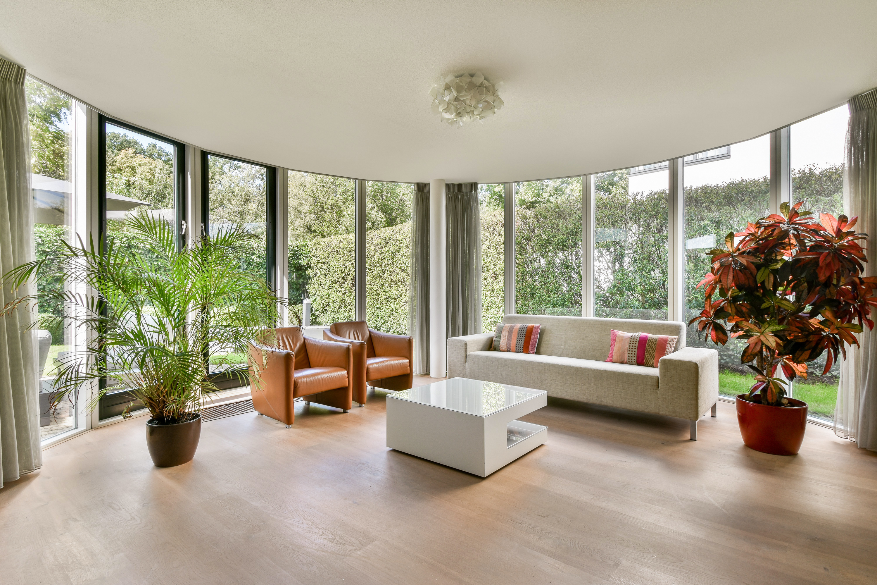 Royale living met een grote ronde erker met grote openslaande deuren naar het terras en een sfeervolle haard aan de voorzijde. Door de grote raampartijen op het westen is er een prachtige lichtinval. In de hal is een eiken parketvloer aanwezig, welke doorloopt in de woonkamer. De wanden en het plafond zijn strak afgewerkt.