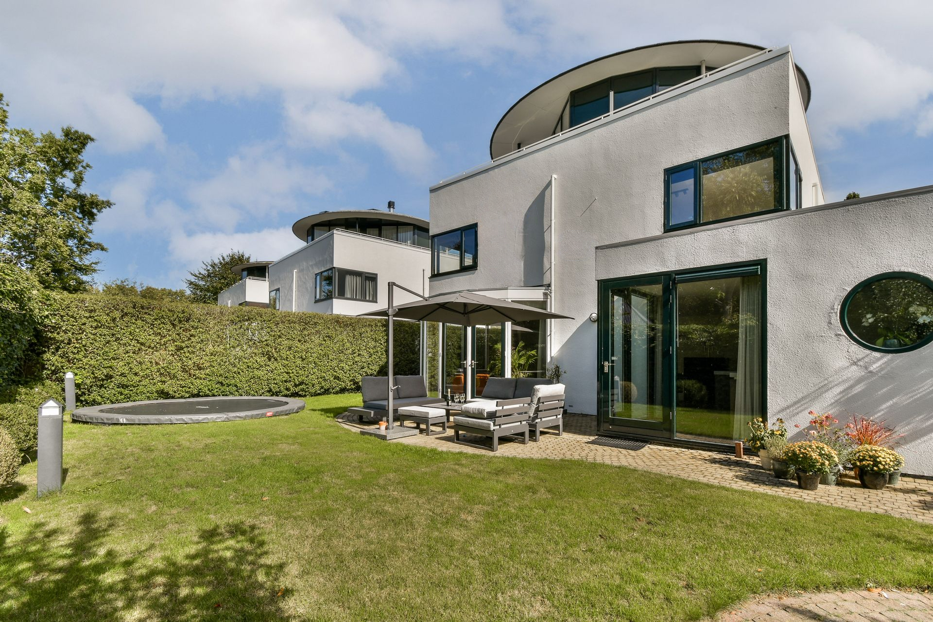 In 1995 is deze, door de bekende architect Cees Dam ontworpen, villa gebouwd en is naast de royale en luxe opzet van de woning te herkennen aan de karakteristieke vormgeving met strakke en ronde vormen. De voorzijde van het perceel grenst aan een ruime waterpartij en is via een met de buren gedeelde brug toegankelijk. De achtertuin is royaal en ligt heerlijk zonnig op het westen.