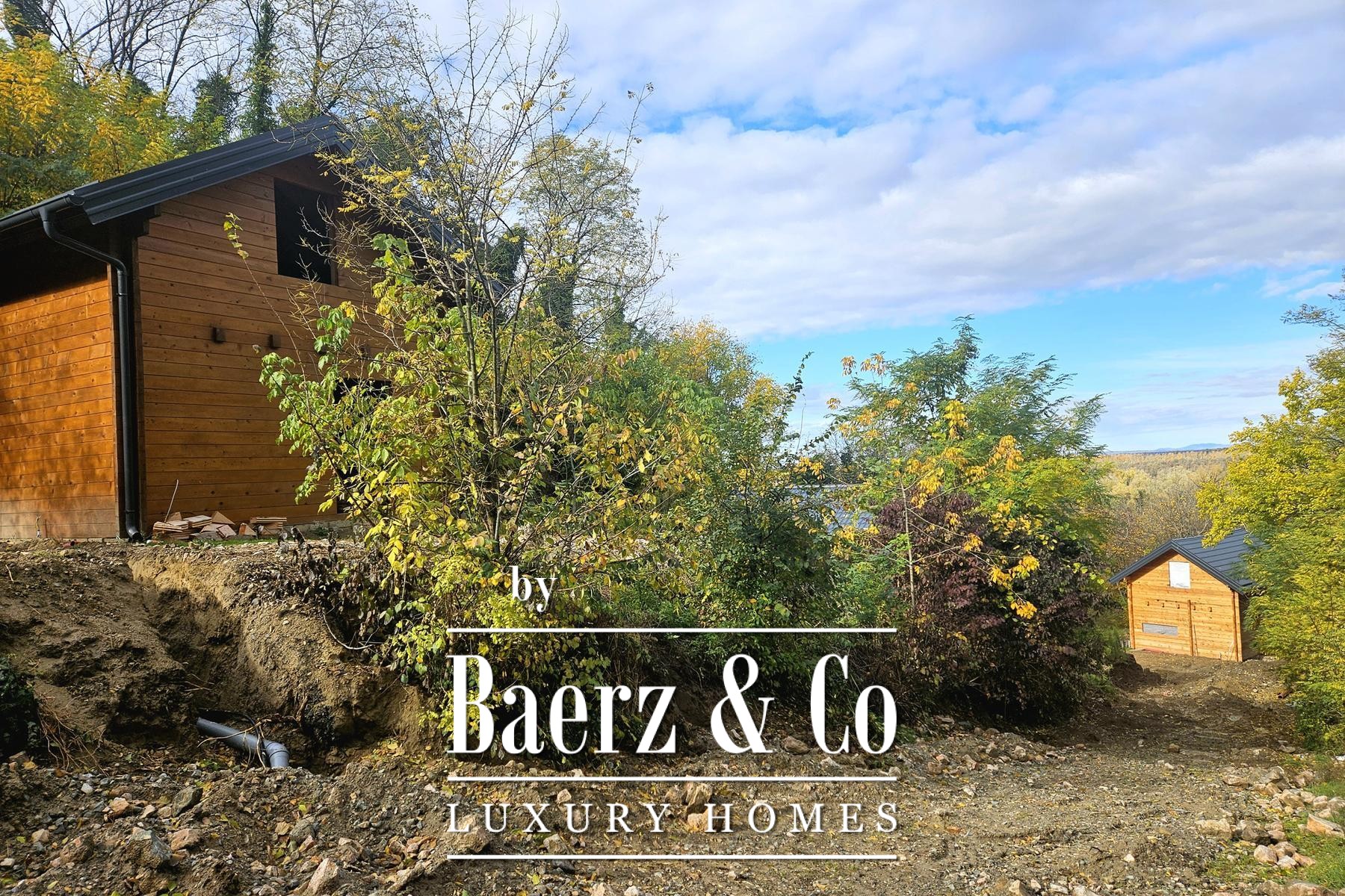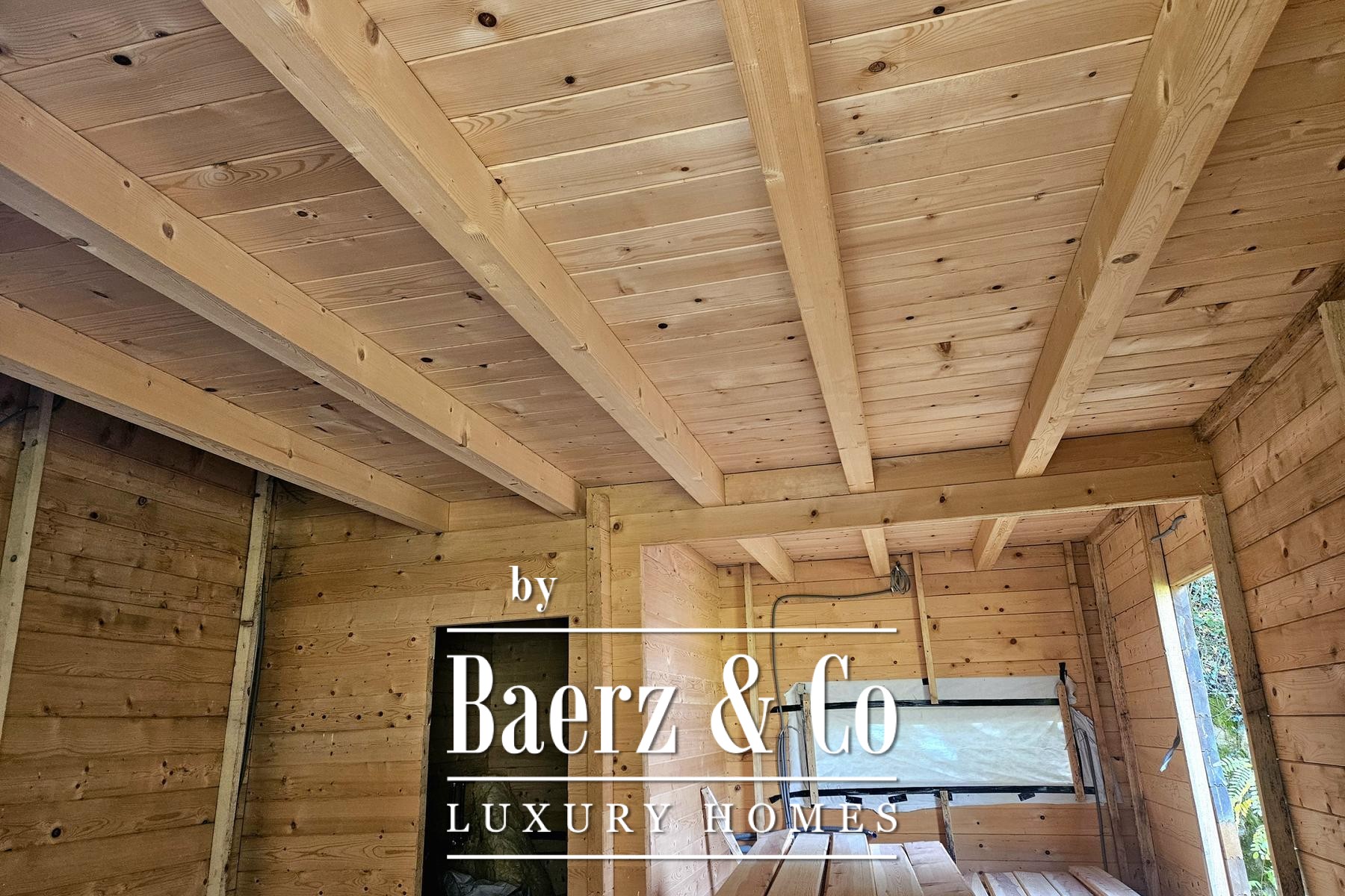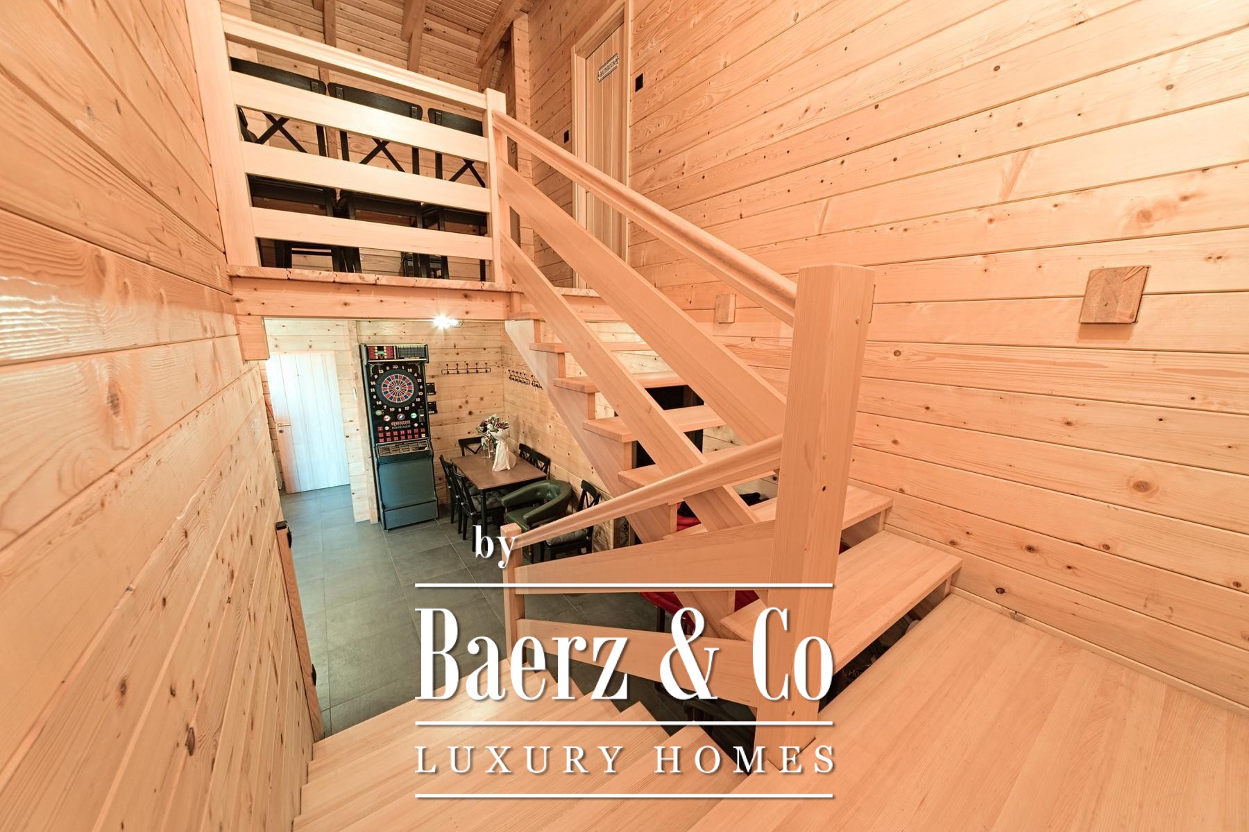 Grenzend aan de hoofdwoning liggen vijf recent opgeleverde houten woningen, elk met 80 m² woonoppervlak. De indeling omvat een lichte woonkamer en badkamer op de begane grond, terwijl de bovenverdieping plaats biedt aan twee slaapkamers. Aan de achterzijde bieden privéterrassen uitzicht op het ruime perceel en het verwarmingssysteem is ingericht op zelfstandigheid en efficiëntie.