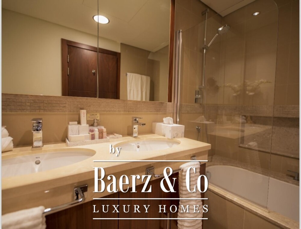 Van vloer tot plafond reiken de glaspartijen, die een adembenemend, filmisch uitzicht bieden op de beroemde architectonische iconen van Dubai, met onder meer directe nabijheid tot de Burj Khalifa, Dubai Mall en de culturele aantrekkingskracht van het Operadistrict. Het interieur is ingetogen en verfijnd; elk detail is zorgvuldig geselecteerd voor comfort en helderheid, met twee stijlvolle badkamers die de slaapkamers bedienen.