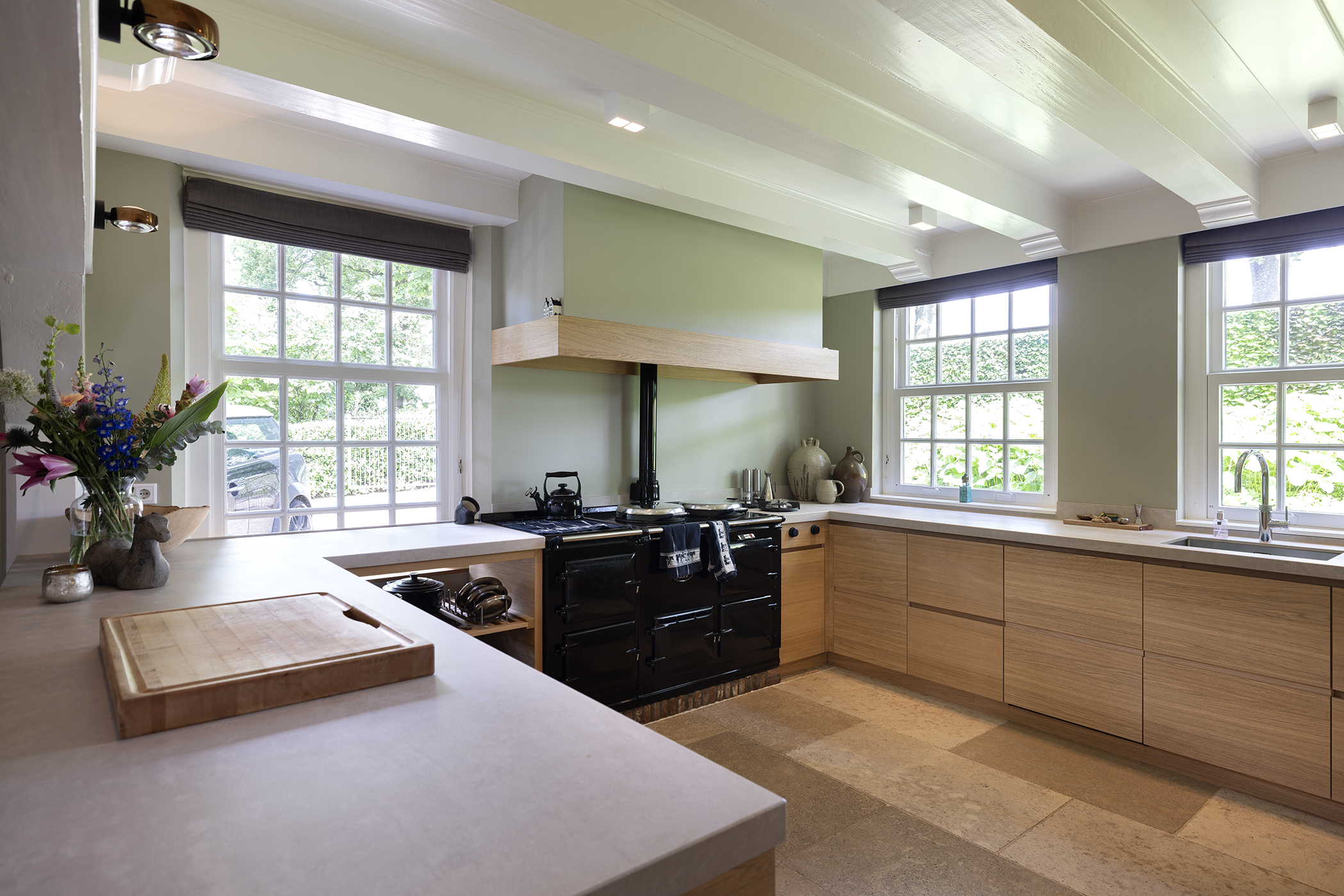 De woning heeft 4 à 5 slaapkamers, twee kelders, een moderne keuken (2022, mét elektrisch AGA-fornuis) en een sfeervolle woonkamer met open haard. Vanuit zowel de keuken als de woonkamer stap je zo het zonovergoten terras op, gelegen op het zuidwesten. Hier zit je heerlijk lang in de zon en te genieten van de prachtige tuin.