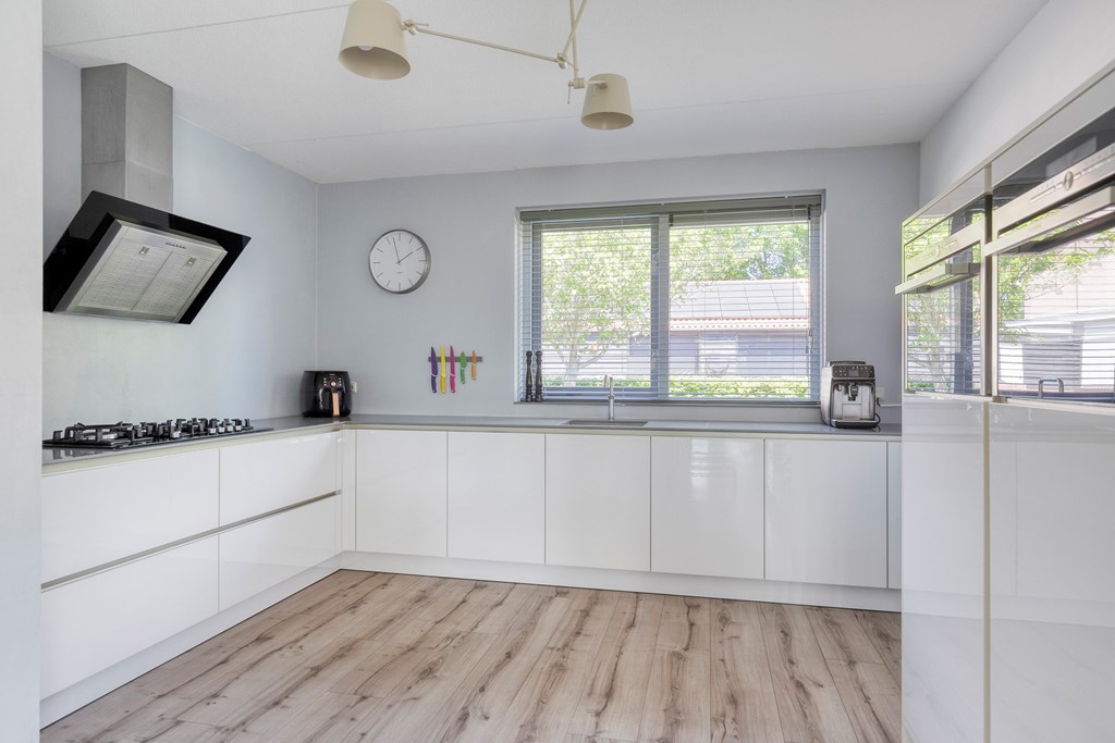 Aansluitend op de woonkamer treft u de woonkeuken, gelegen aan de voorzijde van de woning. De luxe keuken is ruim van opzet, beschikt over een L-vormig werkblad en is voorzien van diverse inbouwapparatuur, waaronder Quooker, stoomoven, combi-oven vaatwasmachine, koken op gas. De keuken is de ideale plek om heerlijke gerechten te bereiden en mooie momenten te creëren met familie en vrienden.