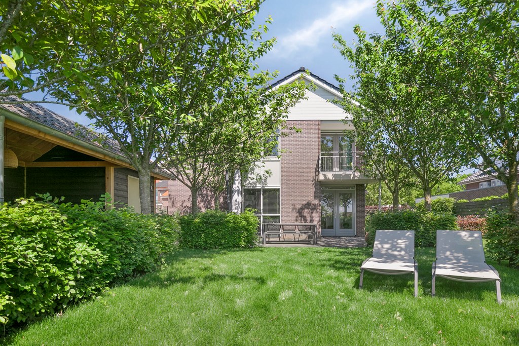 Via de openslaande deuren in de woonkamer stapt u de diepe, groene achtertuin in die grenst aan de Uiterwaarden – het ware hoogtepunt van deze woning. De tuin is fraai aangelegd met een mix van bestrating en groen, en biedt volop ruimte voor een loungeset of een buitentafel. De ligging zorgt ervoor dat u hier optimaal kunt genieten van de zonuren. Achter in de tuin bevindt zich een sfeervolle overkapping (voorzien van internet) waar u ook op minder zonnige dagen heerlijk buiten kunt zitten en/of werken. De tuin biedt veel privacy en vormt een oase van rust.