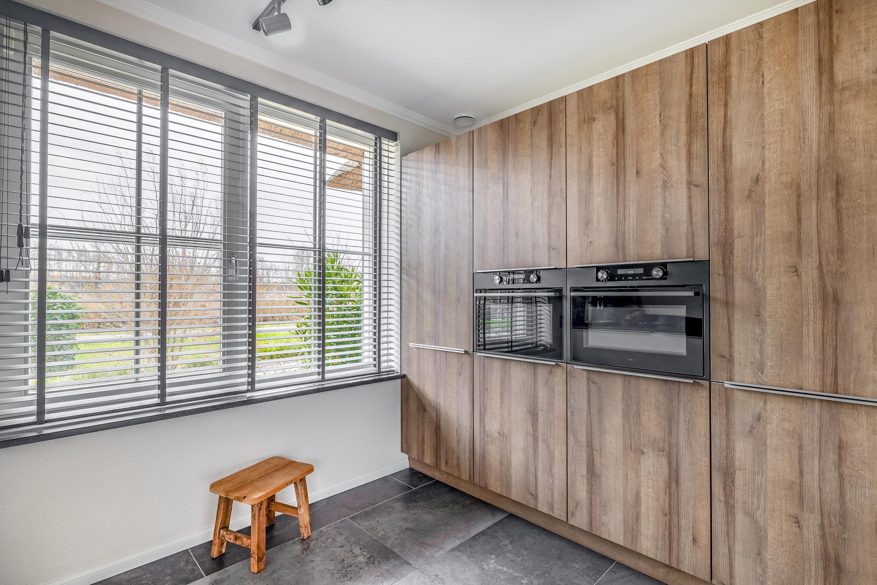 Via de stijlvolle entree kom je binnen in een ruime hal met vernieuwd zwevend toilet en fonteintje. Dubbele deuren leiden naar de zeer royale living, die in 2022 volledig is verbouwd. De leefruimte bestaat uit een luxe woonkeuken, eetkamer en zithoek met erker en openslaande deuren naar het terras. De moderne keuken is van alle gemakken voorzien: een inductiekookplaat met Bora-afzuiging, 2 identieke combi-ovens, grote koelkast en vriezer, vaatwasser, Quooker en een composiet werkblad. In de bijkeuken vind je aansluitingen voor wasmachine en droger en een deur naar buiten. Dankzij de grote raampartijen en de erker met openslaande deuren valt het daglicht rijkelijk binnen. De sfeervolle gashaard en inbouwspots maken het plaatje compleet. Op de begane grond bevindt zich verder een ruime slaapkamer met maatwerkkasten en een luxe badkamer ensuite (2022) met inloopdouche, zwevend toilet, wastafelmeubel en designradiator. Dit maakt gelijkvloers wonen mogelijk zonder in te leveren op comfort.