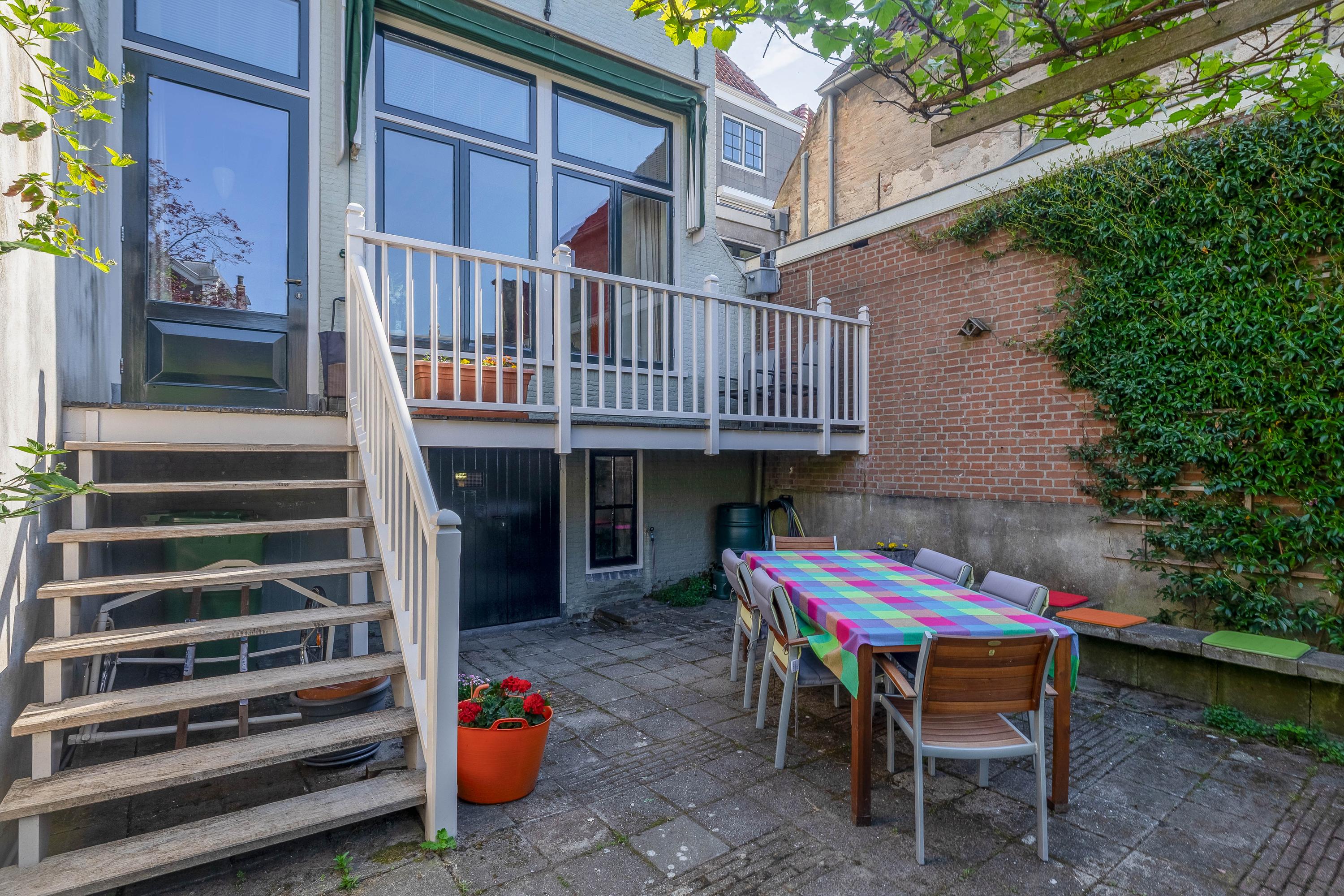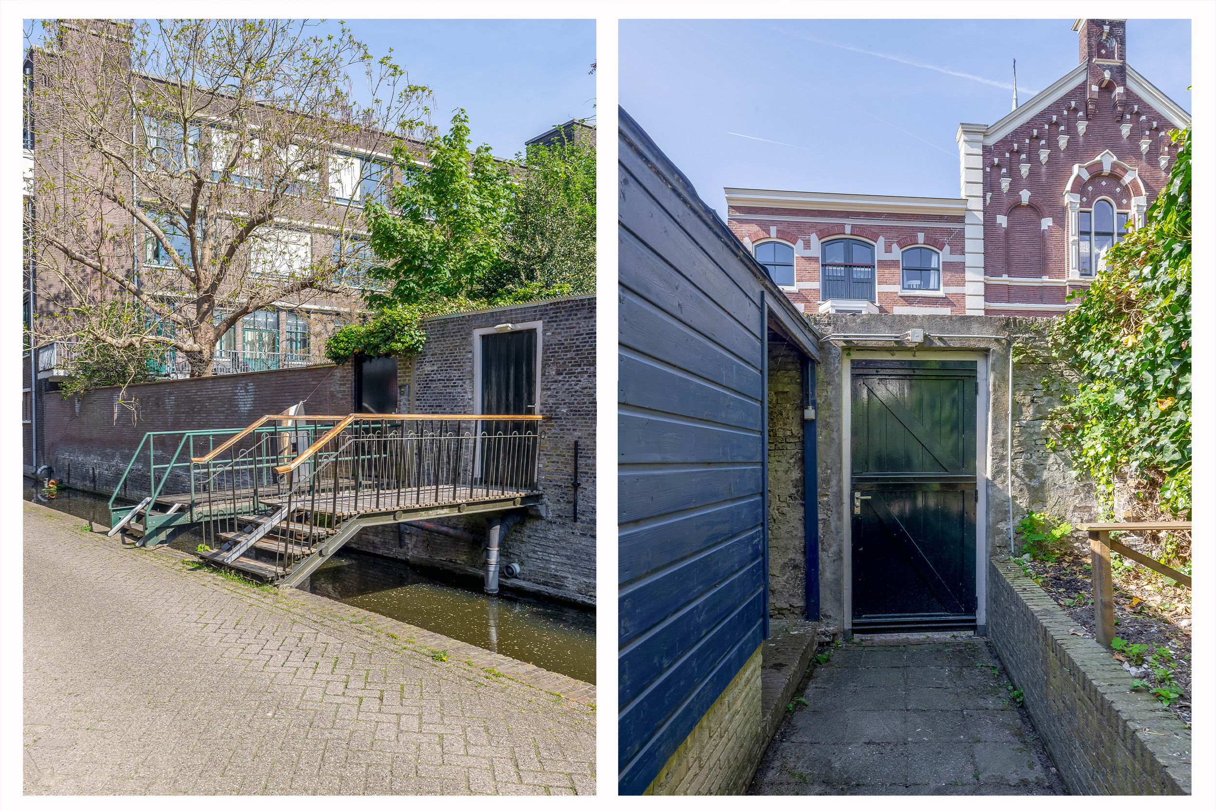 De zonnige en sfeervolle tuin is ruim 25 meter diep en heeft diverse terrassen, toegang tot de kelder, een schuur achter in de tuin, een houten toegangsbrug aan achterzijde vanuit de Peperstraat en een gerenoveerde stadsmuur. Vanuit de tuin, maar ook vanuit het huis heeft u fantastisch uitzicht over monumentaal Gouda.