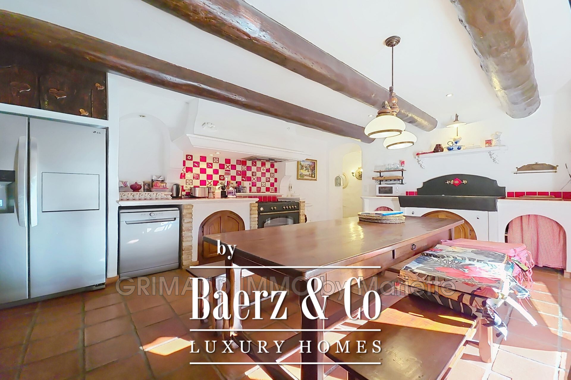 Charming detached house of approximately 360 m² built in 2008, located in the peaceful town of Grimaud and divided into two separate units. Perfect for a family or as a rental property. The first section includes a living room with an open, fully equipped kitchen, two bedrooms, and two bathrooms. The second section features a living room, an independent fully equipped kitchen, a TV lounge, three bedrooms, and three bathrooms. The single-level layout ensures easy movement throughout.