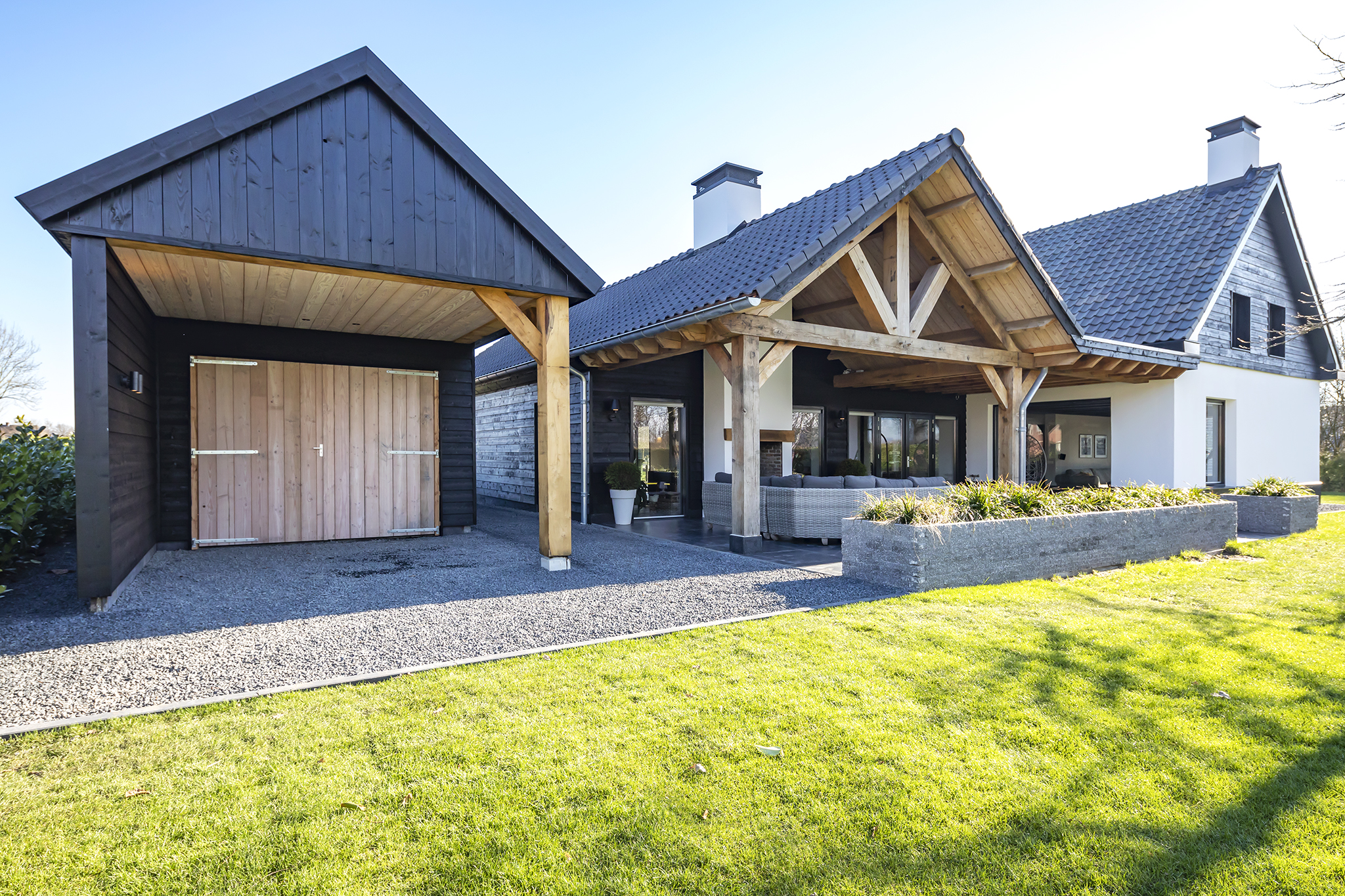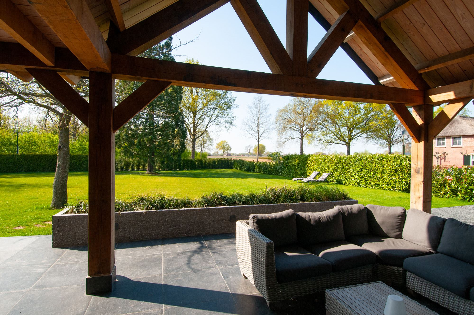 - Bijzonder fraaie overkapping grenzend aan de achtergevel van de woning
