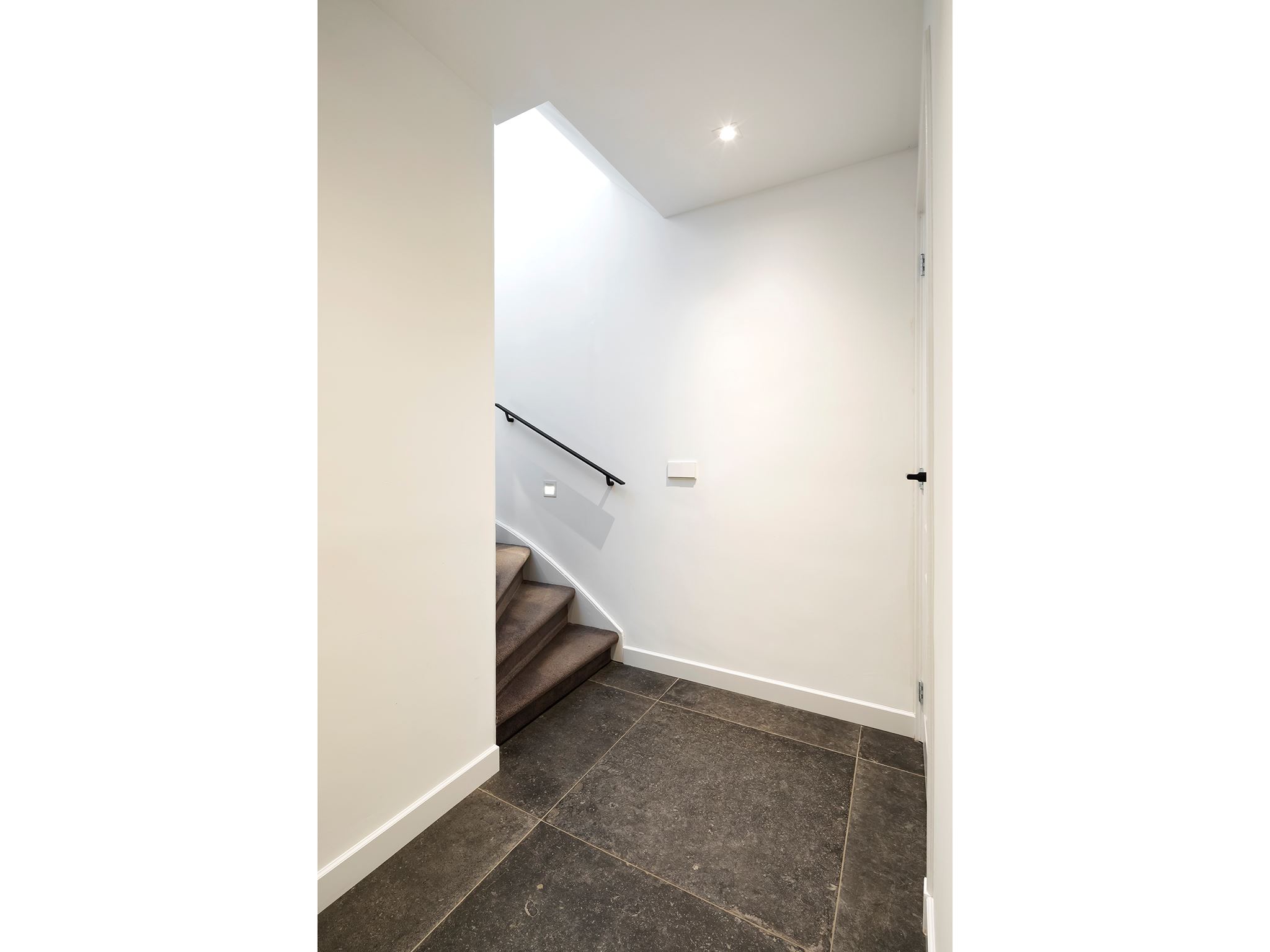 Een tweede toilet op de parterre bevindt zich bij de achterdeur en de vaste trap naar de kelder.