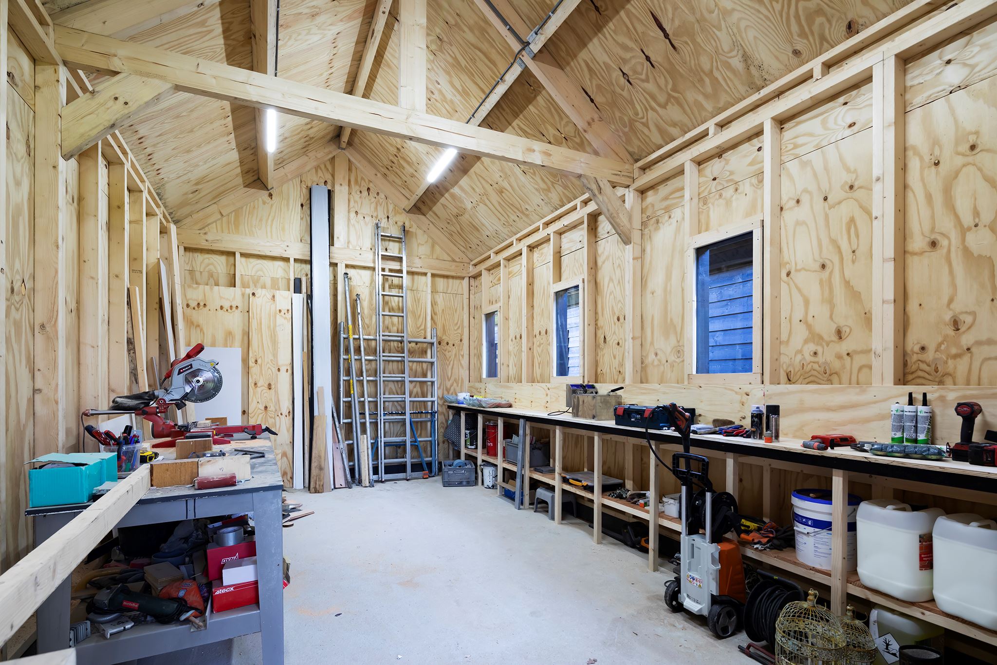 Naast de woning bevindt zich een ruime berging van ca. 28 m2 groot met dubbele deuren. Een fantastische hobbyruimte, hier kun je je wel uitleven als je van klussen houdt. Je kunt hier eventueel ook je auto stallen. Aan de voorzijde van de woning is een brede carport waar je ook je auto’s kunt parkeren.
