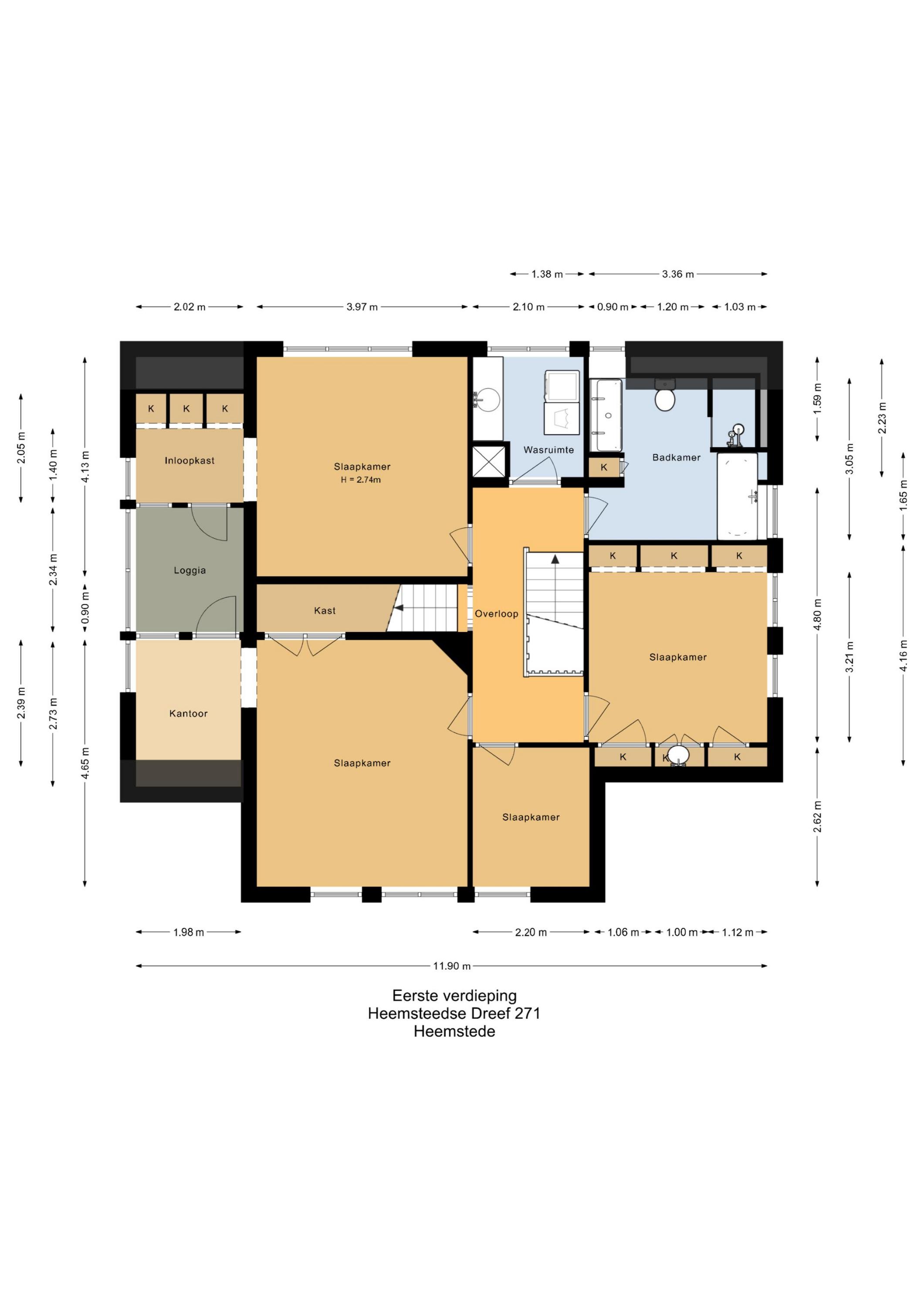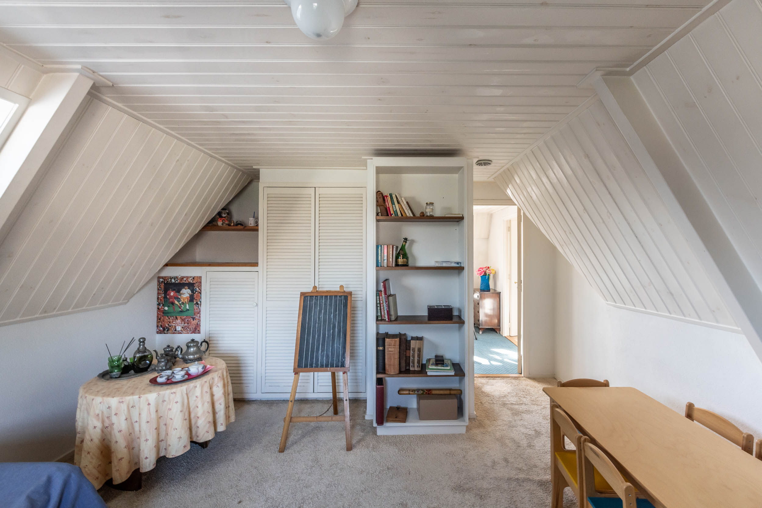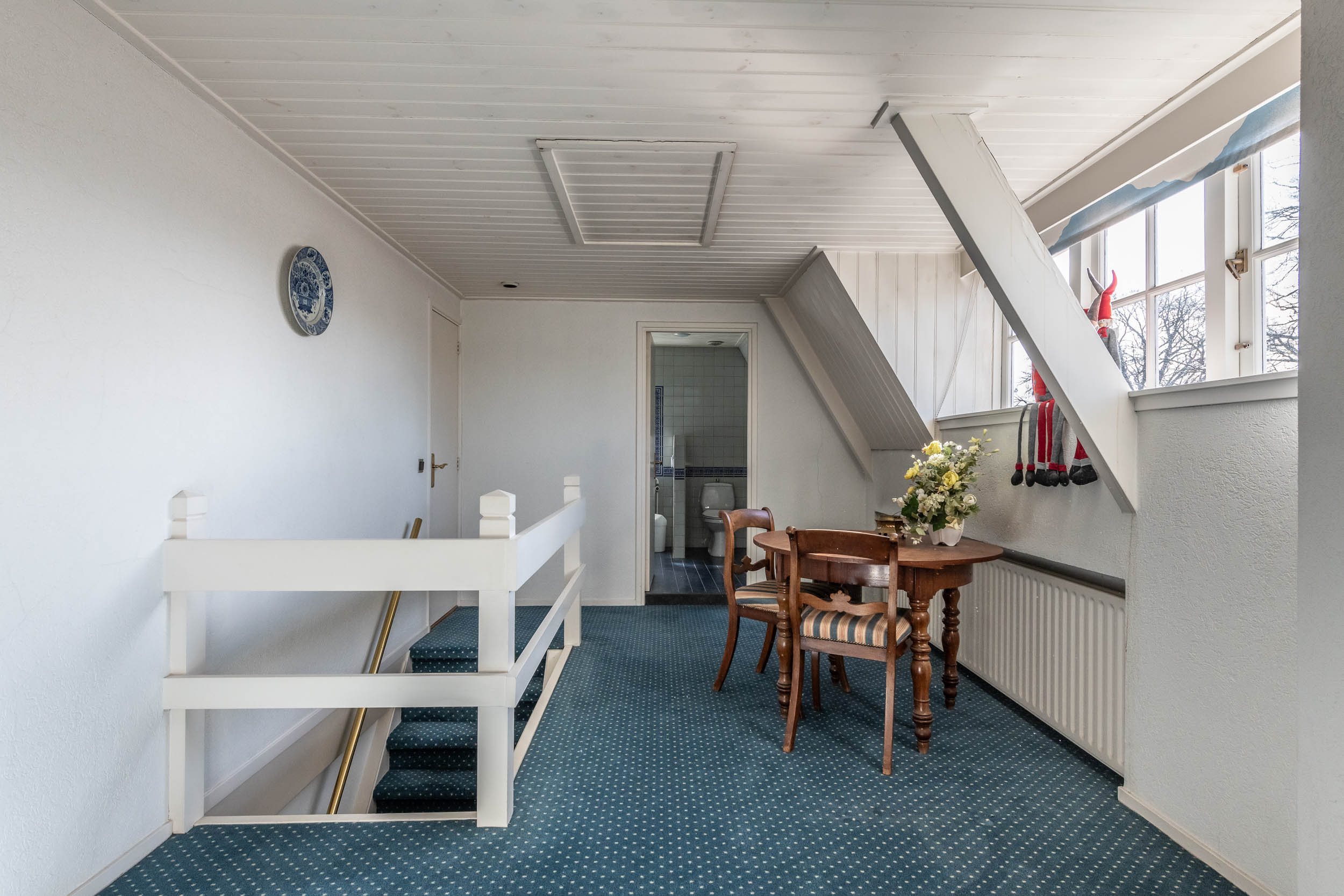 De overloop beschikt over een grote dakkapel. Op deze verdieping liggen twee slaapkamers, beide voorzien van een dakraam en vaste kasten. Via de overloop is een ruime berging te bereiken met de boileropstelling. Op deze verdieping bevindt zich ook een 2e badkamer met inloopdouche, wc en wastafelmeubel met dubbele wastafels. Via een vlizotrap is de ruime vliering met stahoogte te bereiken.