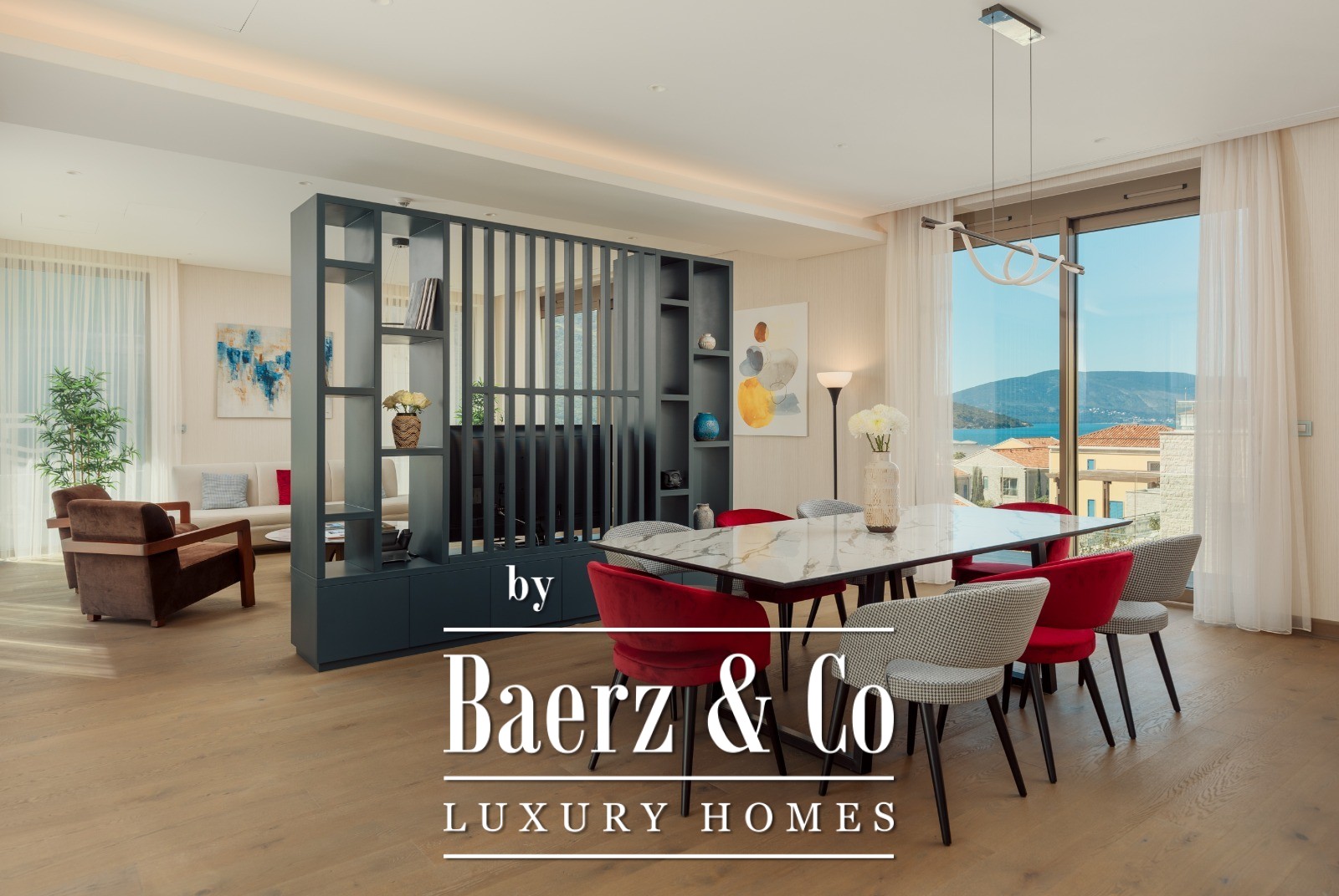 Villa Herceg Novi biedt een zeldzame combinatie van ruimte en ligging, op slechts 50 meter van de Adriatische kustlijn. De villa beslaat 611 m² en bevindt zich op de eerste verdieping van een rustig residentieel gebouw met vier niveaus. Royale terrassen bieden panoramische vergezichten op zee, jachthaven en bergen, waardoor de woning een sfeer van rust en licht ademt. De locatie ligt zeven kilometer van het historische stadscentrum, nabij luchthaven Tivat en op directe loopafstand van restaurants, winkels en de jachthaven.