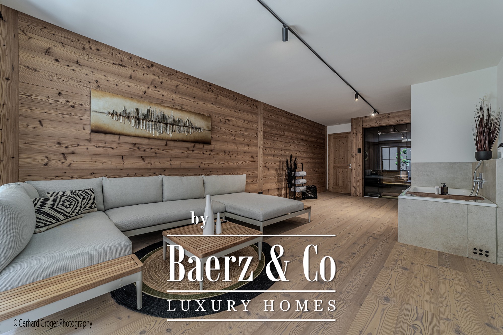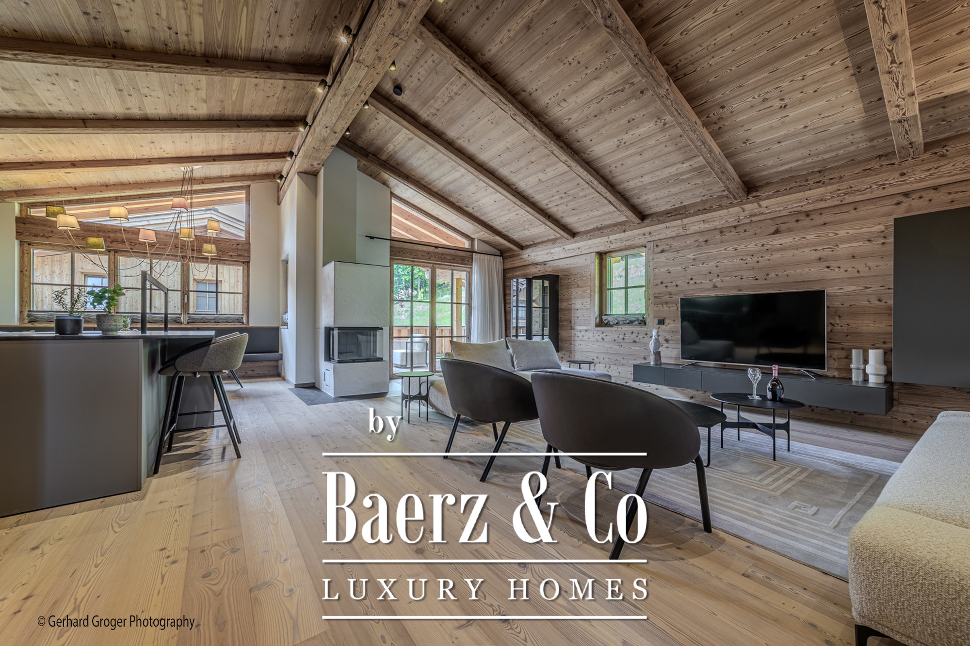 Het interieur combineert hoogwaardige lariksvloeren met keramische tegels, vloerverwarming en een luxe ingerichte keuken. Doordachte voorzieningen als een lift, gecontroleerde ventilatie, een BUS-systeem, ondergrondse parkeergarage en ruime berging maken het dagelijks wonen bijzonder aangenaam. De ligging op loopafstand van het centrum van Kirchberg en het KitzSki-gebied verenigt de levendigheid van het dorpsleven met de rust van het berglandschap.