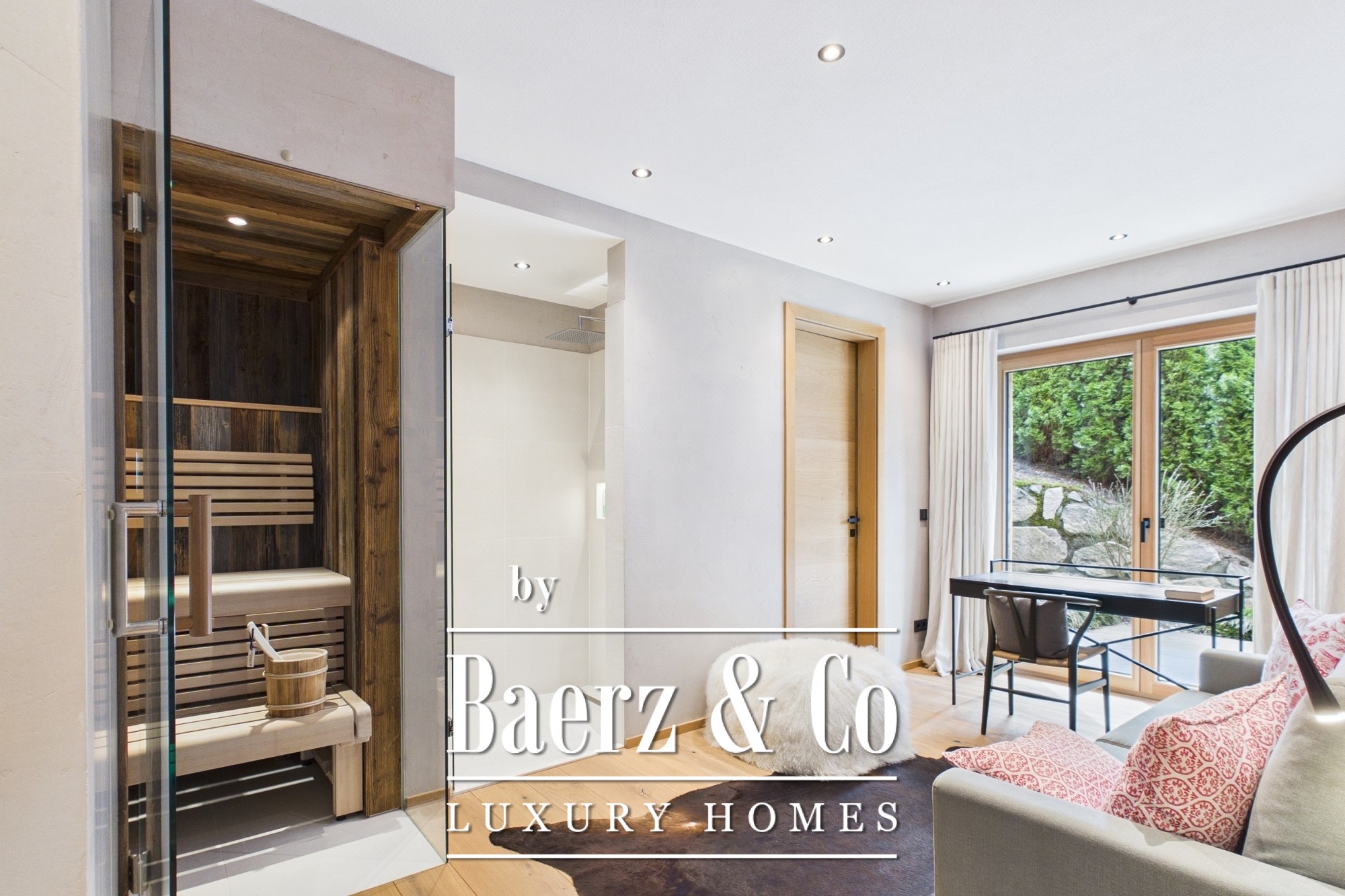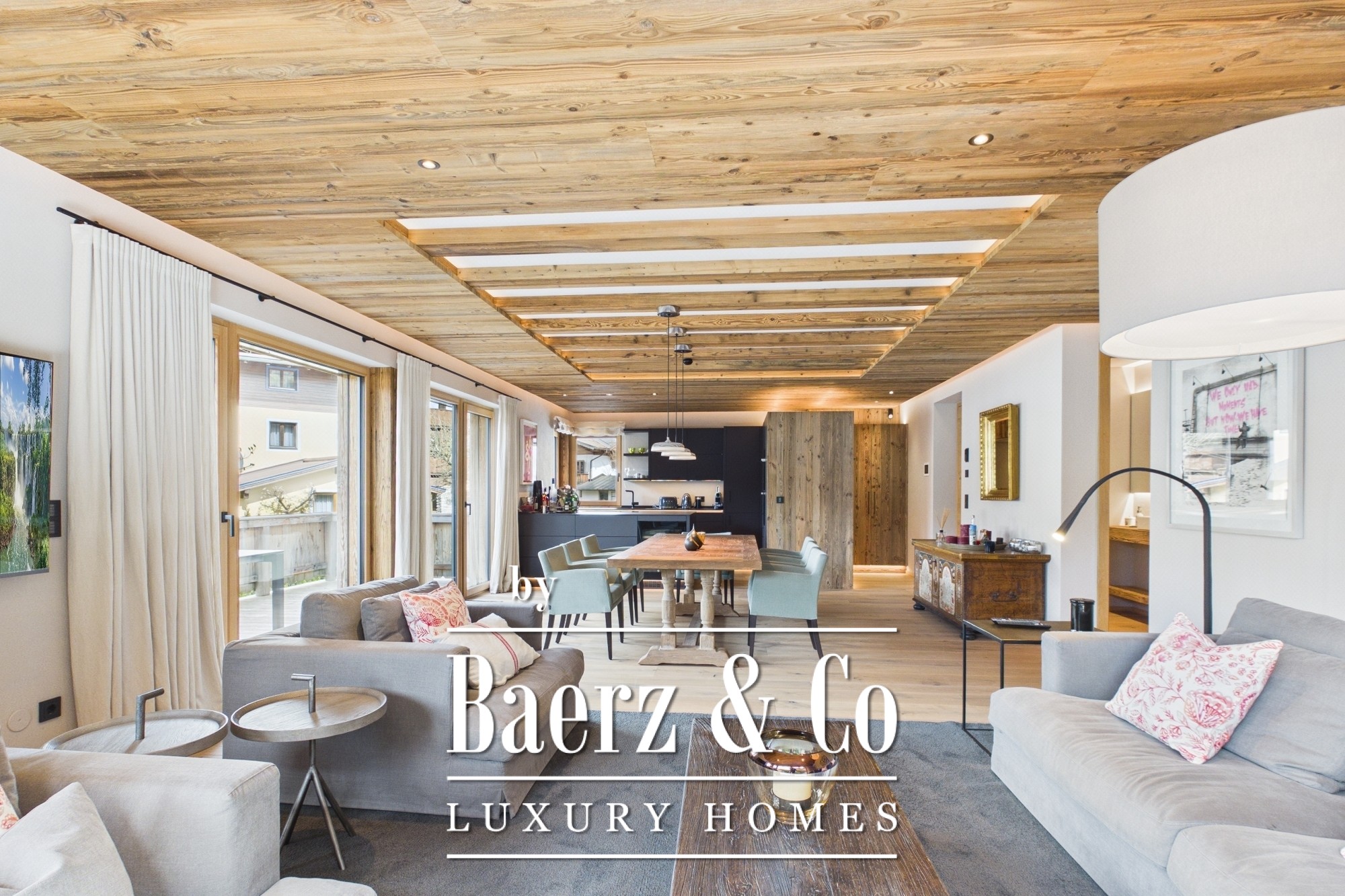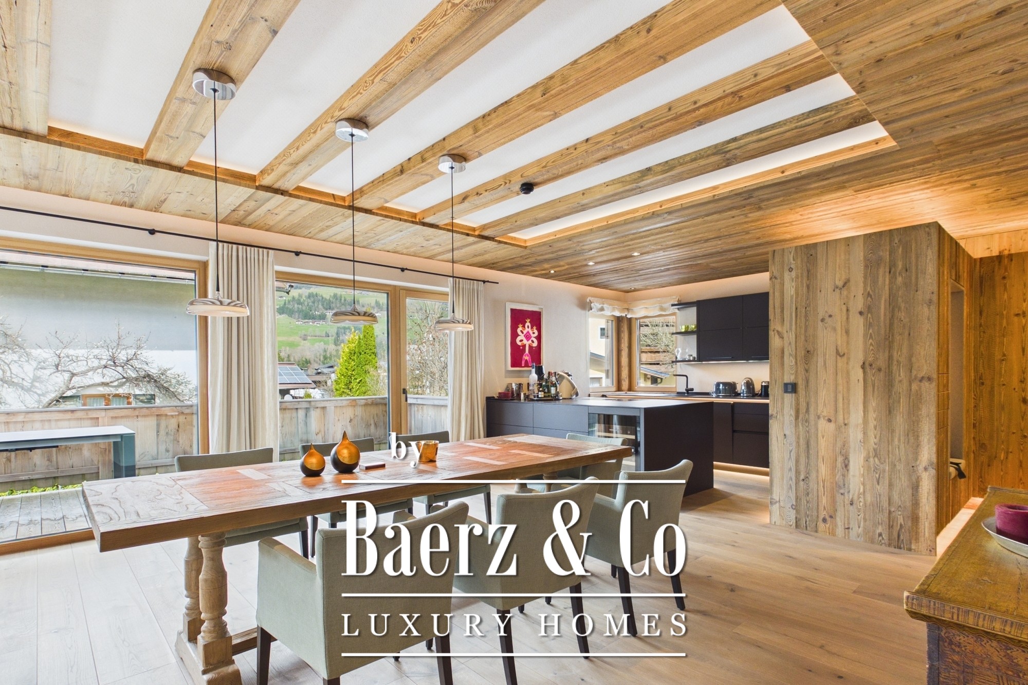 Apartment Kirchberg in Tirol biedt een verfijnde woonbeleving aan het einde van een rustige doodlopende straat, iets hoger gelegen met directe nabijheid van de skipistes en het dorpscentrum. Deze woning beschikt over een royale woonoppervlakte van 135 m², met drie kamers elk voorzien van een en-suite badkamer, waarvan twee ingericht als slaapkamer en een grote wellnessruimte compleet met sauna. De open leef-, eet- en keukenruimte vormt het sociale hart van het appartement en kenmerkt zich door plafonds van gerecycled hout en een op maat gemaakte keuken uitgerust met Miele-apparatuur.