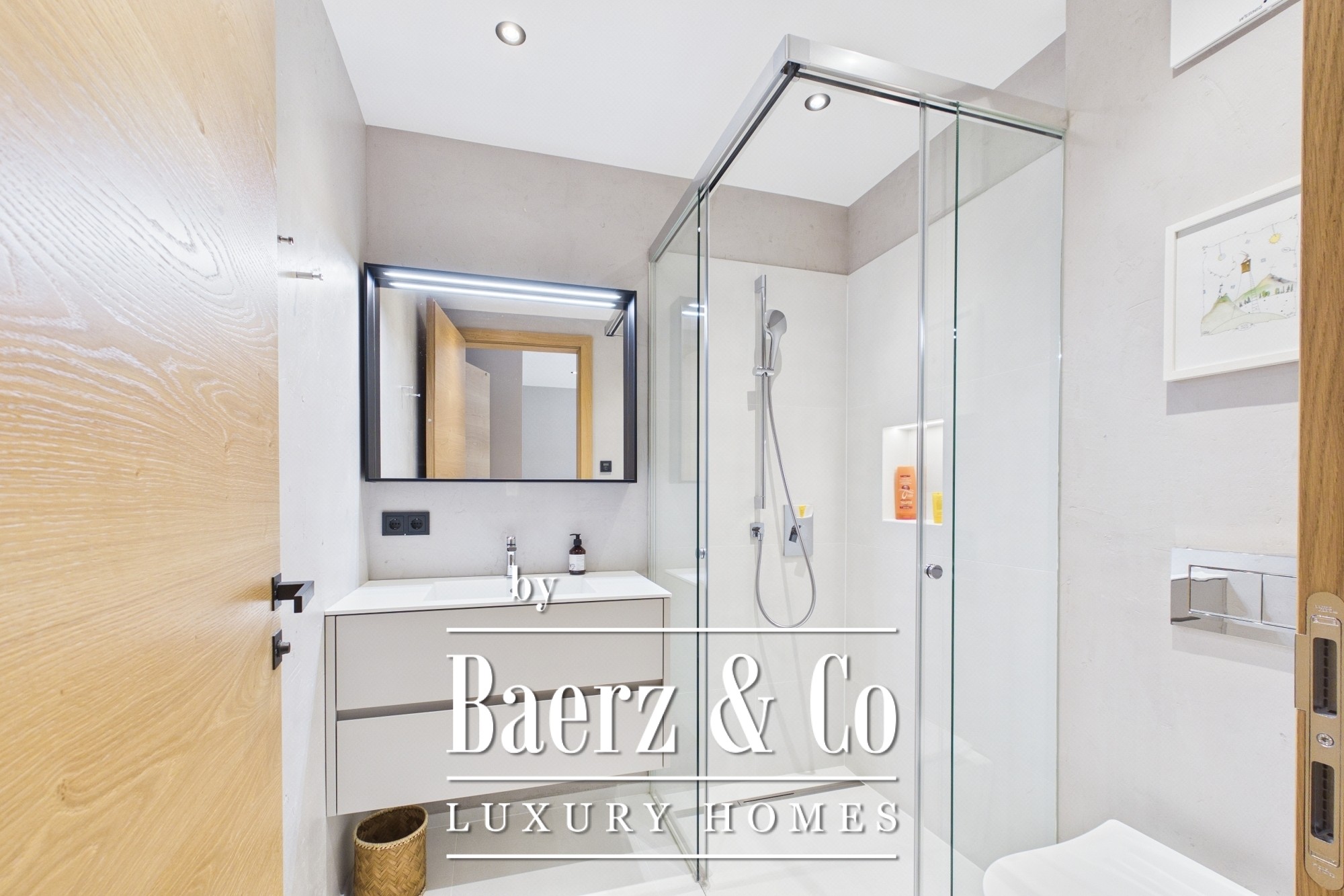 Ruim opgezette buitenruimtes maken integraal deel uit van het ontwerp, met circa 95 m² aan terrassen, balkons en aangelegde zones die uitnodigen tot rust en reflectie. De leefomgeving wordt verhoogd door doordachte voorzieningen zoals een open haard, vloerverwarming, smart home-systeem, elektrische zonwering en een geïntegreerd alarmsysteem. Bovendien beschikt het appartement over een overdekte parkeerplaats met oplaadmogelijkheid voor elektrische voertuigen, een buitenparkeerplaats en een berging van 8,5 m² die is ingericht voor wintersportrusting en wasfaciliteiten.