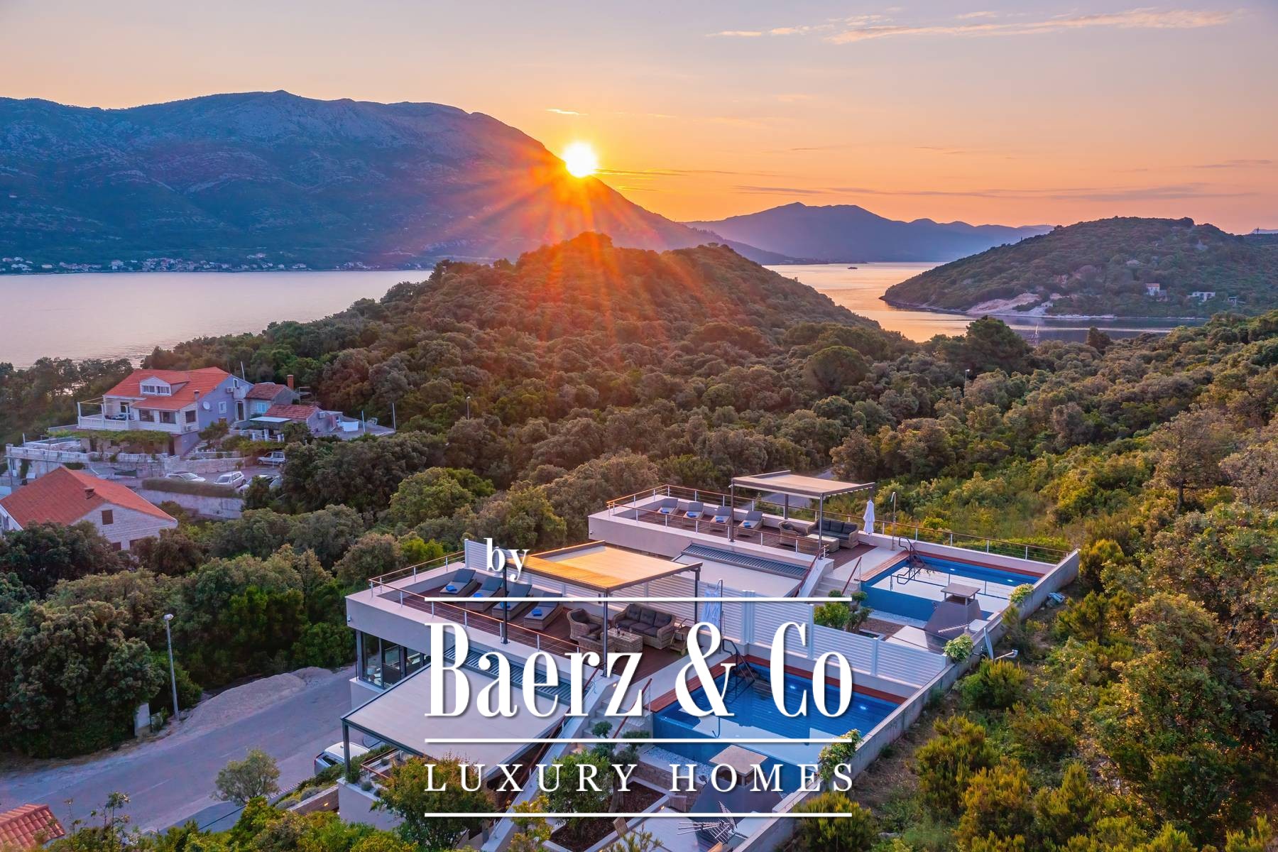 De villa is verdeeld over drie verdiepingen plus een aangelegde daktuin en beschikt over drie slaapkamers en drie badkamers, allen gericht op het onbelemmerde uitzicht over zee. De begane grond is ingericht voor ontspanning, fitness en wellness en beschikt over een sauna en een volledig uitgeruste wasruimte. Het hoofdverblijf bevindt zich op de tweede verdieping en opent naar zowel binnen- als buiteneetruimtes met zicht over het Pelješka-kanaal. Het houten terras sluit sereen aan op een hydromassagebad voor zes personen en een lounge in de openlucht, terwijl het dakterras een privé verwarmd zoutwaterzwembad, een open haard en mediterrane beplanting biedt.