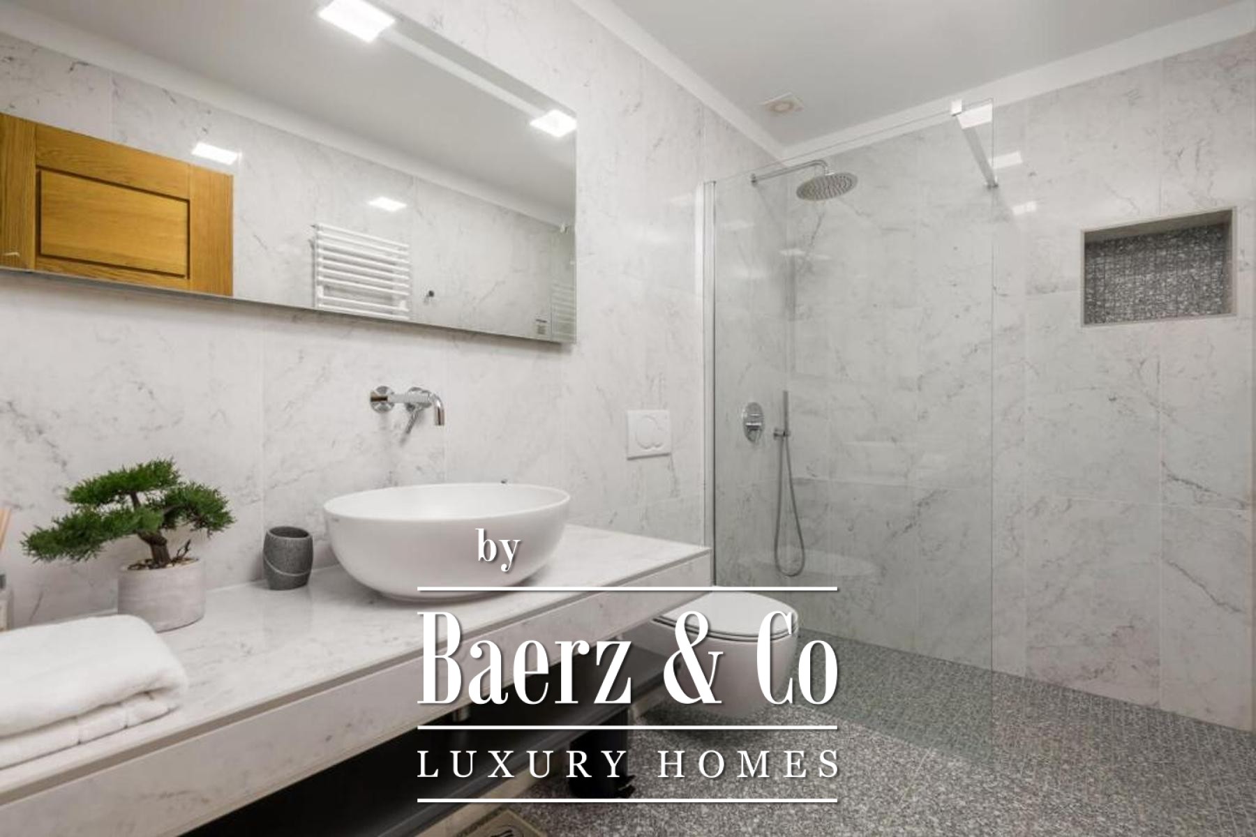 Op de eerste verdieping bevindt zich een stijlvolle driekamerappartement, waar licht door de royale terrassen naar binnen stroomt en het blikveld richting het heldere zeezicht leidt. In de hoge zolder vinden twee slaapkamers met eigen badkamer aansluiting bij een elegante leefruimte met toegang tot een beschouwend dakterras.