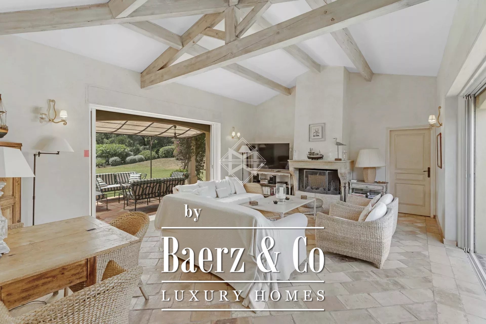 Bij aankomst valt de ingetogen sfeer van de royale, lichtovergoten vertrekken direct op. Hoge plafonds versterken het ruimtegevoel, terwijl de woonkamer en eetruimte in kathedraalstijl, verwarmd door een houtgestookte open haard en omlijst met zichtbare balken, uitnodigen tot rust en gezelligheid. De keuken grenst direct aan een grote, overdekte terrass, waardoor binnen en buiten naadloos in elkaar overvloeien en de tuin met uitzicht op de heuvels van Gigaro een ideale setting biedt voor ontspannen samenzijn.
