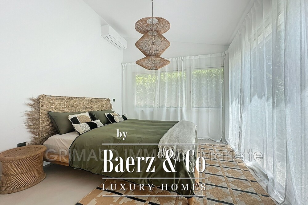 De villa beschikt over vijf slaapkamers, waaronder een doordachte master suite, waarvan meerdere kamers rustgevend uitkijken op het zwembad. Op de verdieping bevindt zich een retraite met een eigen Tropeziaans terras en zichtbare balken. De woning is in 2025 volledig gerenoveerd, waarbij hedendaagse afwerkingen zijn gecombineerd met tijdloze materialen. Overdekte en open terrassen zorgen voor een vloeiende overgang tussen binnen en buiten en omlijsten het vrij gevormde verwarmde zwembad en de jacuzzi.
