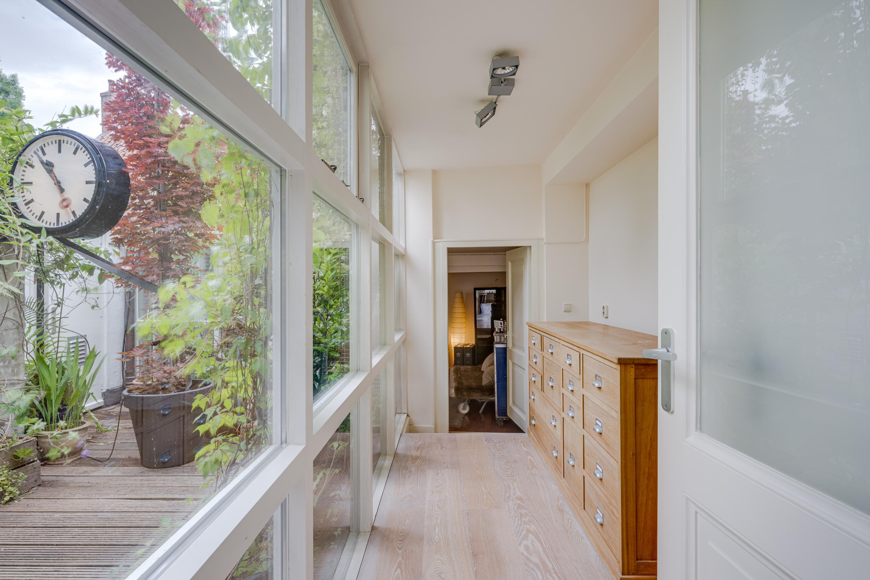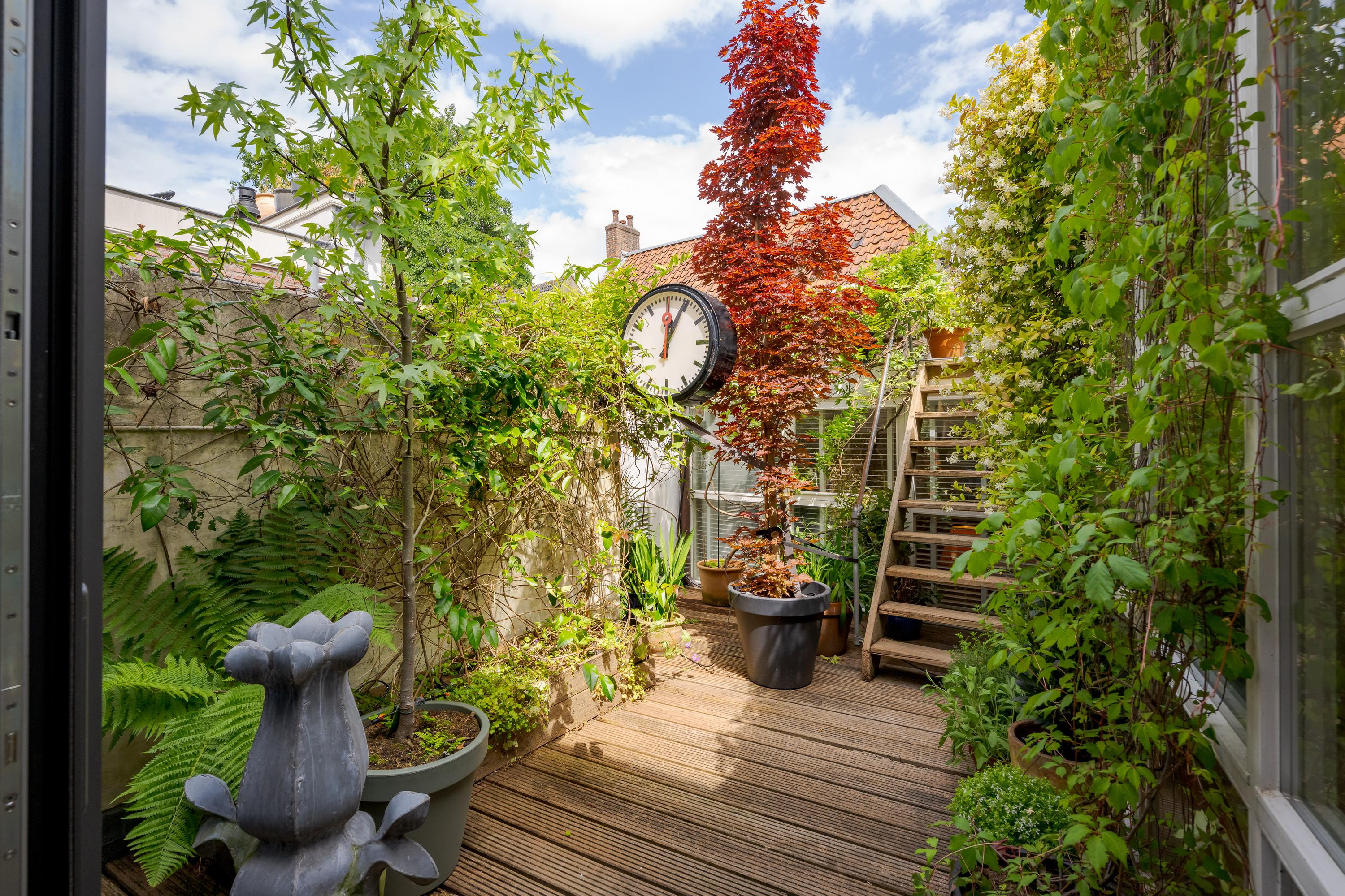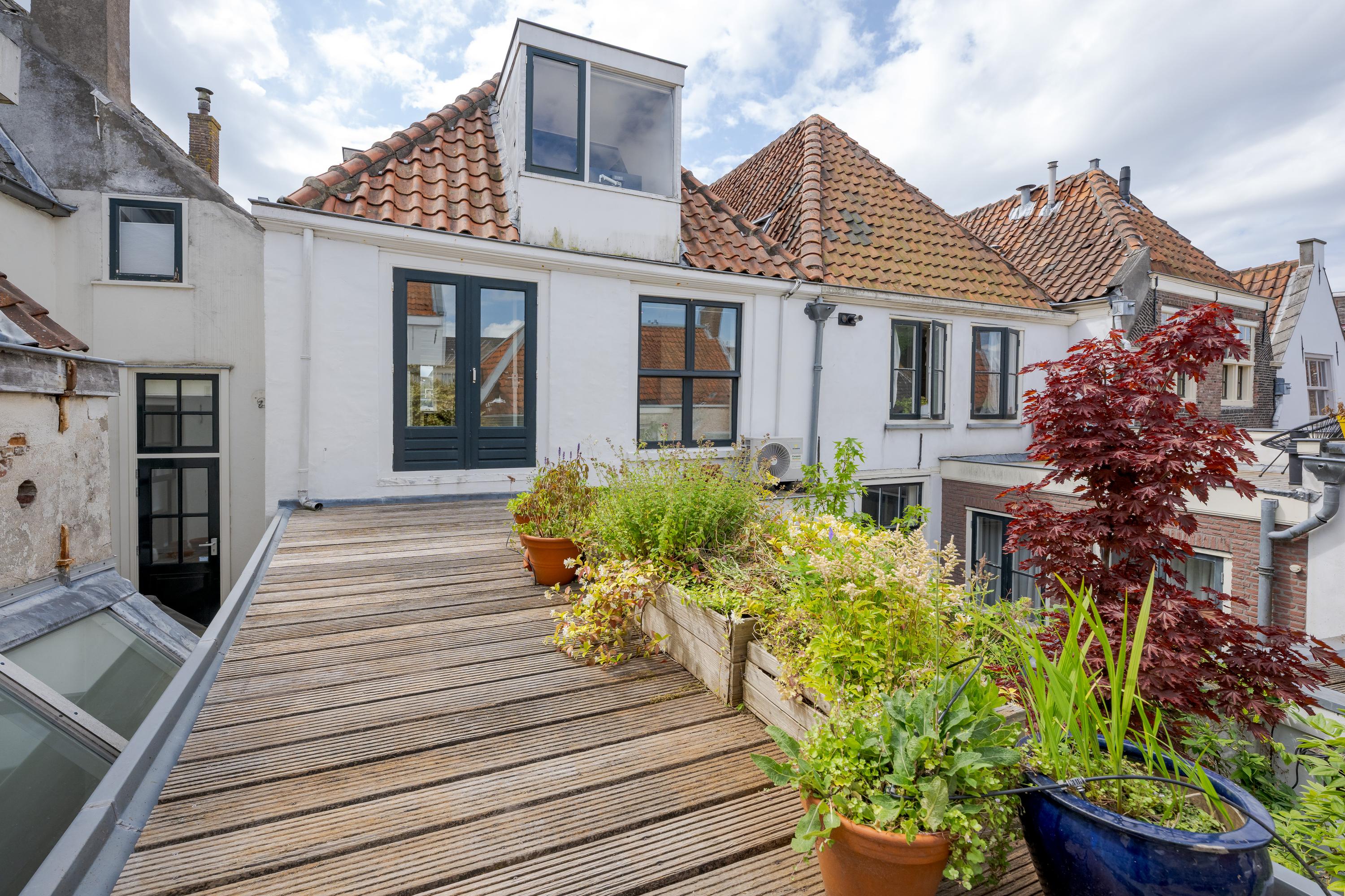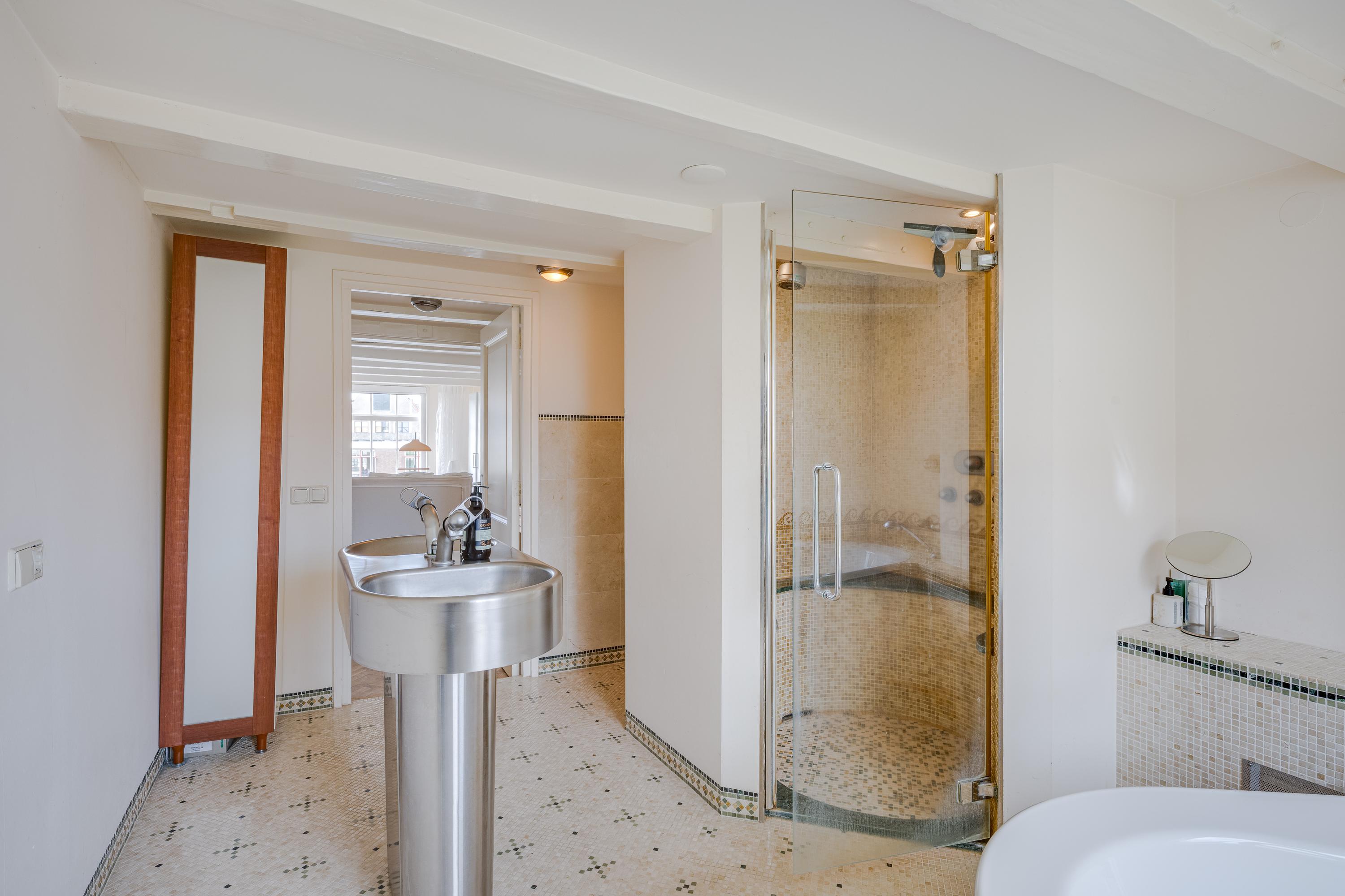 Wat dit pand verder uniek maakt, is de bijzondere combinatie van een statige, klassieke gevel aan de grachtzijde (drie ramen breed op het zuiden) en een verrassend royale achterzijde van ruim negen meter breed. Op de eerste verdieping, in het hart van de woning, ligt een kleurrijke binnentuin en een tiental treden hoger een riant en zonnig dakterras met volop privacy en meerdere zitplekken.