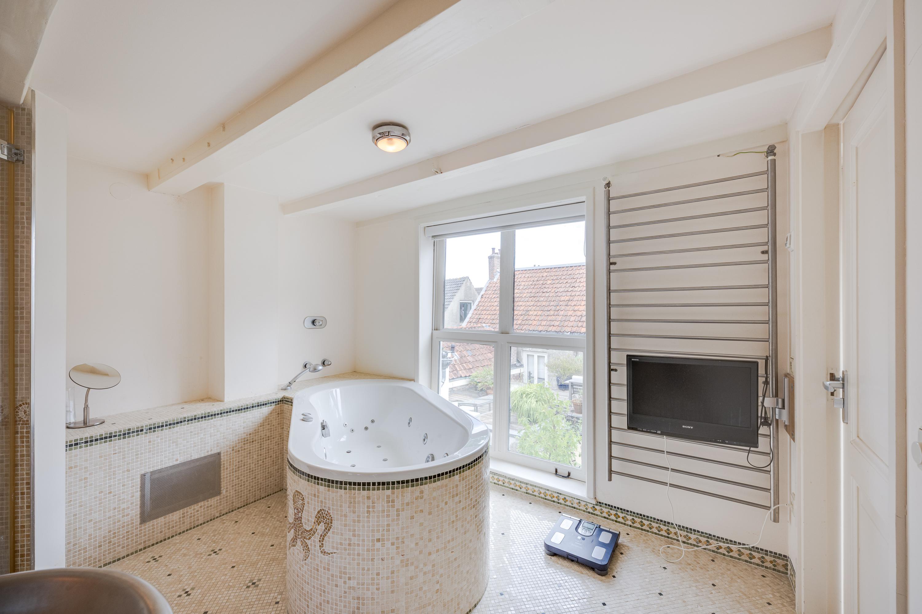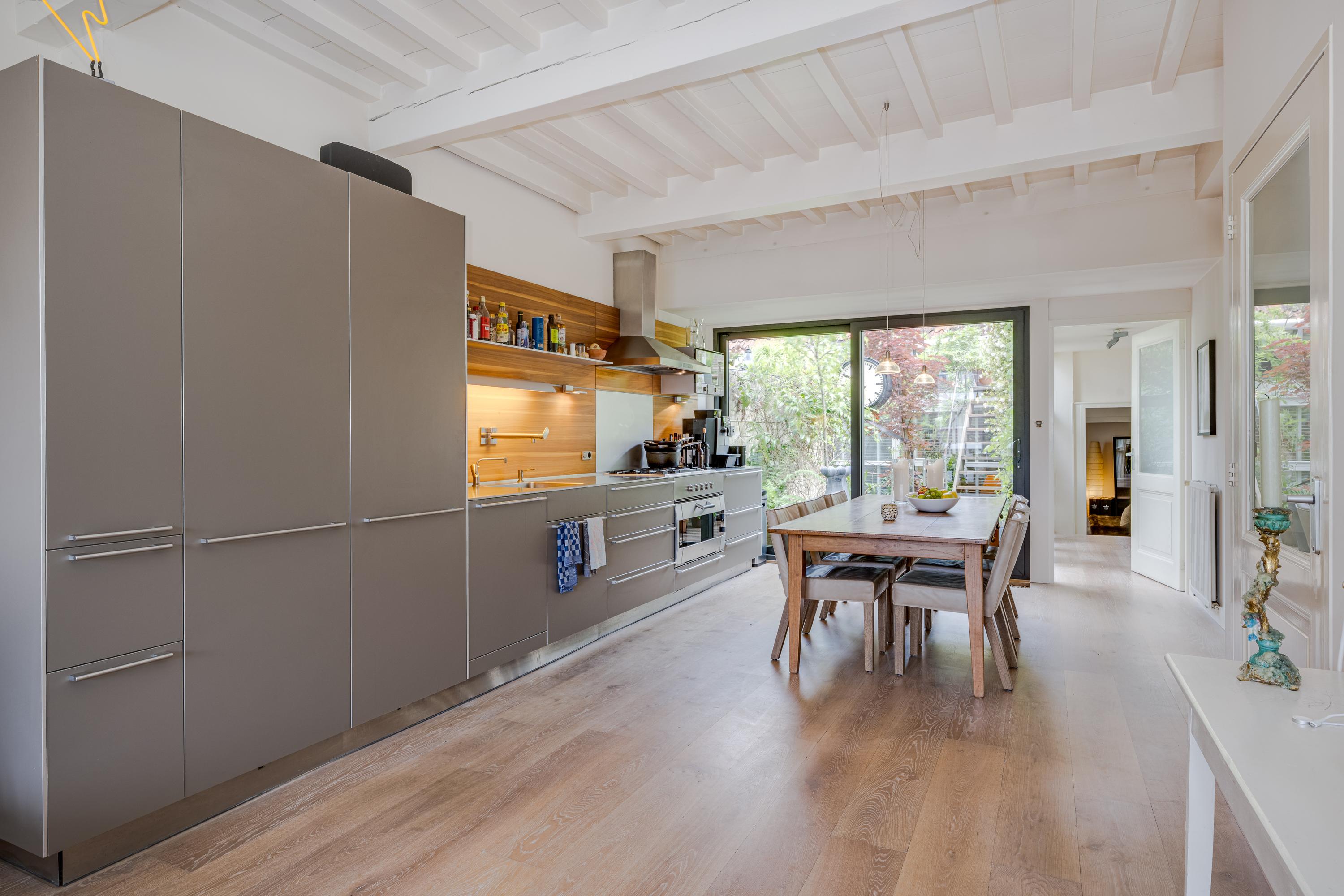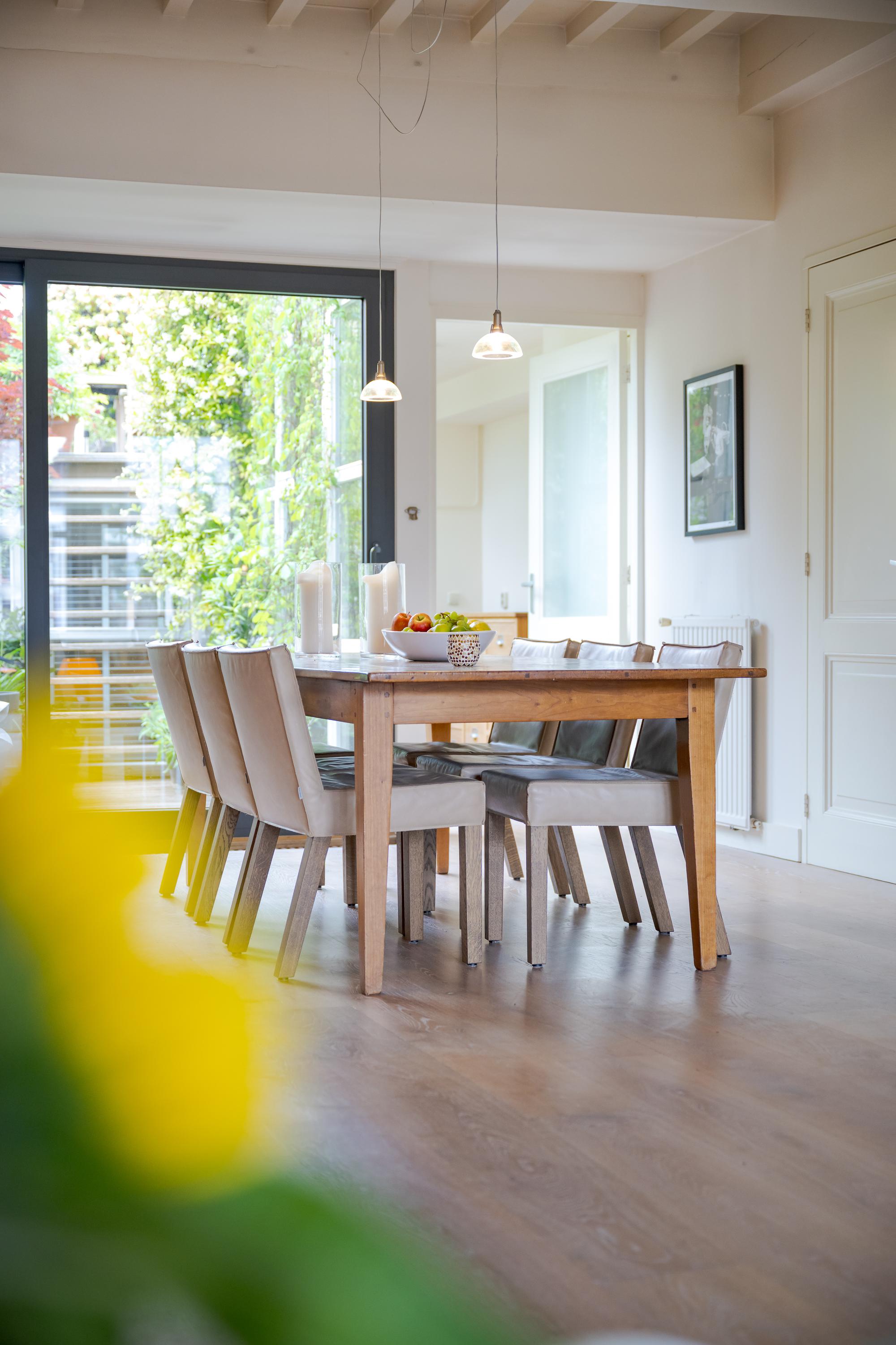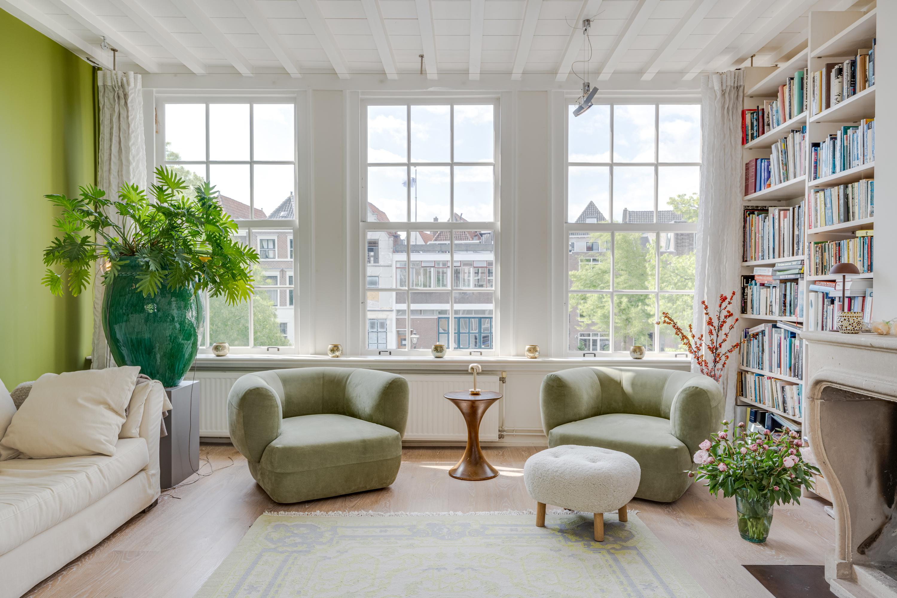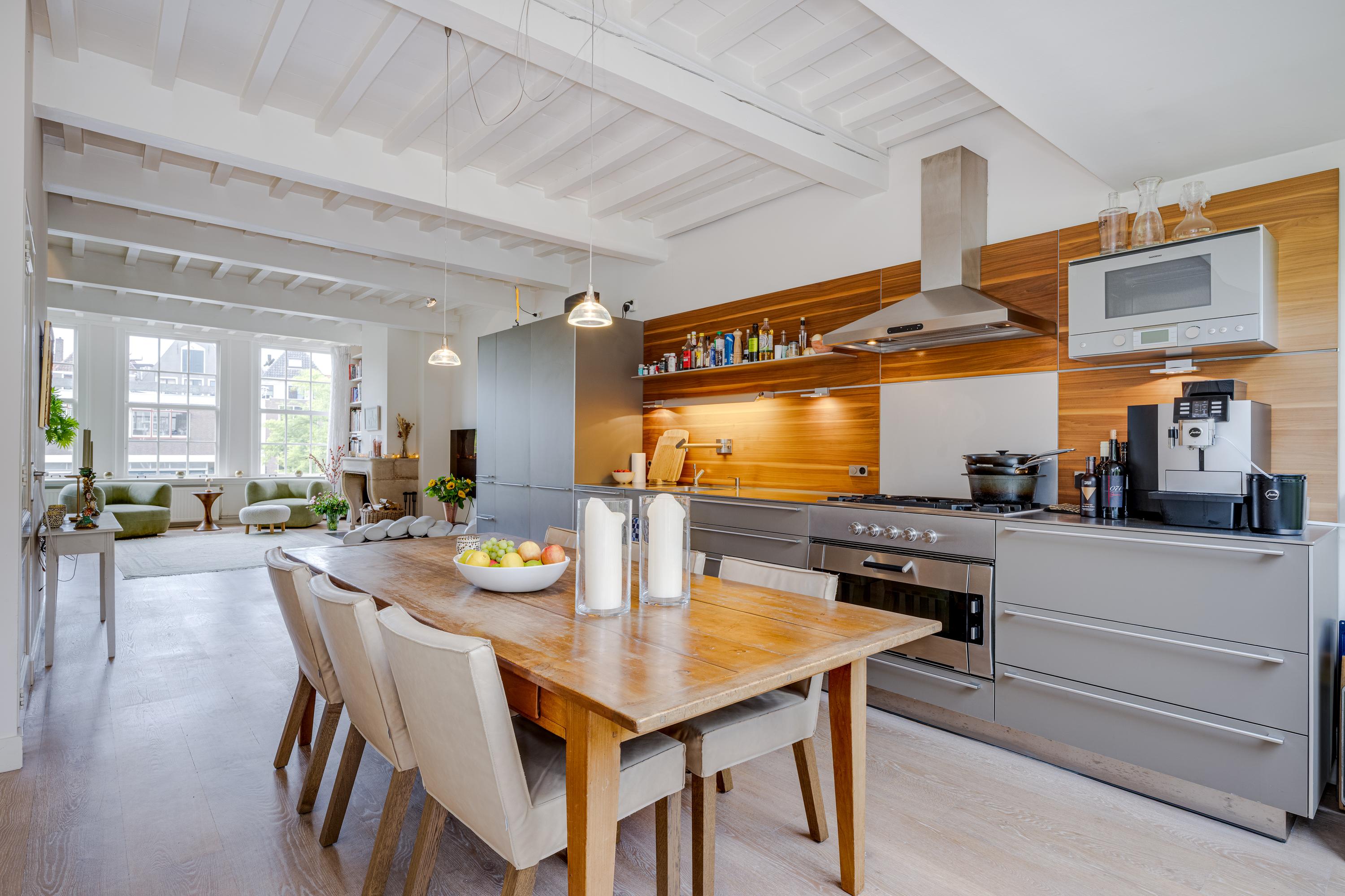 Wat dit pand verder uniek maakt, is de bijzondere combinatie van een statige, klassieke gevel aan de grachtzijde (drie ramen breed op het zuiden) en een verrassend royale achterzijde van ruim negen meter breed. Op de eerste verdieping, in het hart van de woning, ligt een kleurrijke binnentuin en een tiental treden hoger een riant en zonnig dakterras met volop privacy en meerdere zitplekken.
