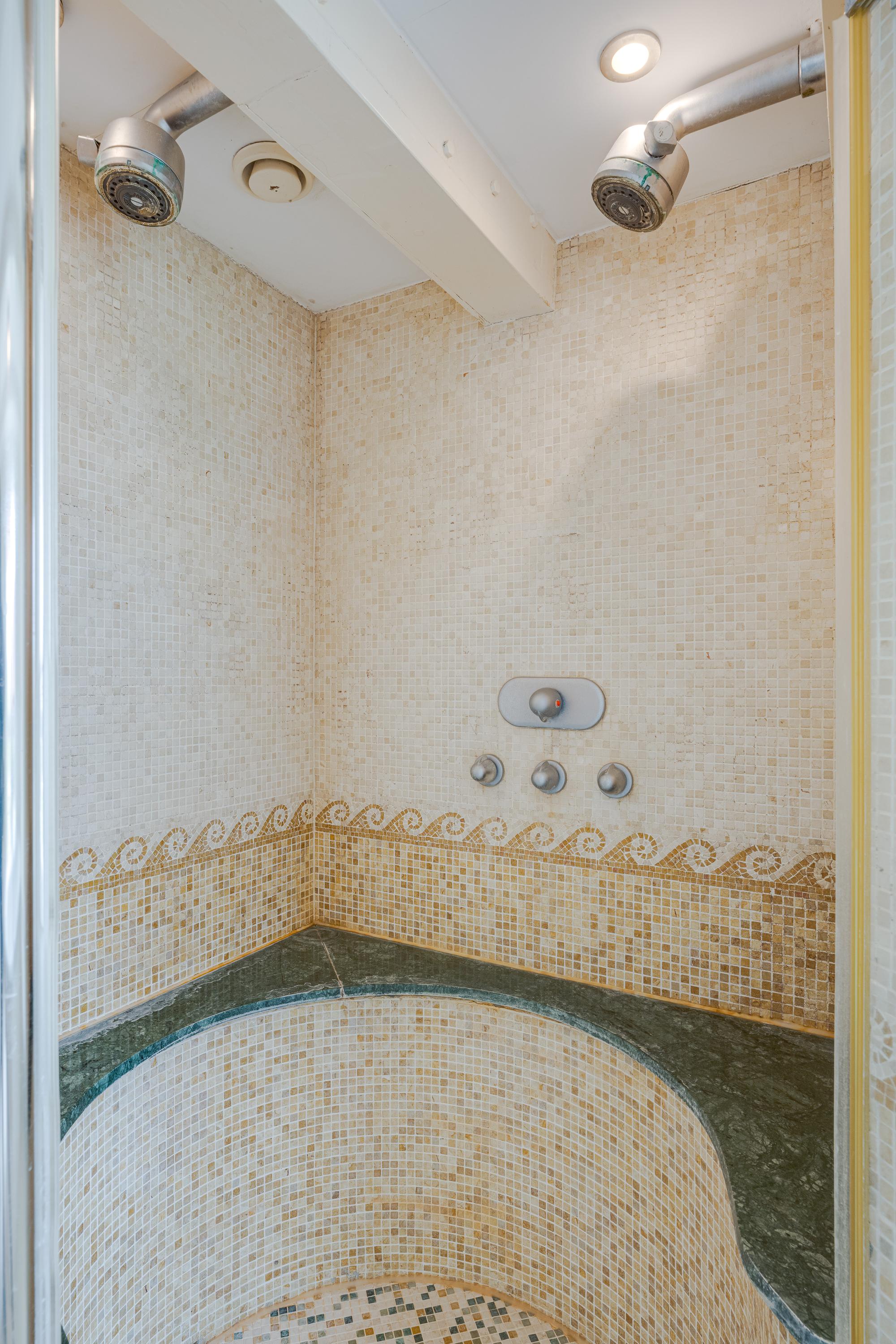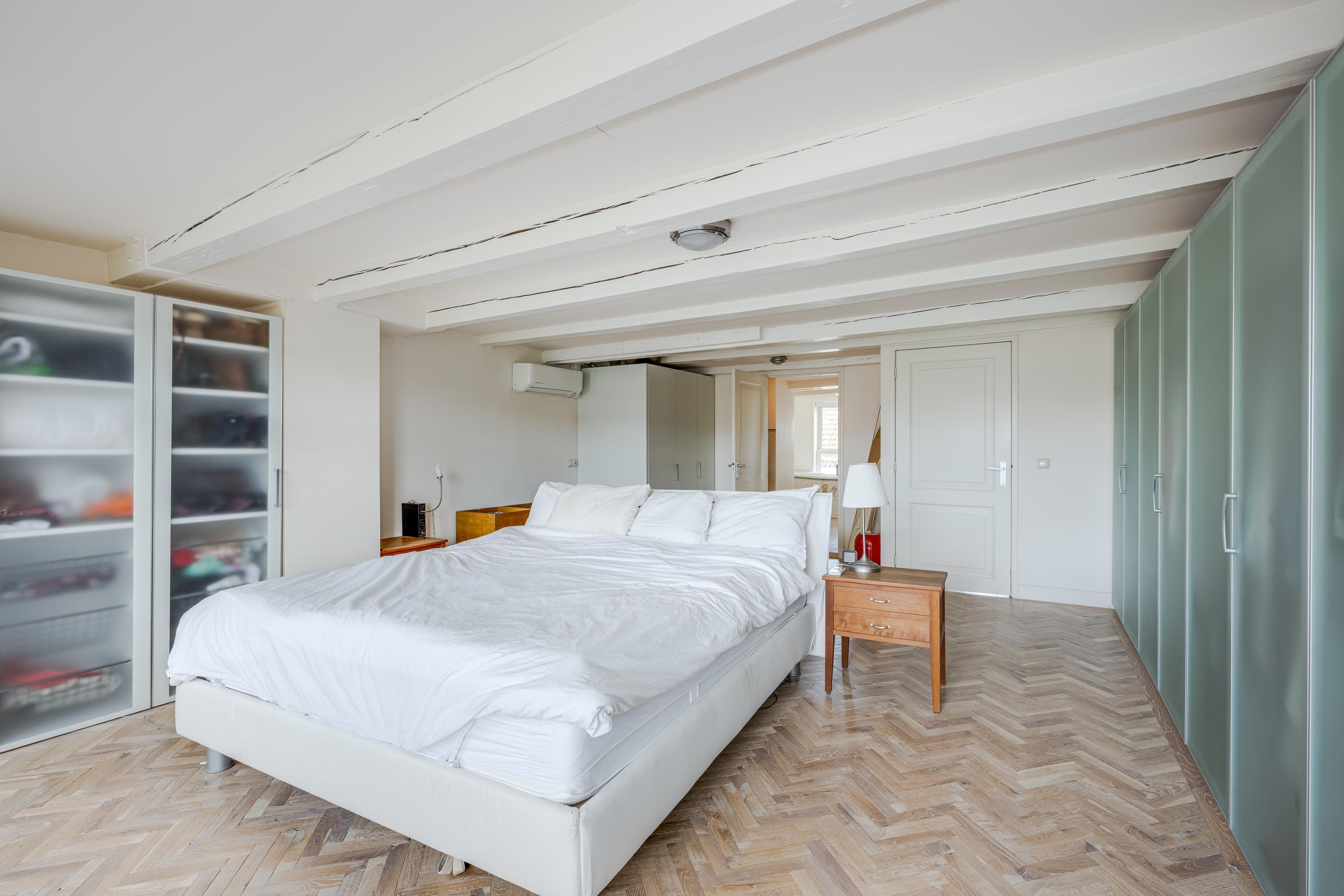 Zeer ruime ouderslaapkamer met badkamer en suite voorzien van ligbad met jacuzzi, dubbele douche, toilet en dubbele wastafel. Openslaande deuren naar het grote dakterras dat verdeeld is over meerdere niveaus: een zonnige en besloten plek met diverse zitmogelijkheden.