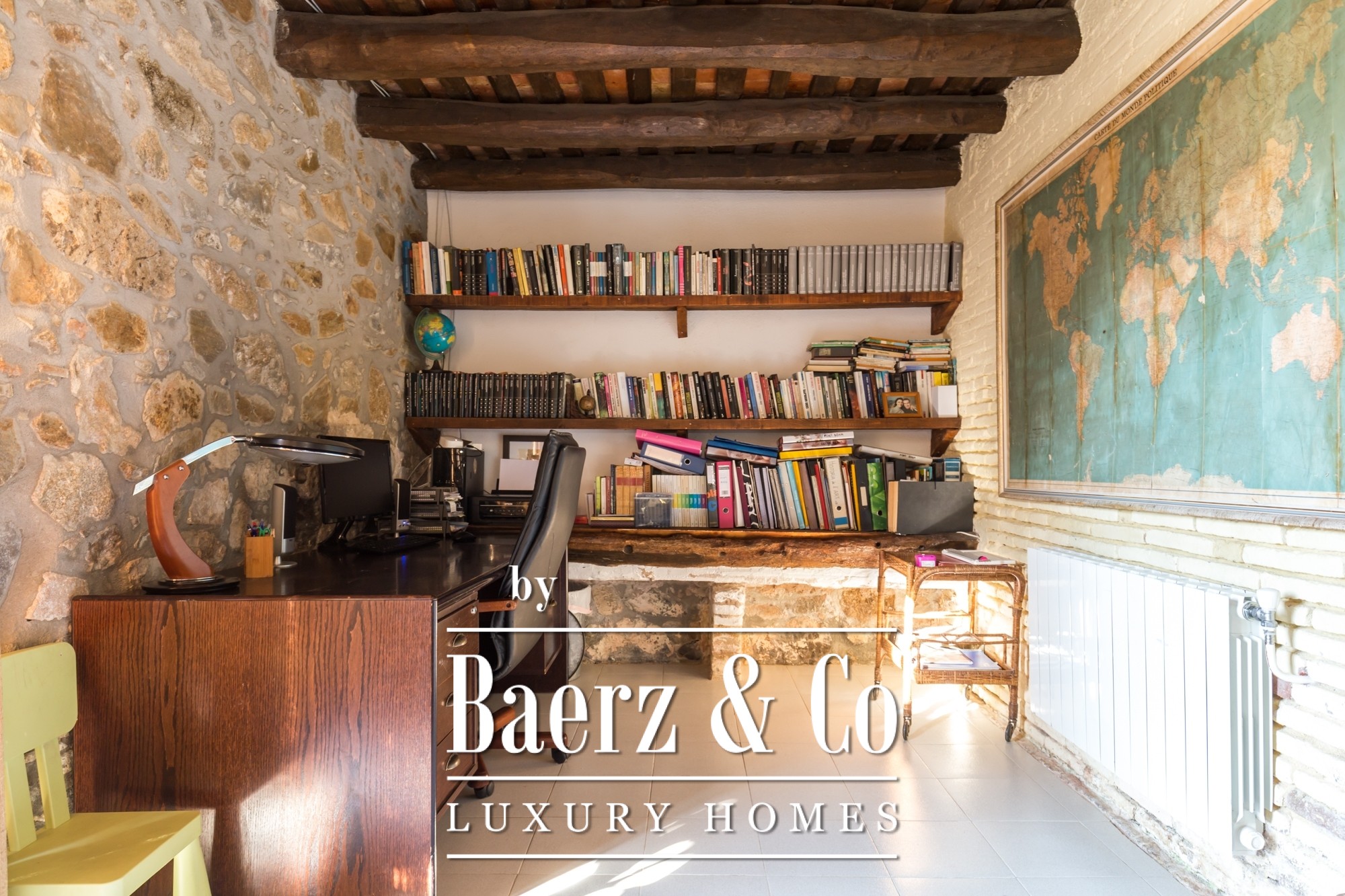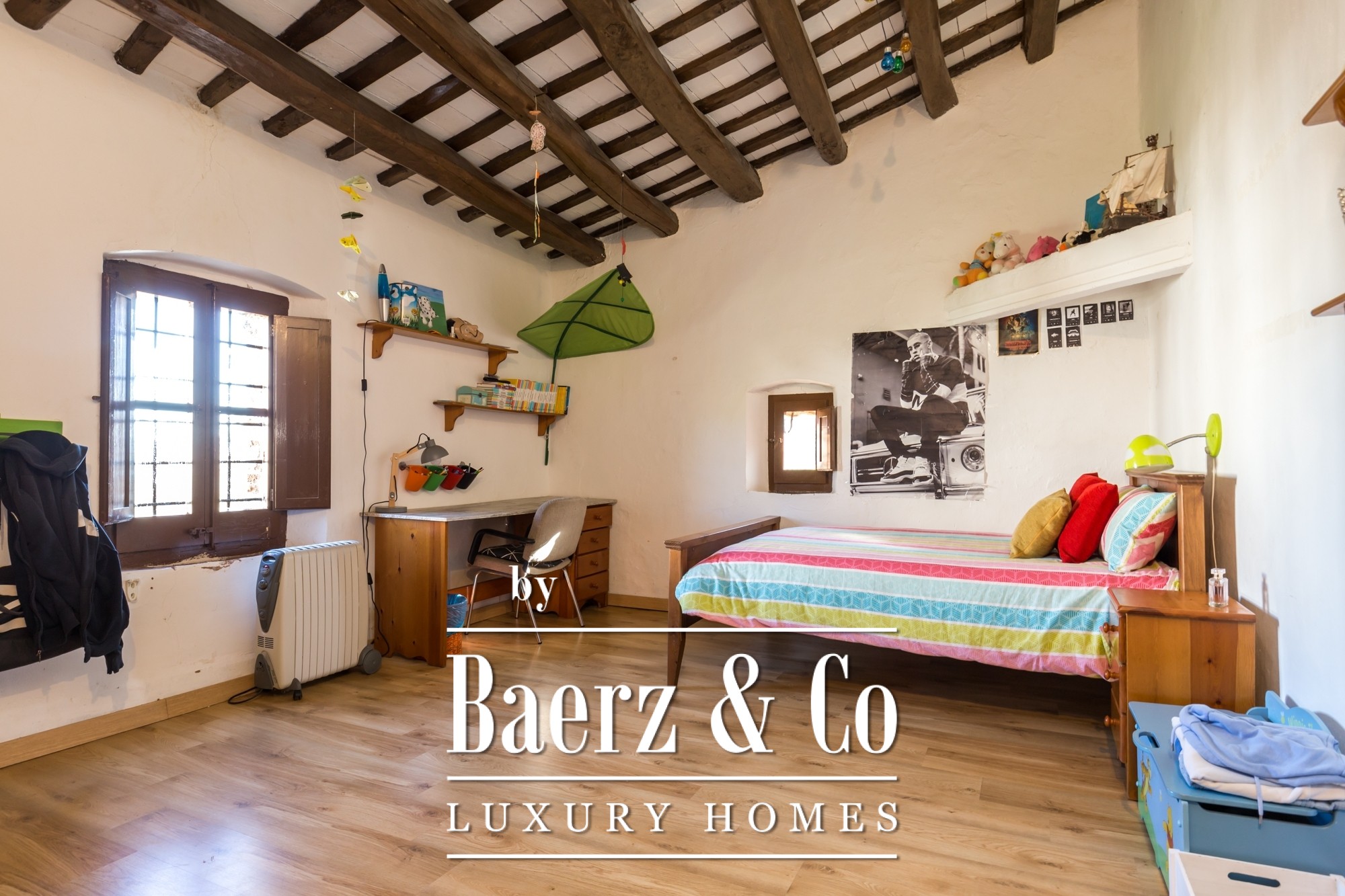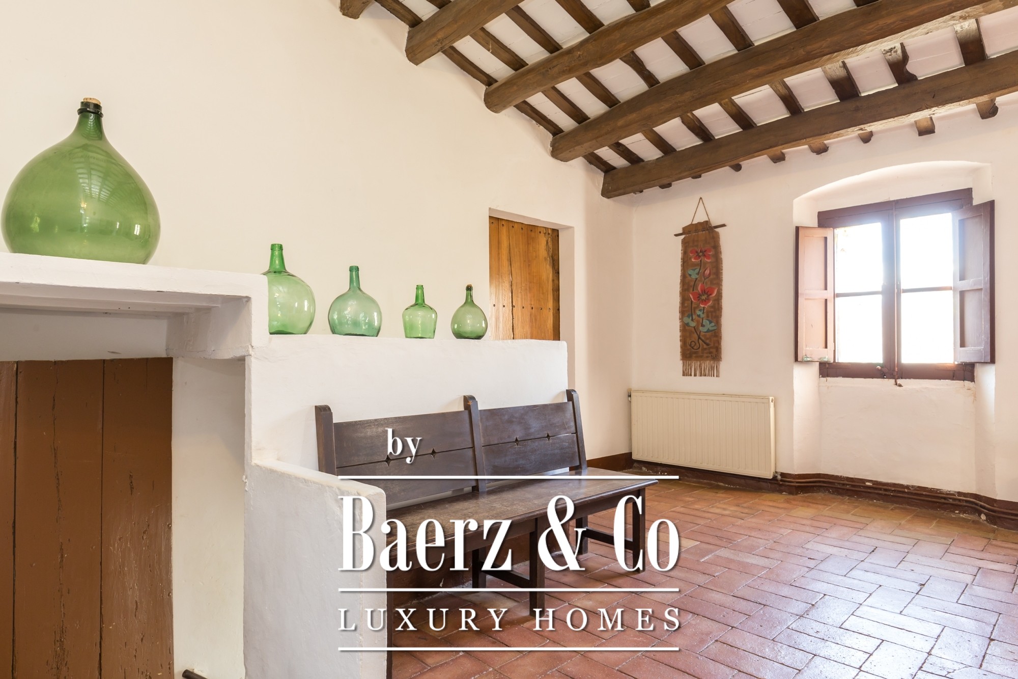 De hoofdwoning beschikt over zeven slaapkamers en vier badkamers. Boven bieden de suites privéterrassen met weids uitzicht. Hoge plafonds, lichte ruimtes en authentieke bouwdetails onderstrepen het historische karakter. Er zijn twee woon- en eetkamers, een royale leefkeuken en een kantoor-bibliotheek aansluitend op een beschutte privétuin. Ruime opslagmogelijkheden en bijgebouwen zorgen voor praktische flexibiliteit.