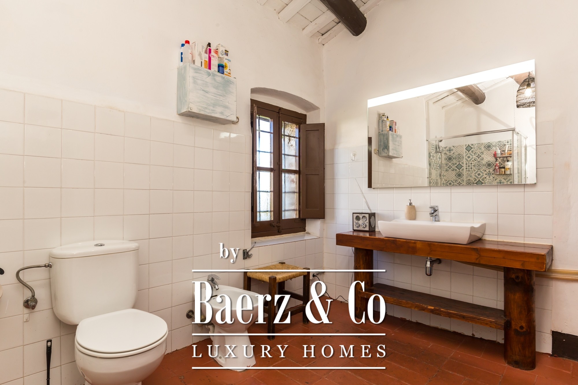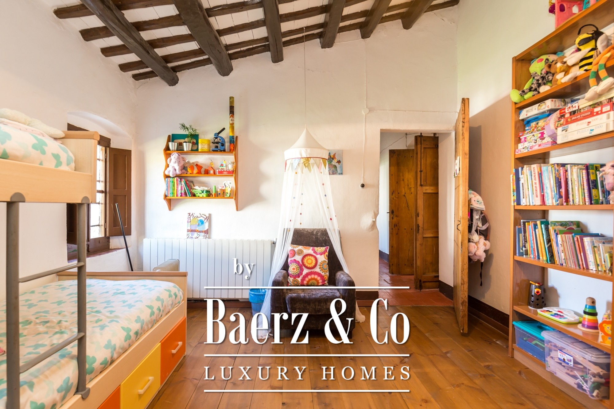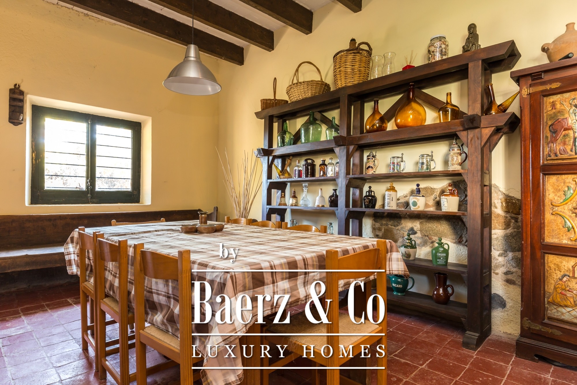 Het zwembad ligt verhoogd op het terrein, wat een sereen toevluchtsoord creëert binnen de natuurlijke sfeer van het landgoed. Een elegante oprijlaan leidt naar het huis, waar een garage het comfort vergroot. Er is ruimte voor maatwerk in de direct te renoveren delen, geschikt voor zowel bewoning als exclusief retraite. Deze boerderij te koop in Llagostera verbindt geschiedenis met potentieel, in het hart van het binnenland van de Costa Brava.