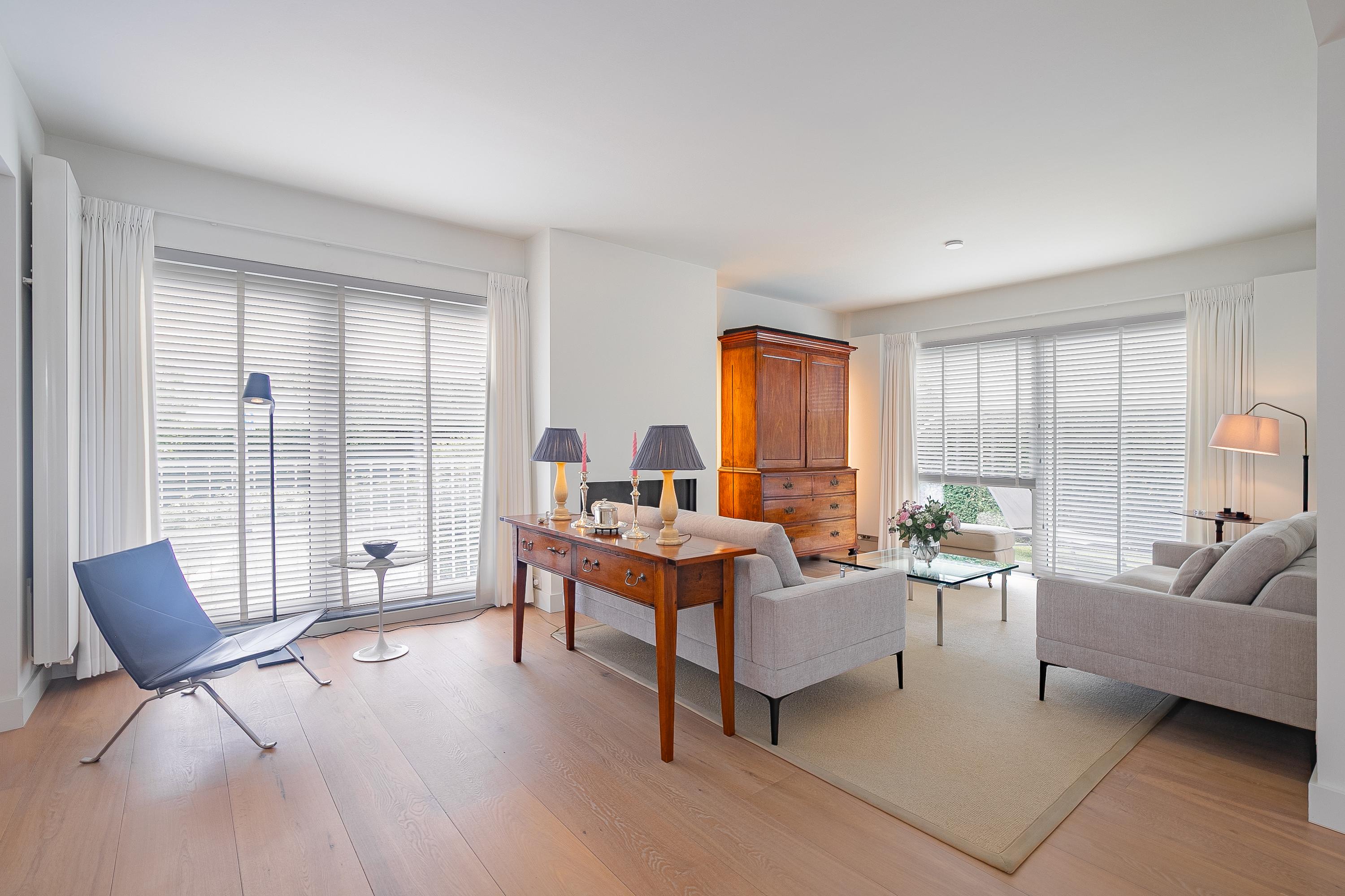 - Stijlvolle afwerking met eiken parketvloer (begane grond) en mozaïek parket (verdieping)