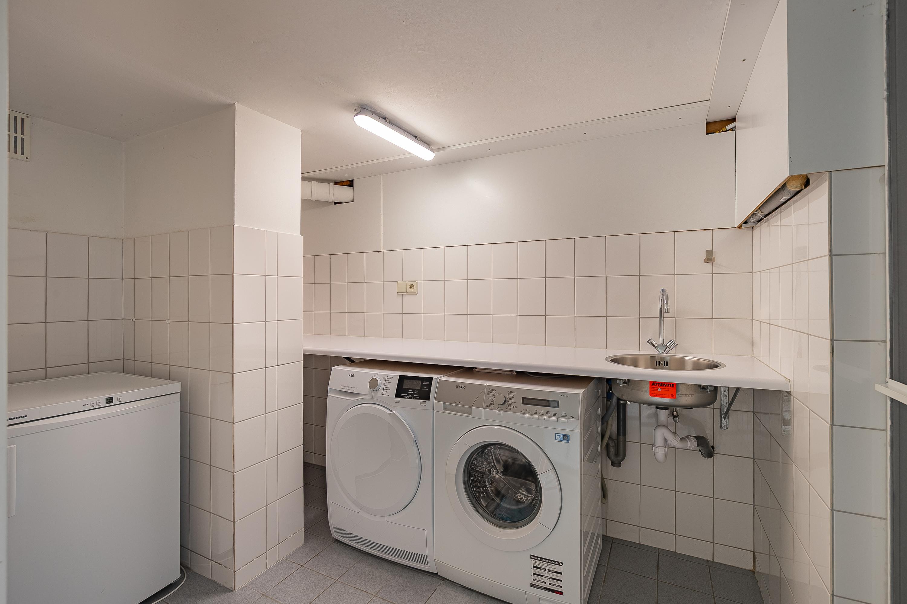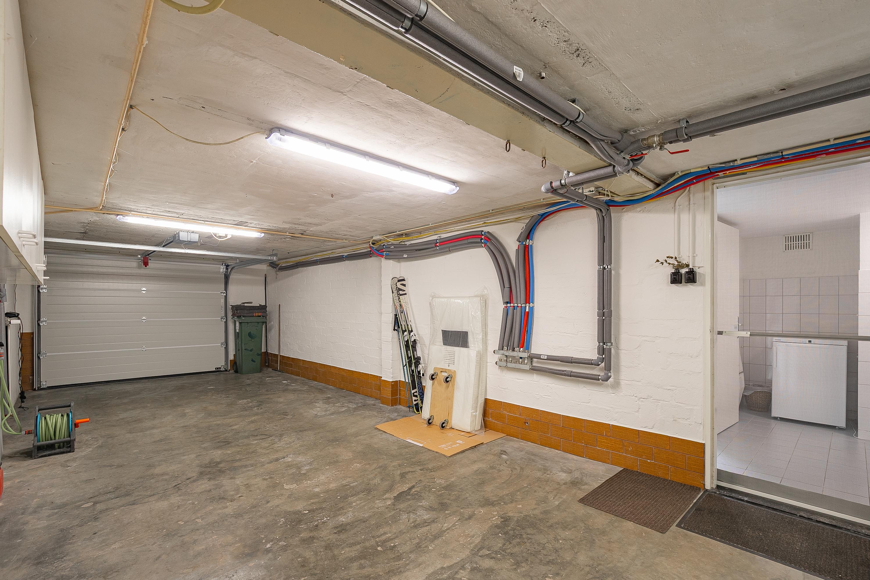 De woning is volledig onderkelderd en biedt meerdere functionele ruimtes. De royale garage (ca. 33m²) heeft een elektrische sectionaalpoort en directe toegang tot een praktische wasruimte met witgoedaansluitingen, een voorraadkelder en een ruime opslagruimte (ca. 20m²). Ook de cv-opstelling is gerealiseerd in de kelder (Nefit HR Topline, eigendom uit 2010).