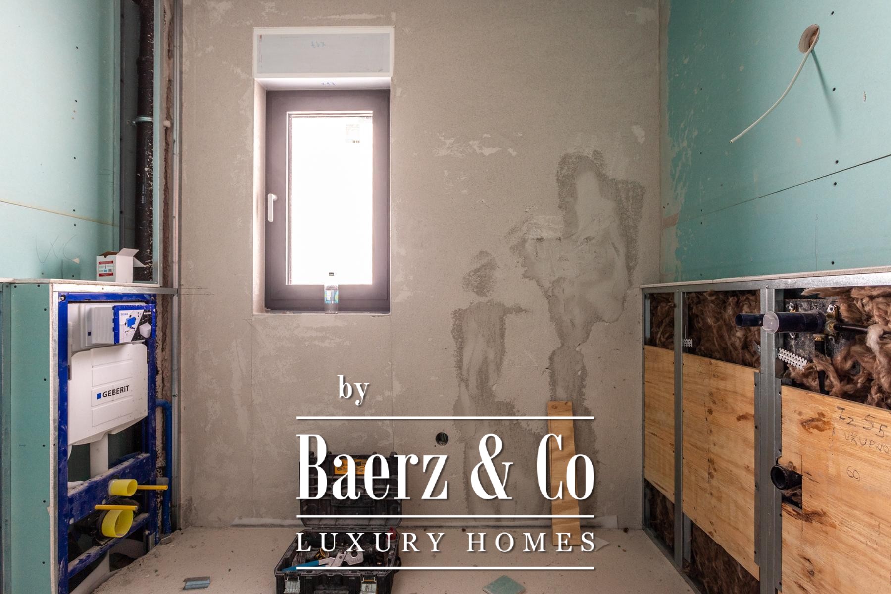 De indeling biedt een evenwicht tussen royale entertainmentruimtes en stille retreats, en integreert een gang, berging, wasruimte en een open keuken met eetgedeelte. Het interieur wordt gekenmerkt door eersteklas parket en keramiek, Schuco aluminium kozijnen en een hoog comfortniveau dankzij slimme domotica, vloerverwarming met warmtepomp en geavanceerde klimaatbeheersing. Er zijn twee beveiligde garageparkeerplaatsen beschikbaar voor aankoop.