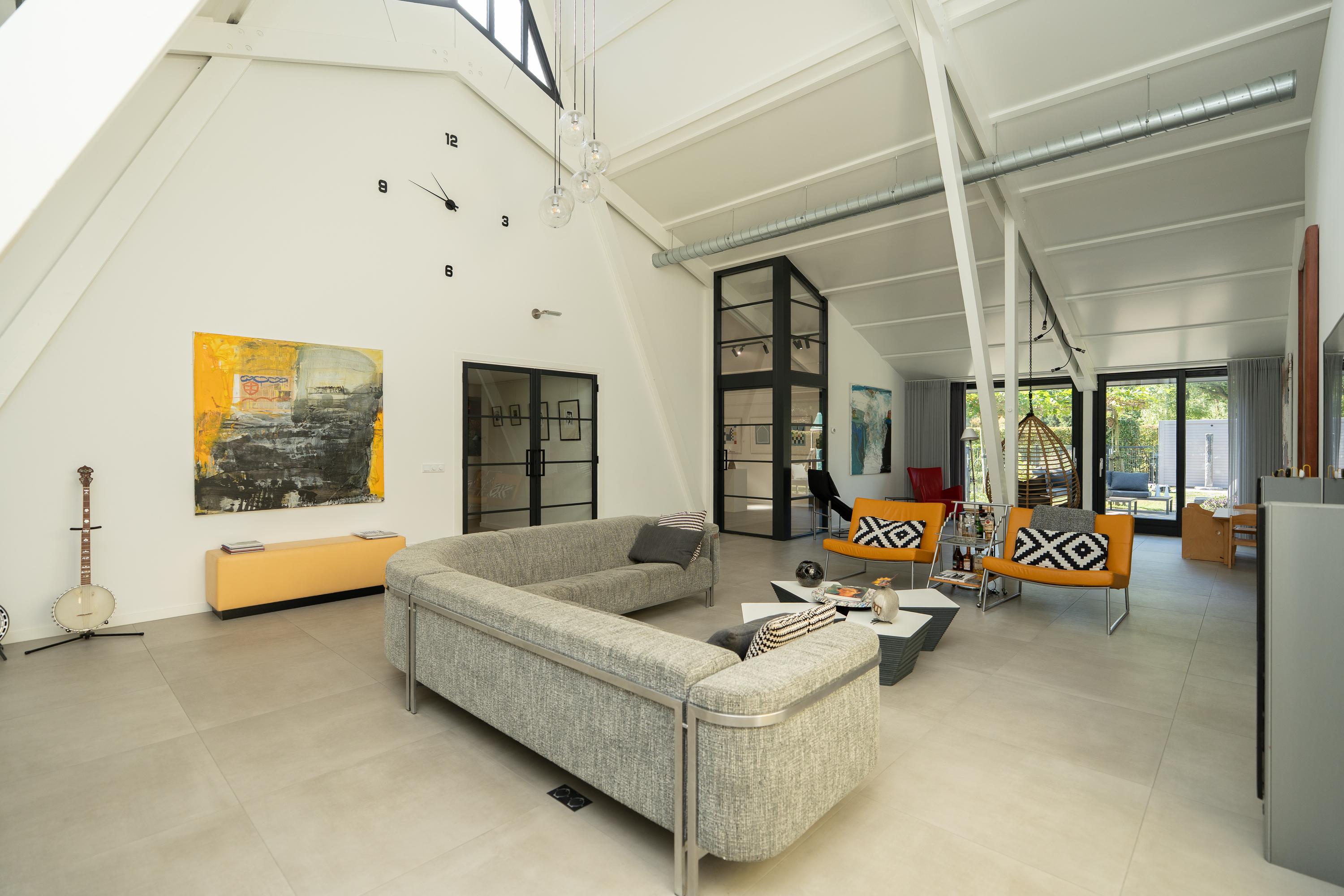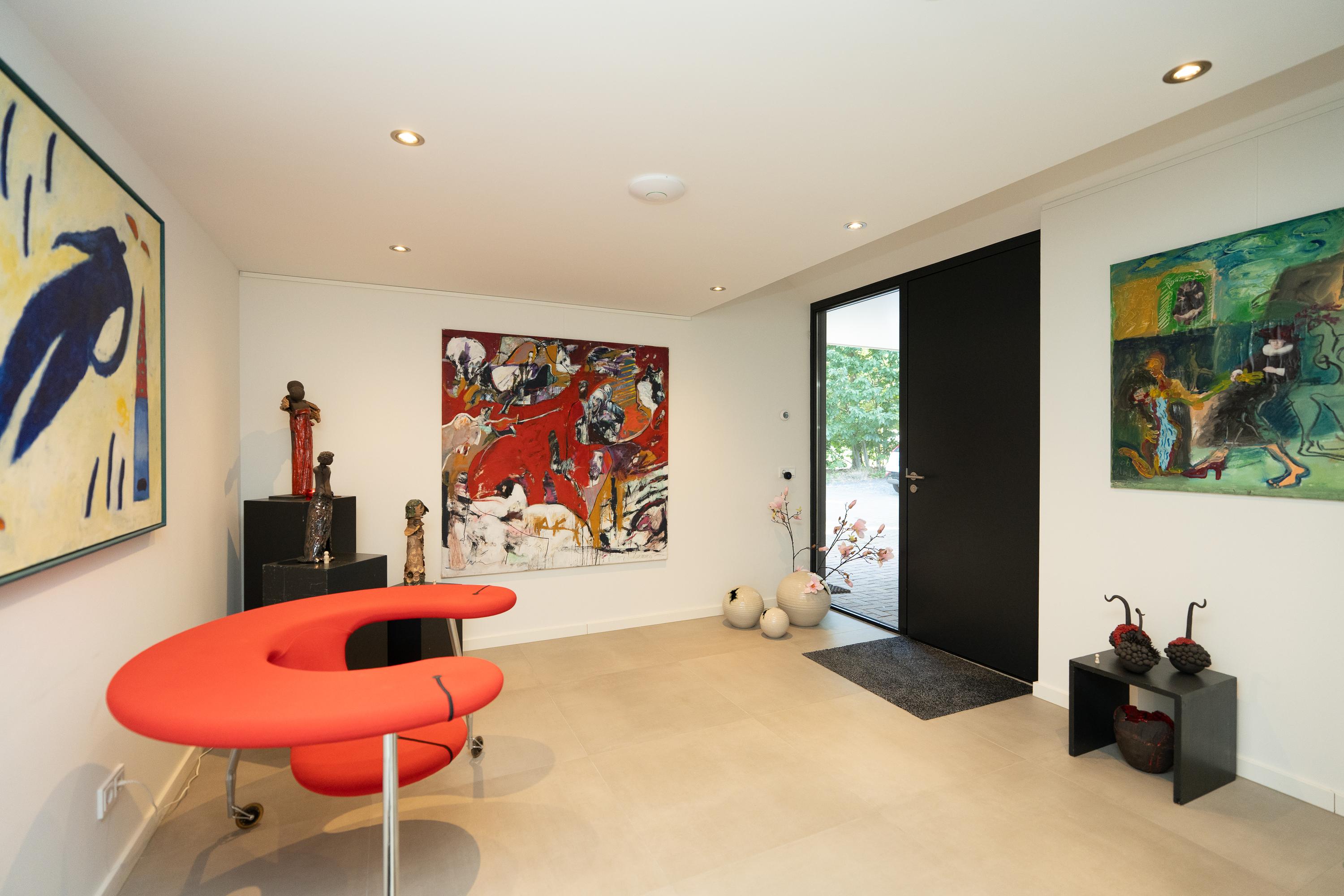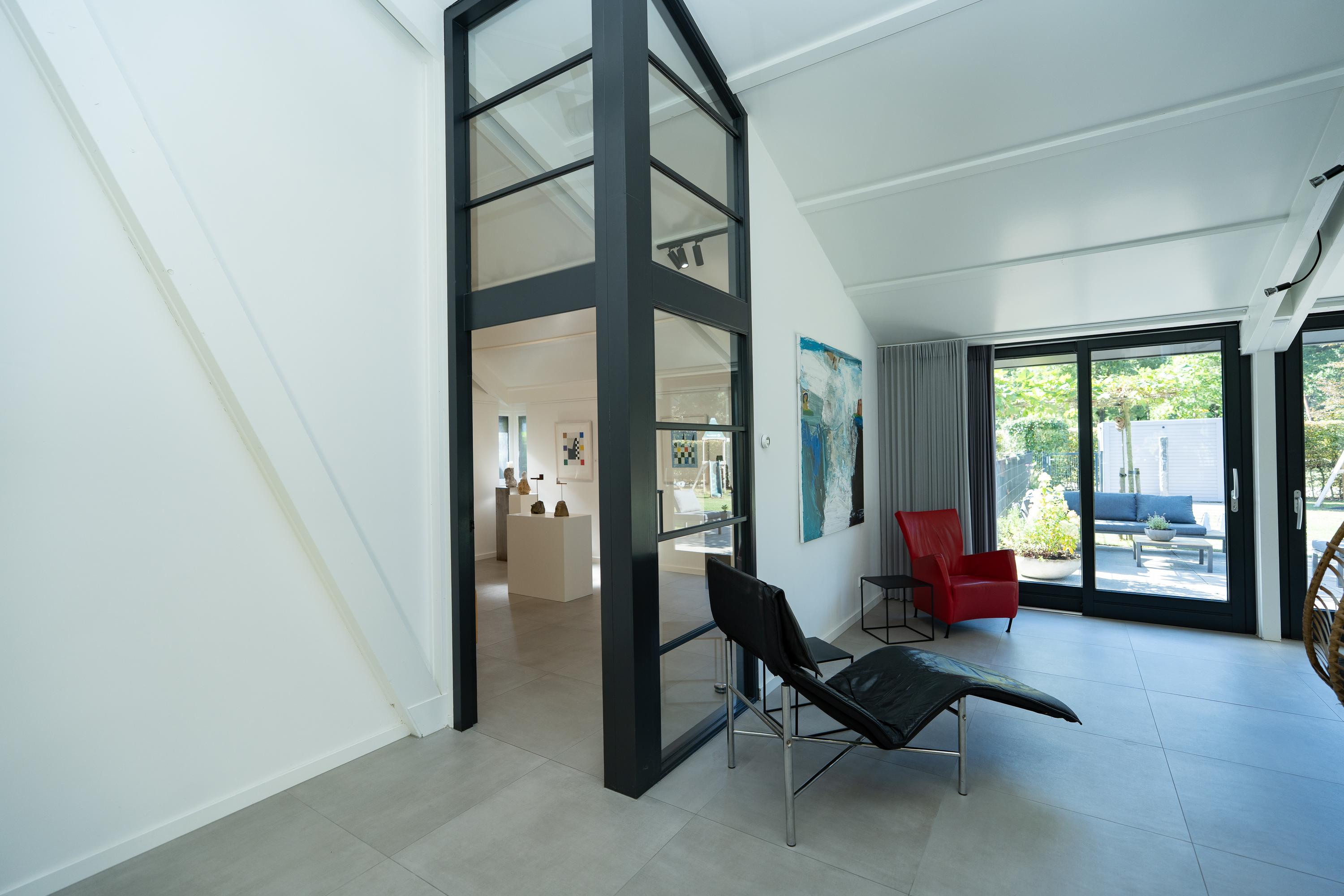 Fraaie vide bij de woonkamer, deze is nu in gebruik als studeerruimte. Ruime berging. Boven de entree is nog een vliering gesitueerd.