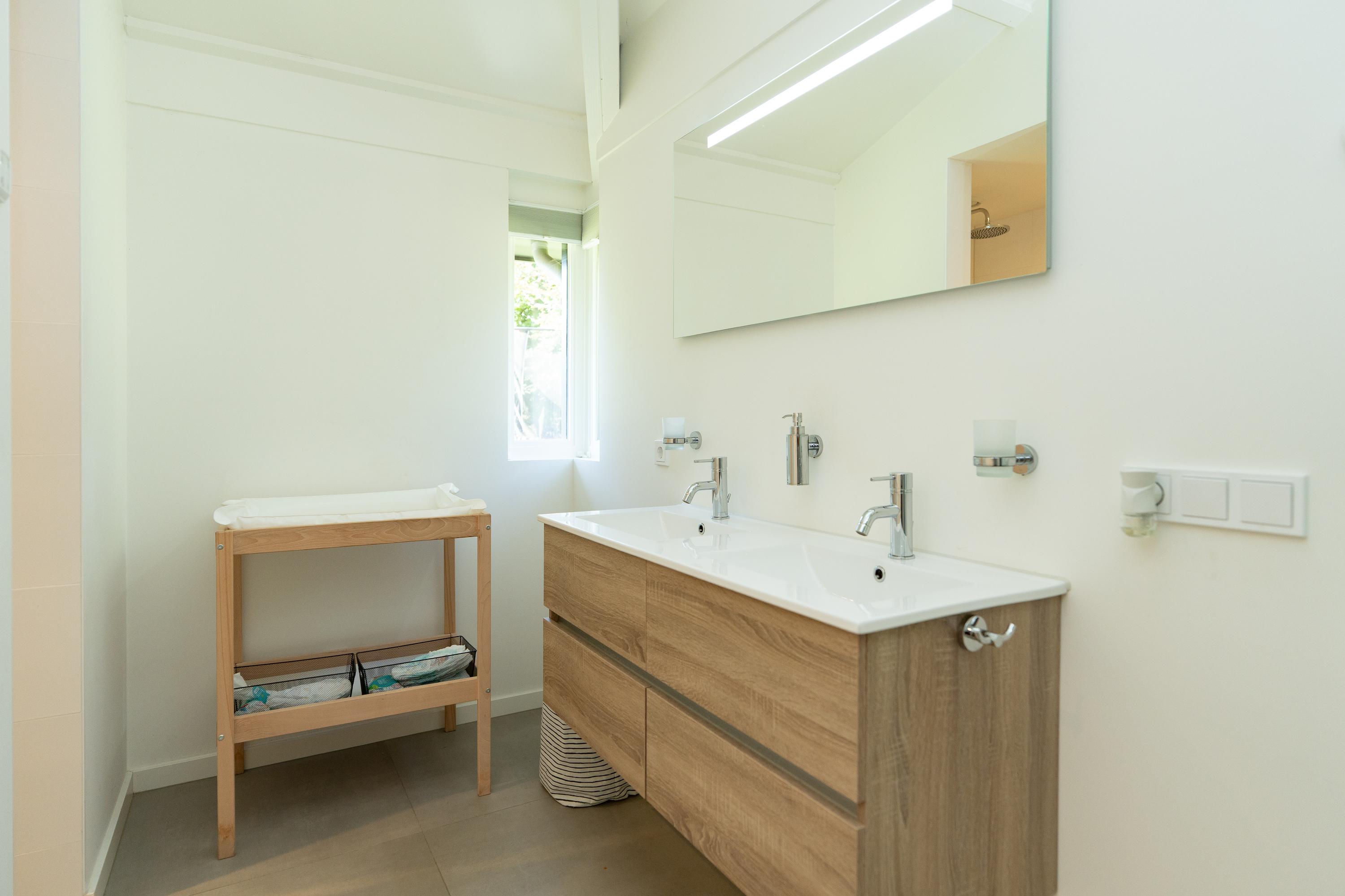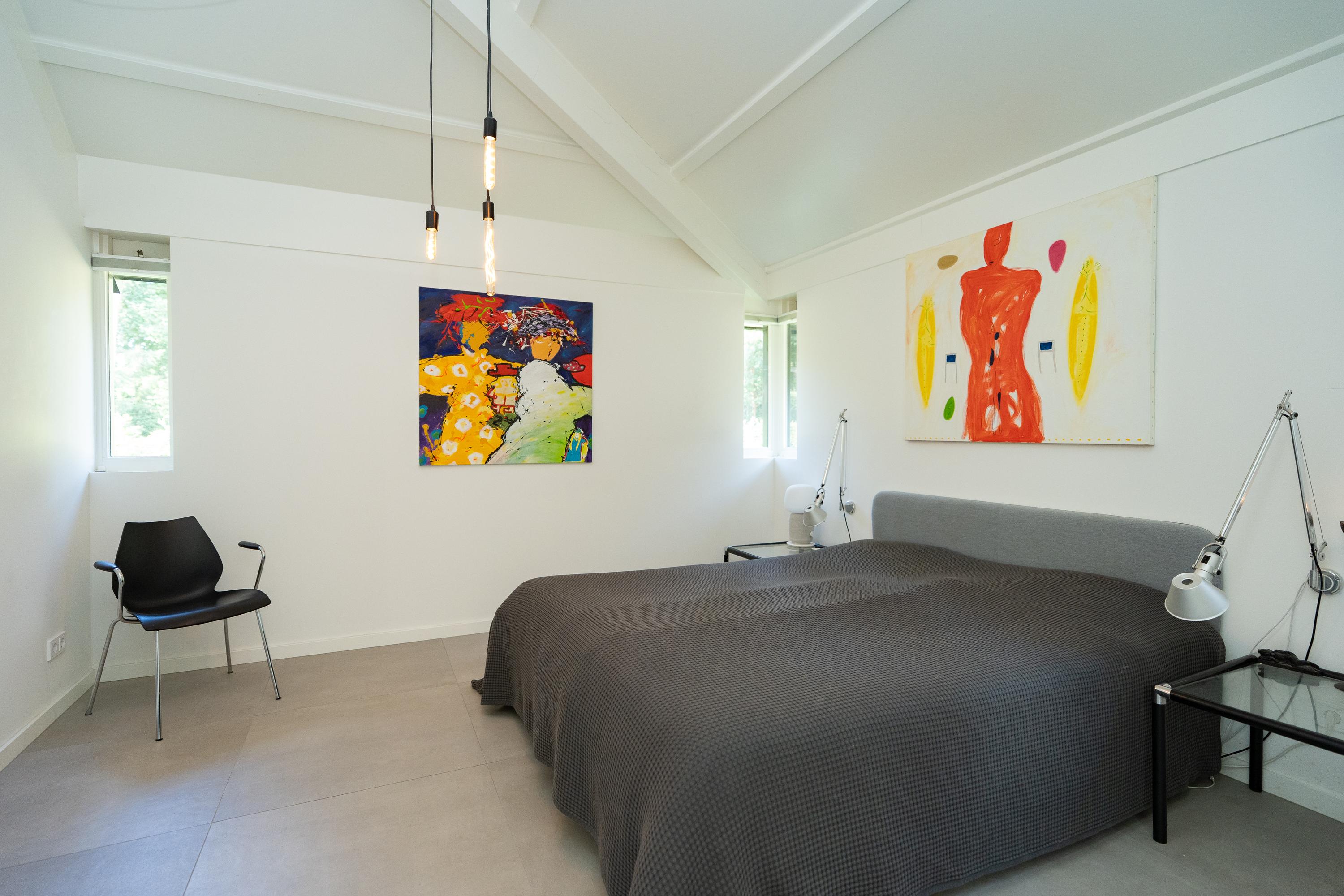 Er zijn in totaal drie slaapkamers en een multifunctionele studeerkamer op de begane grond. De studeerkamer is nu in gebruik als galerie. De masterbedroom heeft een ruime walk-in-closet en aansluitend een zeer ruime badkamer met combi sauna, vrijstaand ligbad, douche, dubbele wastafel en toilet. Hier kun je heerlijk ontspannen en tijdens het badderen genieten van de groene omgeving. Bij de andere slaapkamers is de tweede badkamer gesitueerd, welke voorzien is van een douche, dubbele wastafel en een toilet.