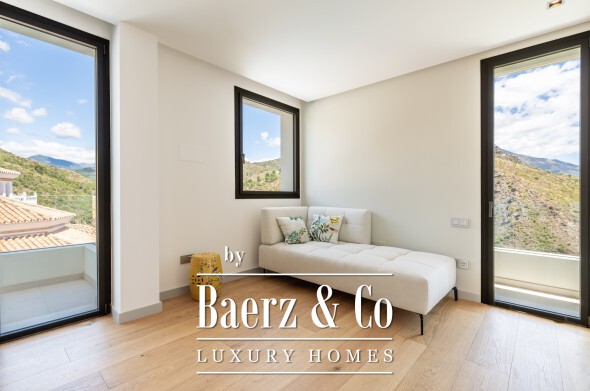 Villa Marbella met uitzicht op zee en bergen biedt verfijnd wonen in de rustige enclave Lomas de la Quinta, een exclusieve, afgesloten gemeenschap die bekend staat om haar privacy en serene sfeer. Deze villa van 764 m² met zes slaapkamers ligt op een perceel van 1.377 m² en heeft een eigentijdse architectuur waarin natuurlijke materialen, royaal licht en ruimte samenkomen. Vanaf het eerste moment bepalen het zeezicht en het uitzicht op de Sierra de las Nieves de sfeer, zowel op de 317 m² aan terrassen als in een van de twee loungegedeeltes waar grote ramen het mediterrane landschap omlijsten.