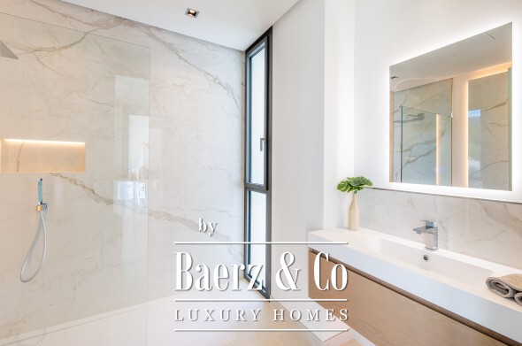 Op de begane grond bevinden zich twee gastenkamers naast een volledig uitgeruste keuken met inspirerende vergezichten. Boven bieden de master suite en twee extra gastenkamers, elk met een eigen badkamer, rust en comfort. De veelzijdige benedenverdieping herbergt de zesde slaapkamer met badkamer, een garage voor drie auto's en een aanpasbare ruimte; bijvoorbeeld voor een zevende slaapkamer, een thuisbioscoop of een fitnessruimte.