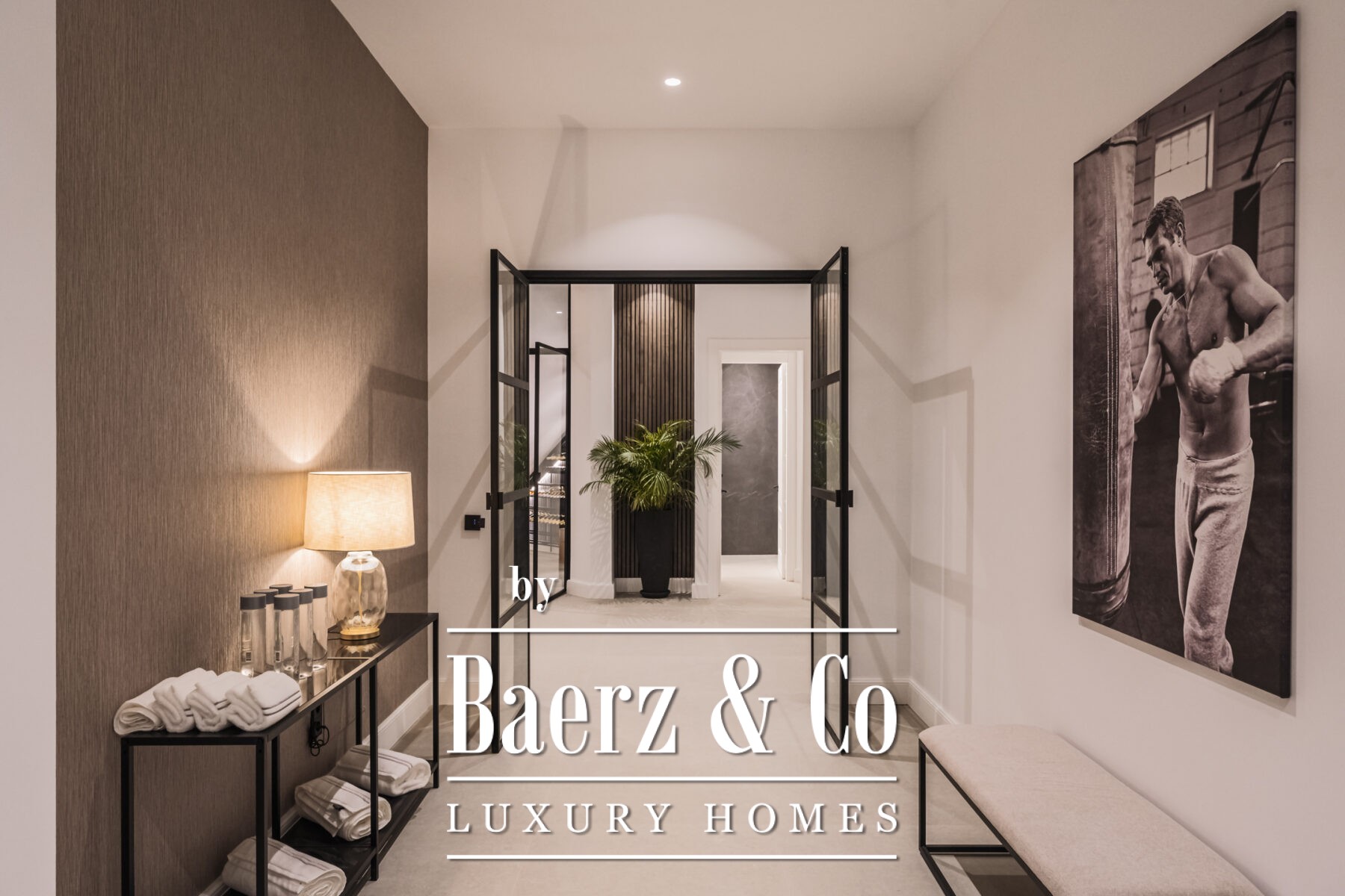 In the basement, this villa continues to impress with a fully stocked wine cellar, a state-of-the-art cinema room, a gym, a spa featuring a plunge pool, laundry facilities, and a spacious garage.