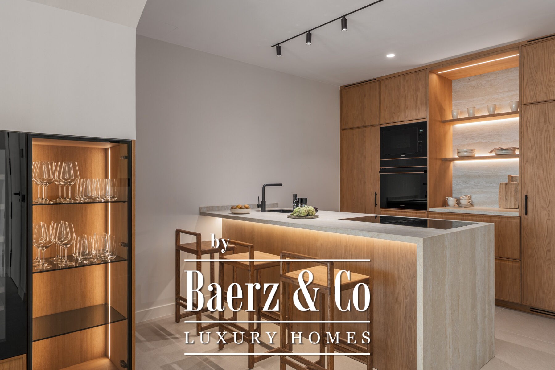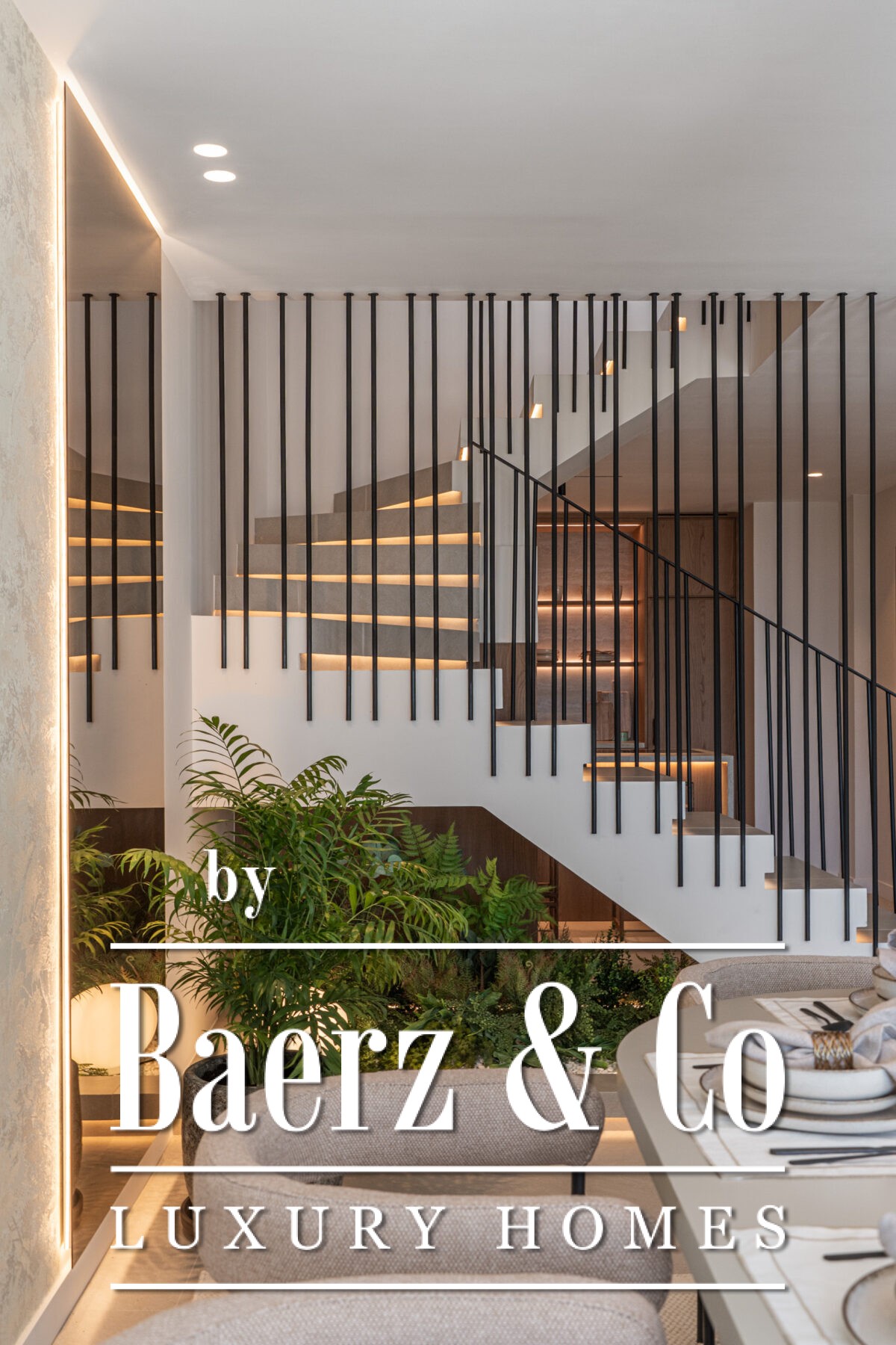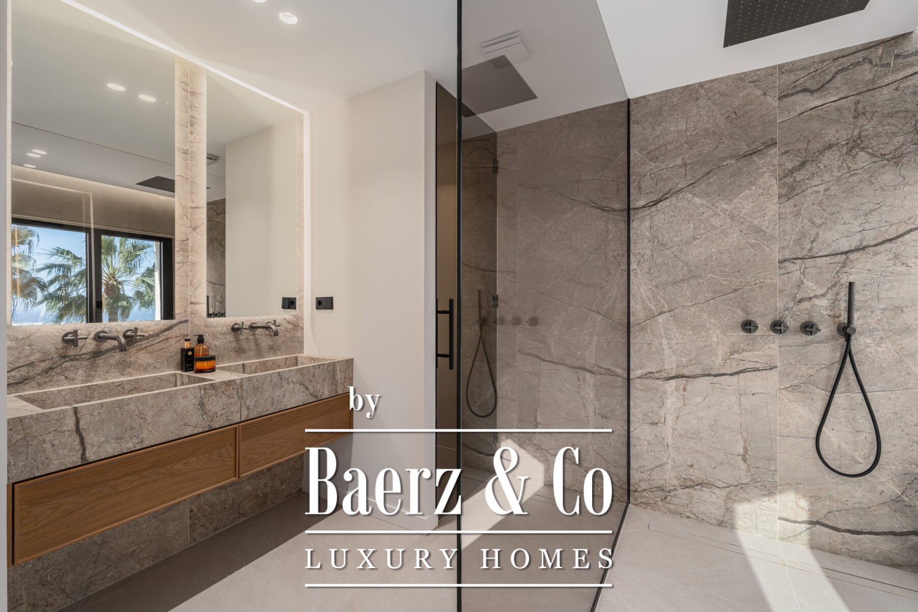 Crowning the property is the rooftop solarium, a highlight of this luxury townhouse. From this elevated space, residents can enjoy panoramic views of the Mediterranean and the iconic La Concha mountain. Outfitted with a built-in lounge, bioethanol fireplace, bar area, outdoor shower, and sunbeds, this space invites year-round use and relaxation.