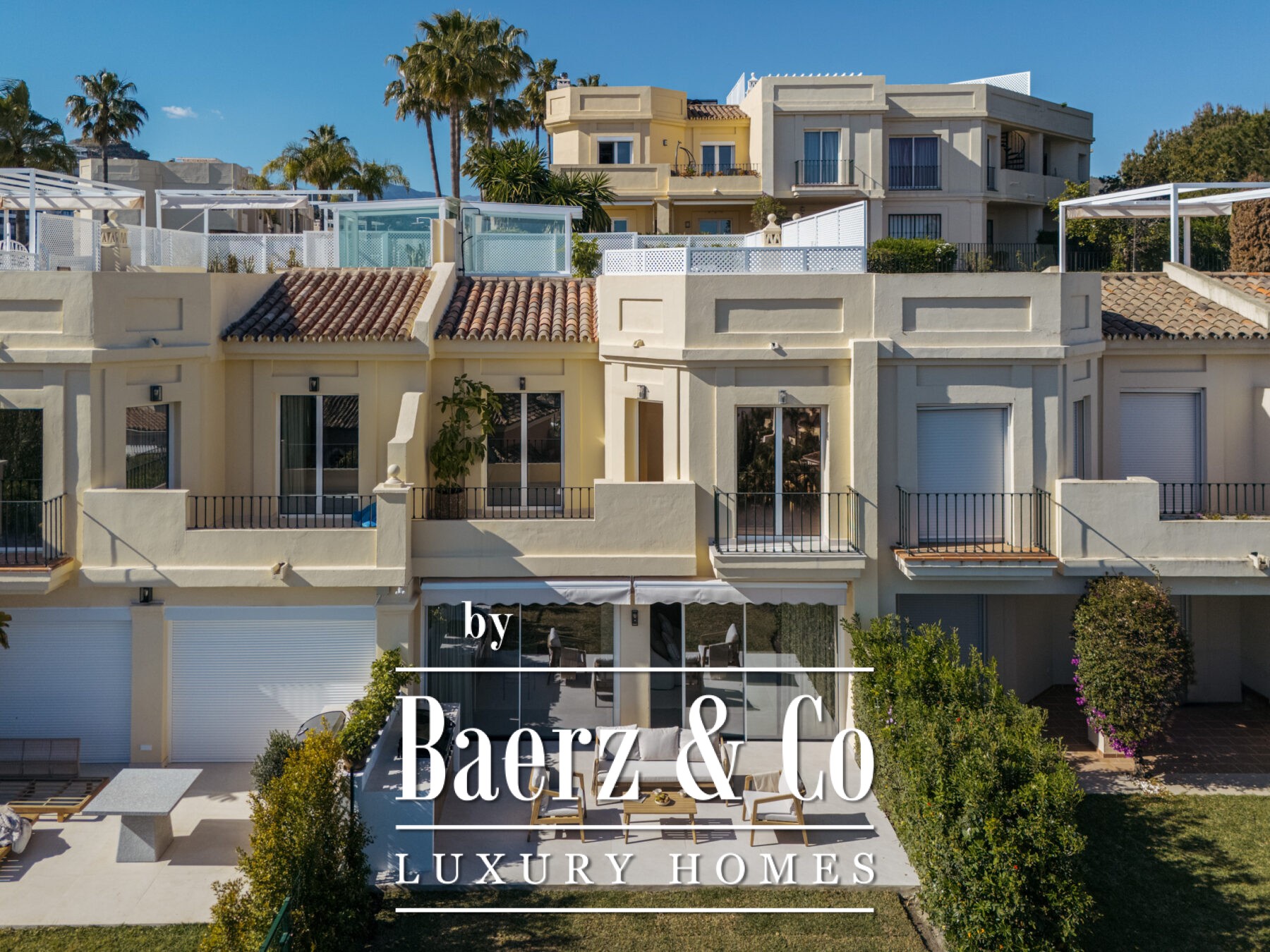 A meticulously renovated three-level townhouse for sale located in the secure, well-maintained community of La Quinta Hills in Benahavís. Fully renovated in 2024, this property showcases a seamless blend of Mediterranean tranquillity and Scandinavian minimalism, resulting in a warm, functional home with stunning design throughout.